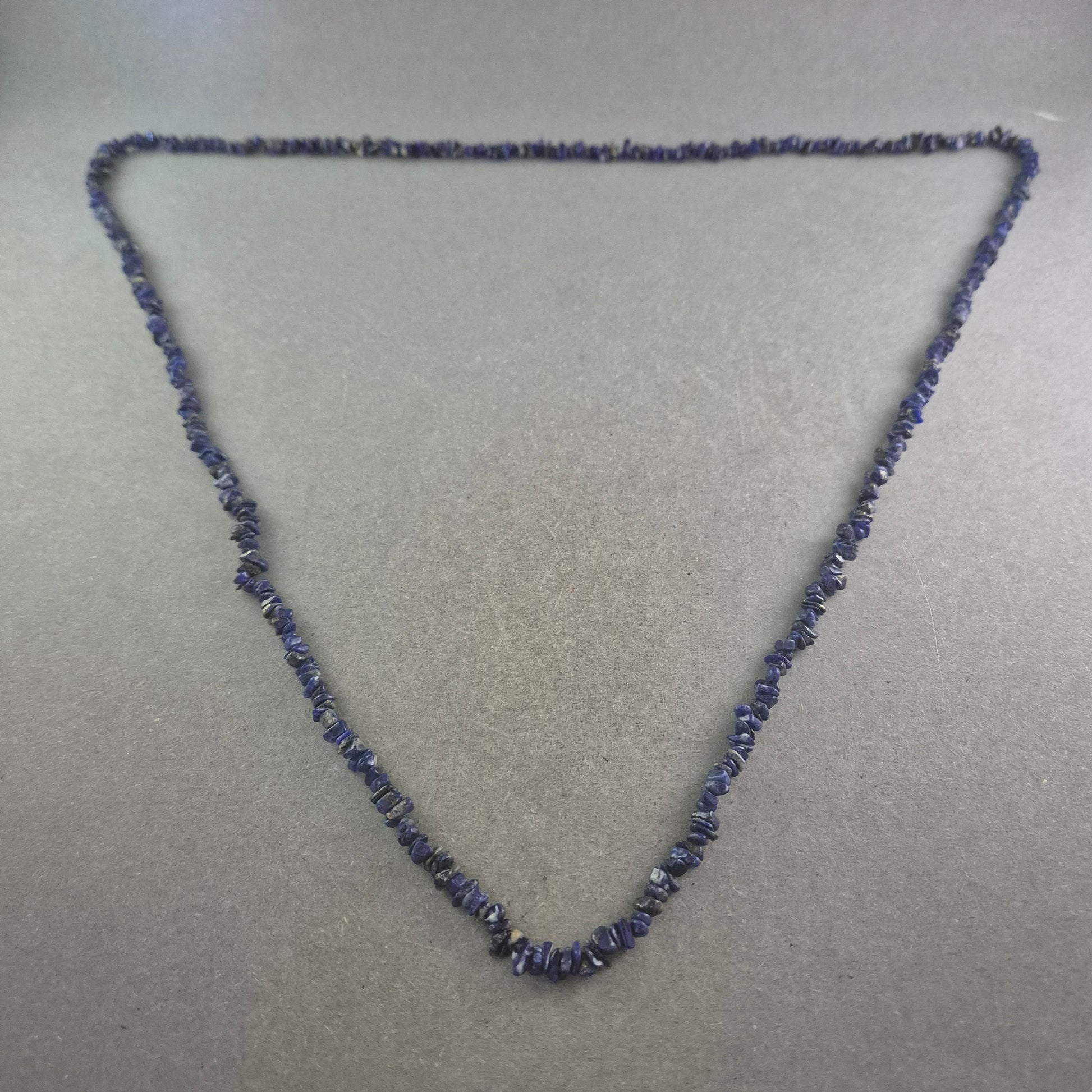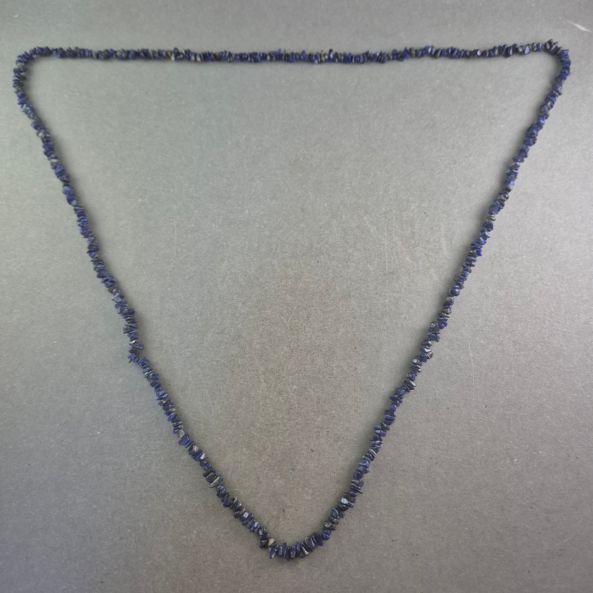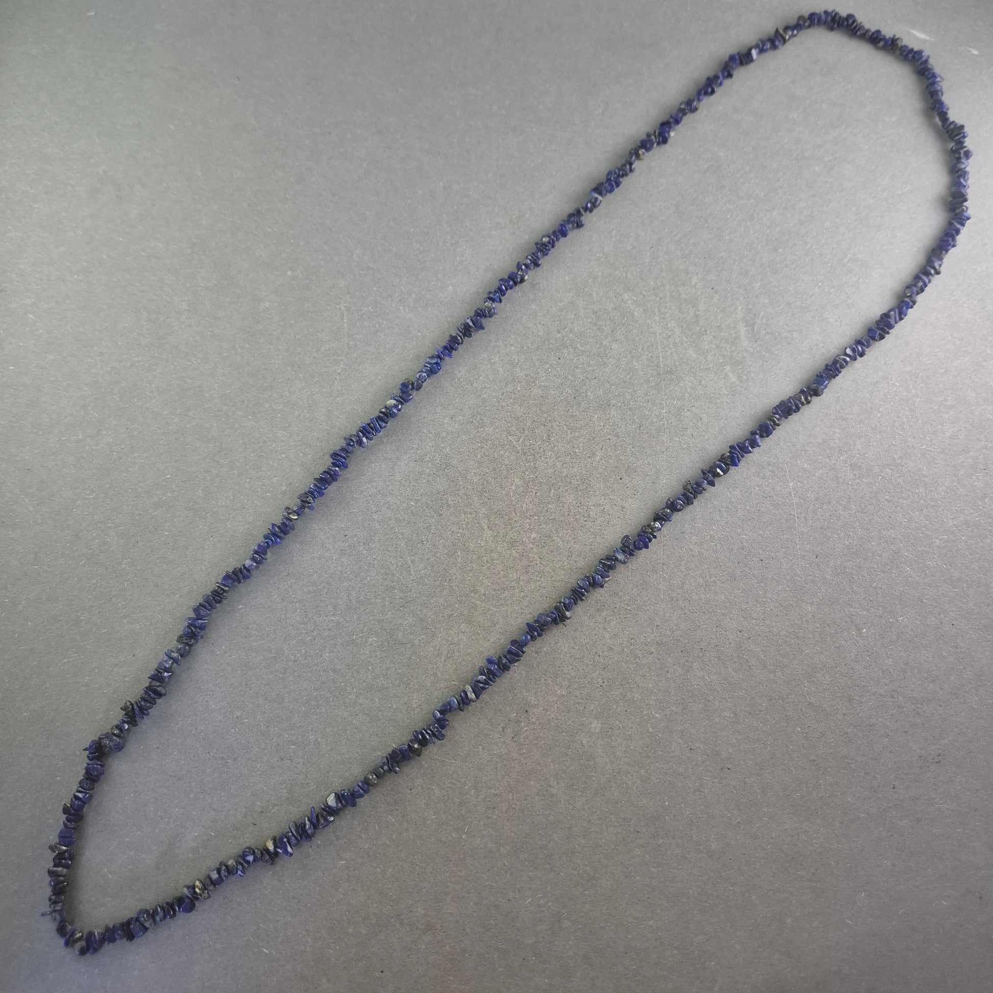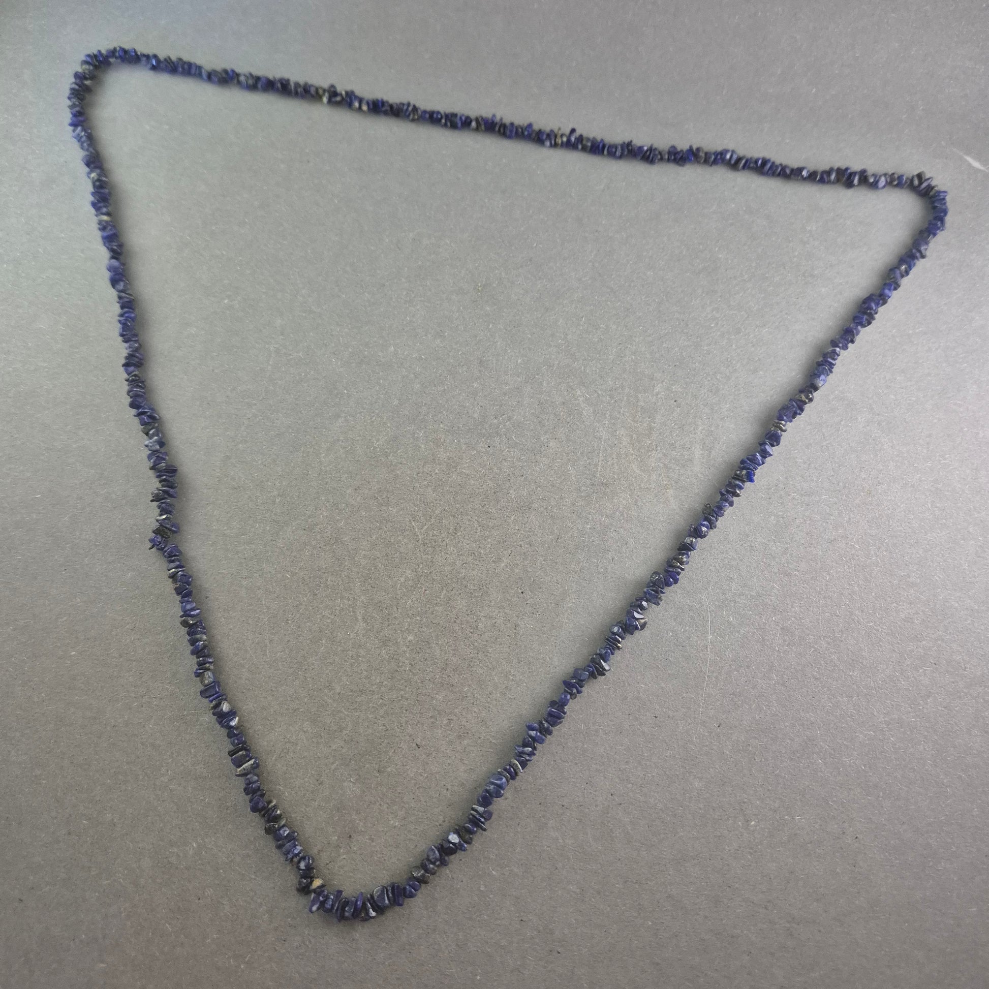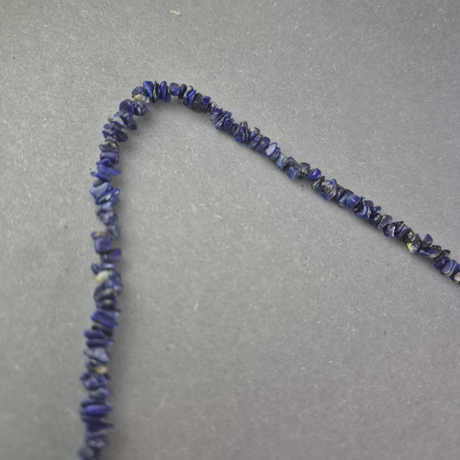 Diese bezaubernde Halskette besteht aus zahlreichen kleinen, blauen Edelstein-Splittern, die kunstvoll aneinandergereiht sind. Die tiefblaue Farbe verleiht dem Schmuckstück eine ruhige, edle Ausstrahlung und lässt sich wunderbar zu vielen Outfits kombinieren – ob lässig oder elegant.