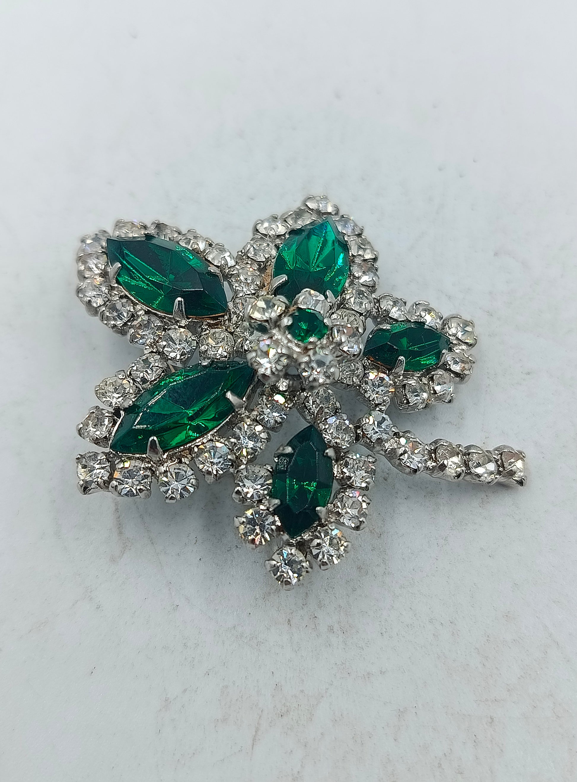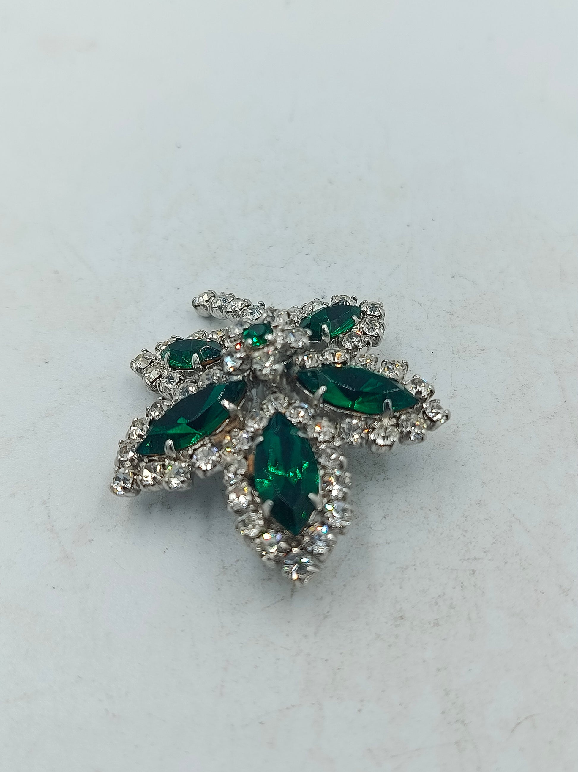 Blütenbrosche in leuchtendem Smaragdgrün mit funkelnden Kristallen