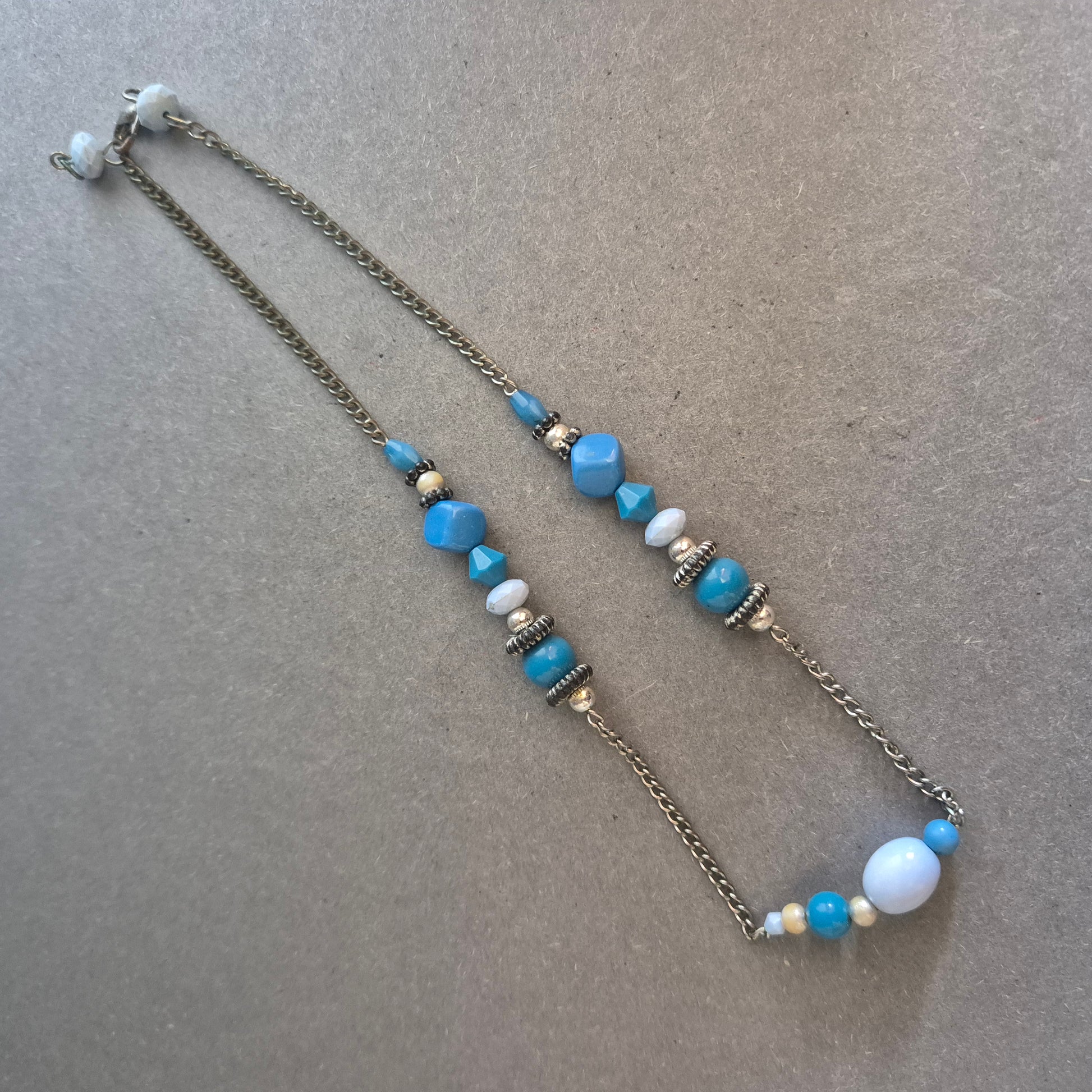 Boho-Halskette mit blauen Perlen & Gliederkette – Verspielt & Vintage