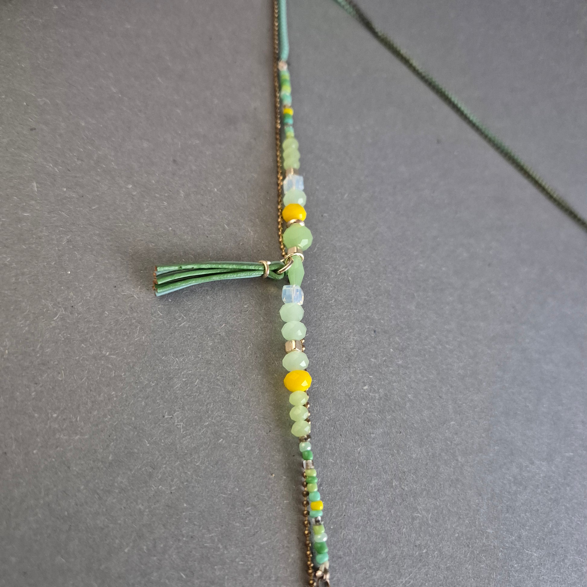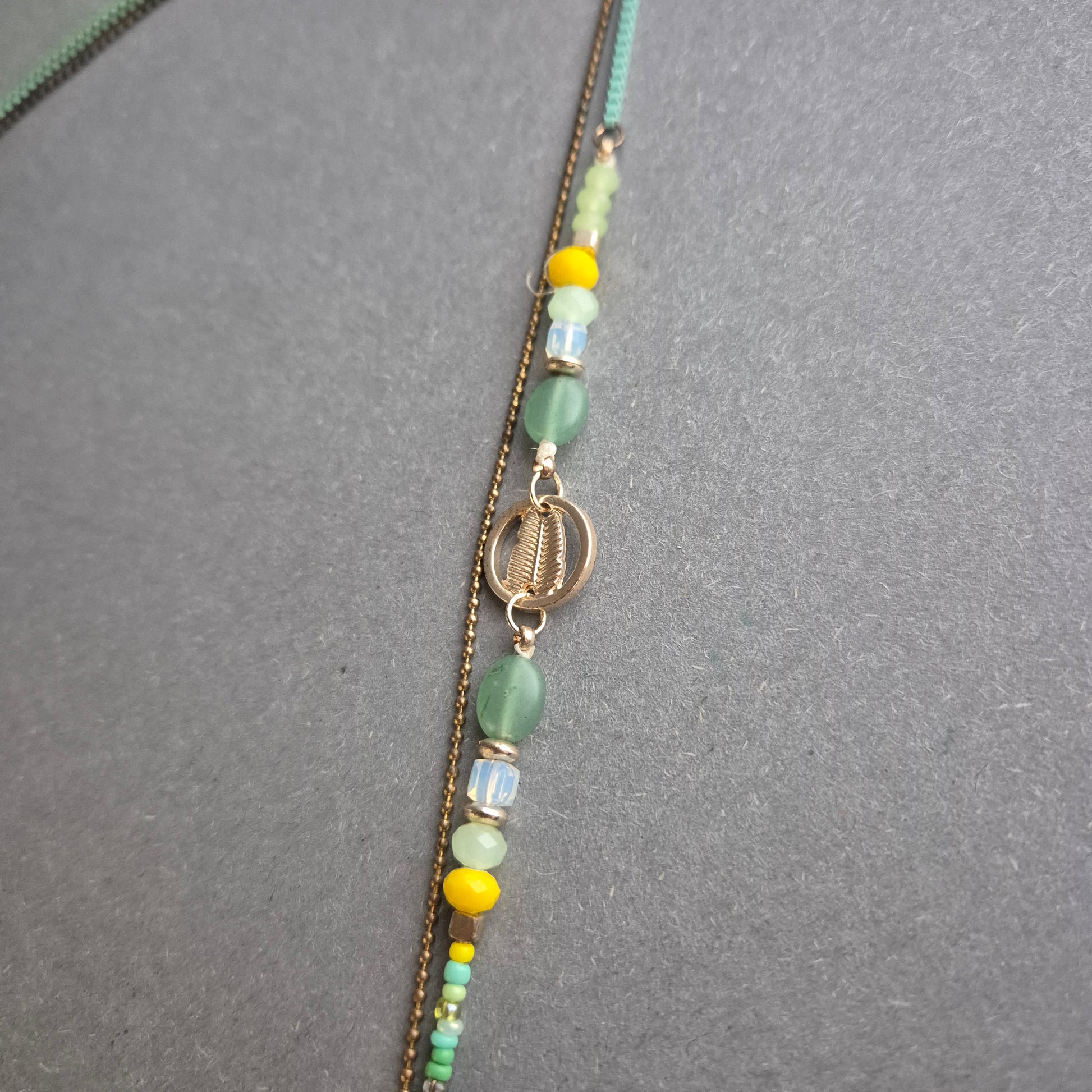 Boho-Kette mit Halbmond & grünen Perlen