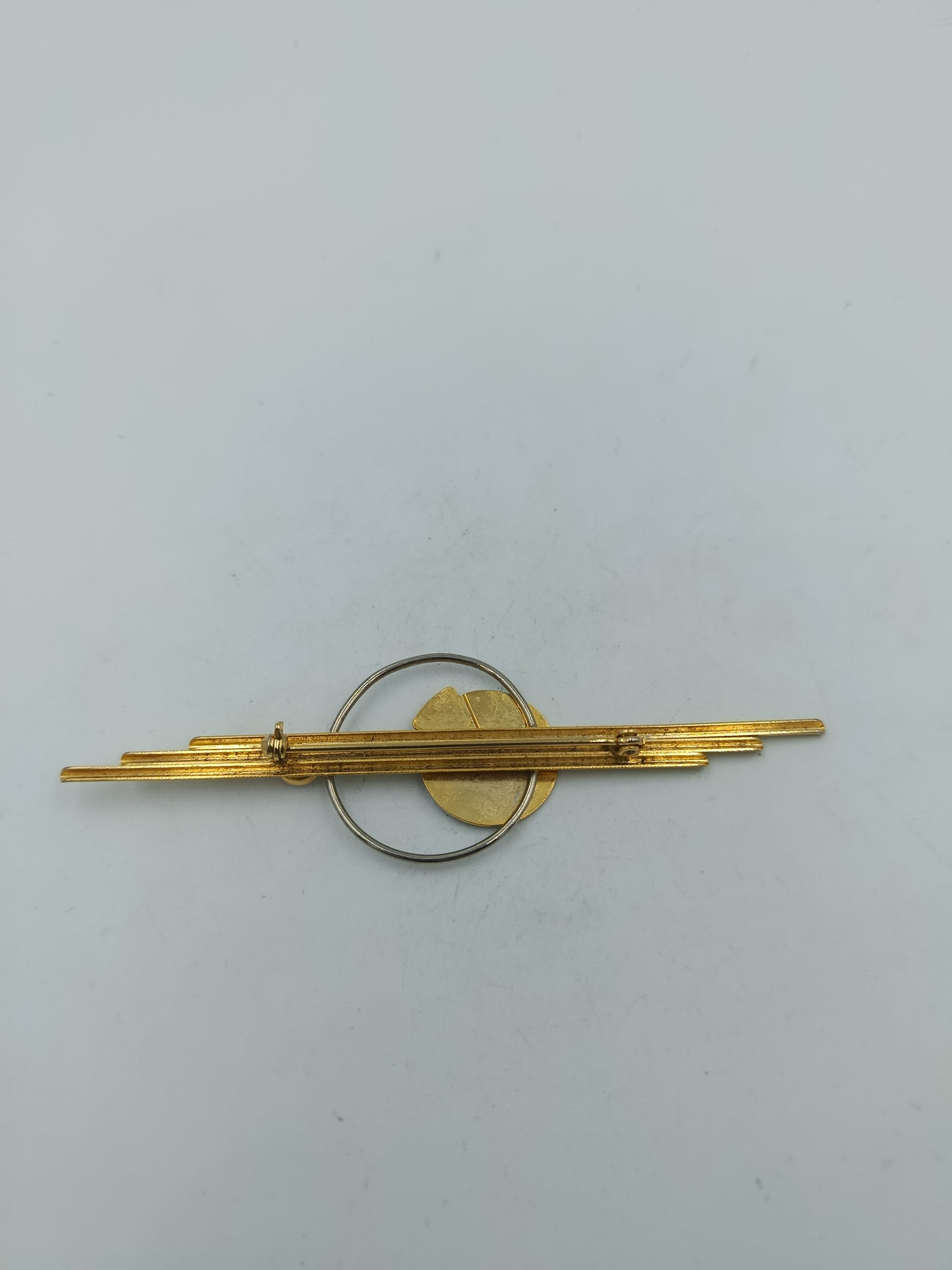 Brosche vergoldet modern geometrisches Design mit Stein elegant Schmuckstück