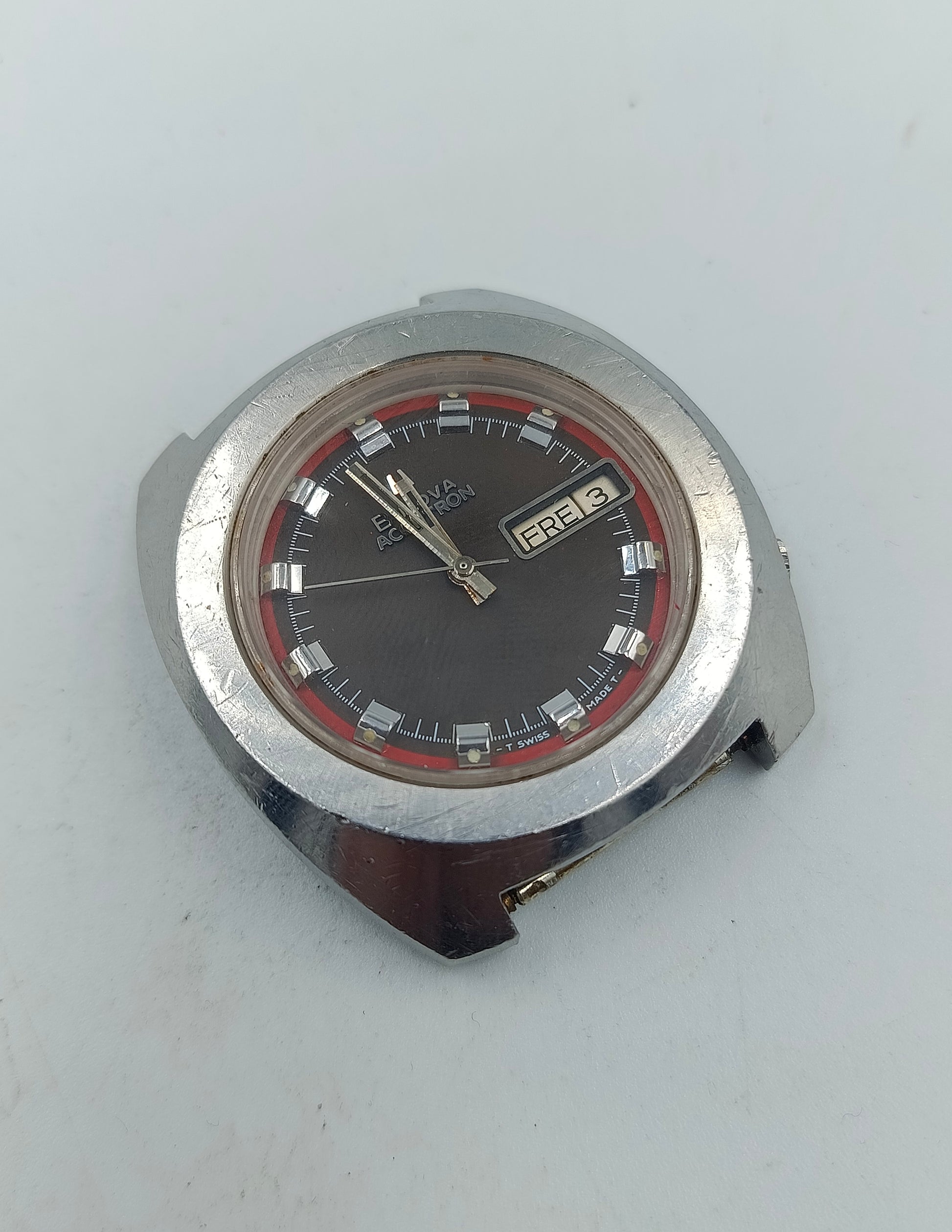 Bulova Accutron 2181 Herren Armbanduhr Vintage Grau Rot Swiss Made
