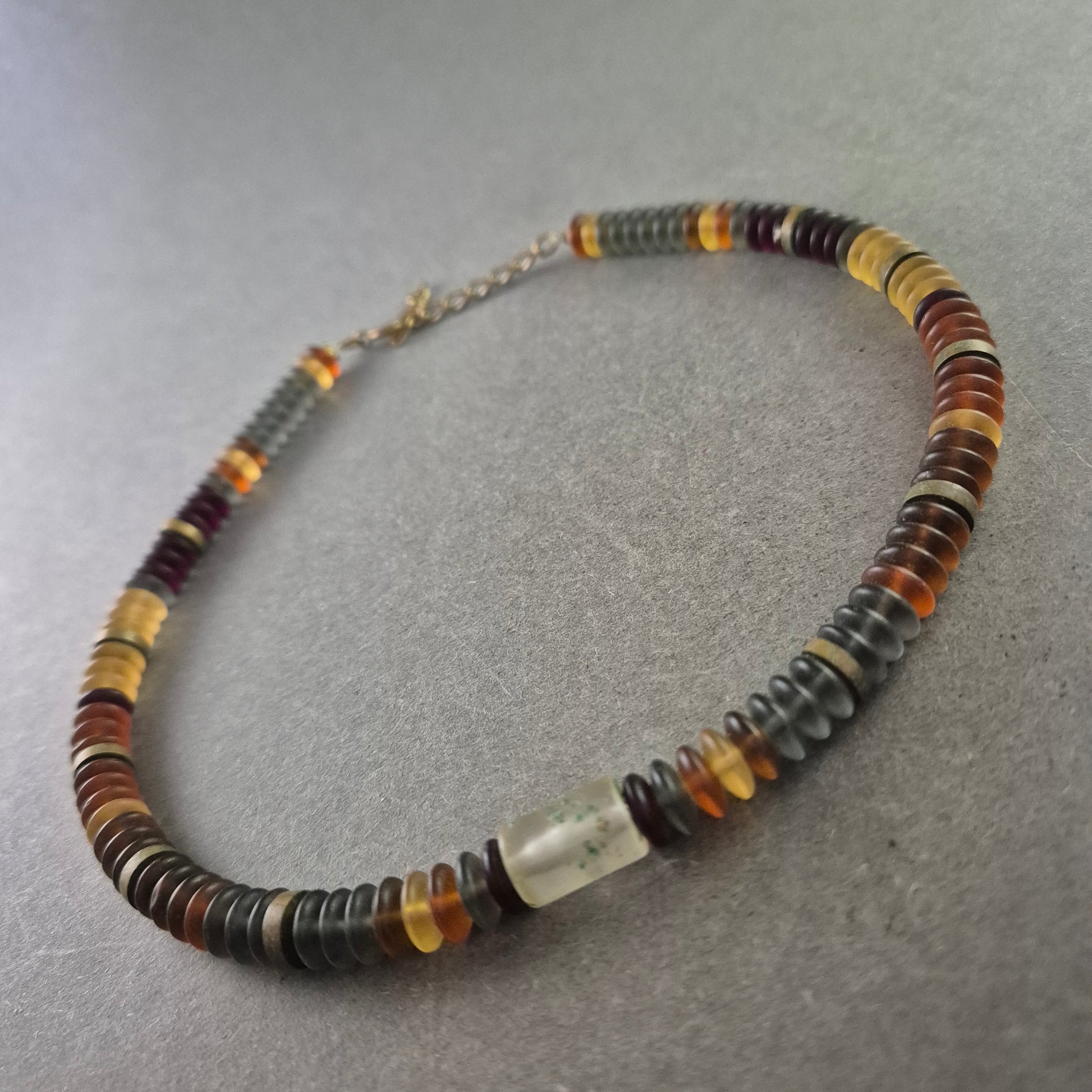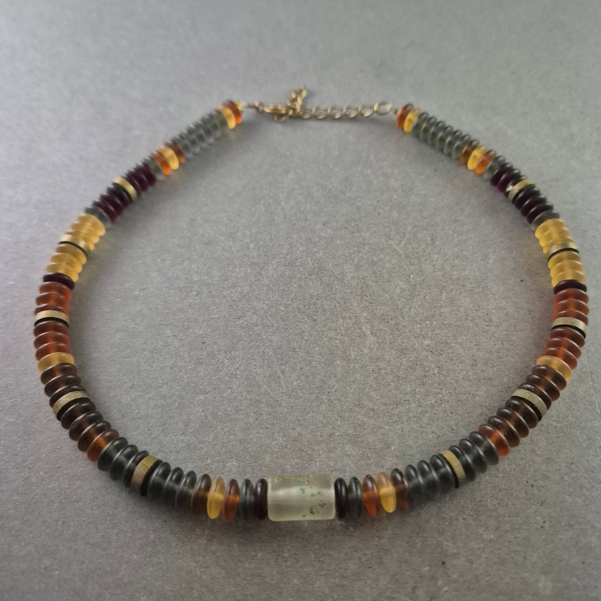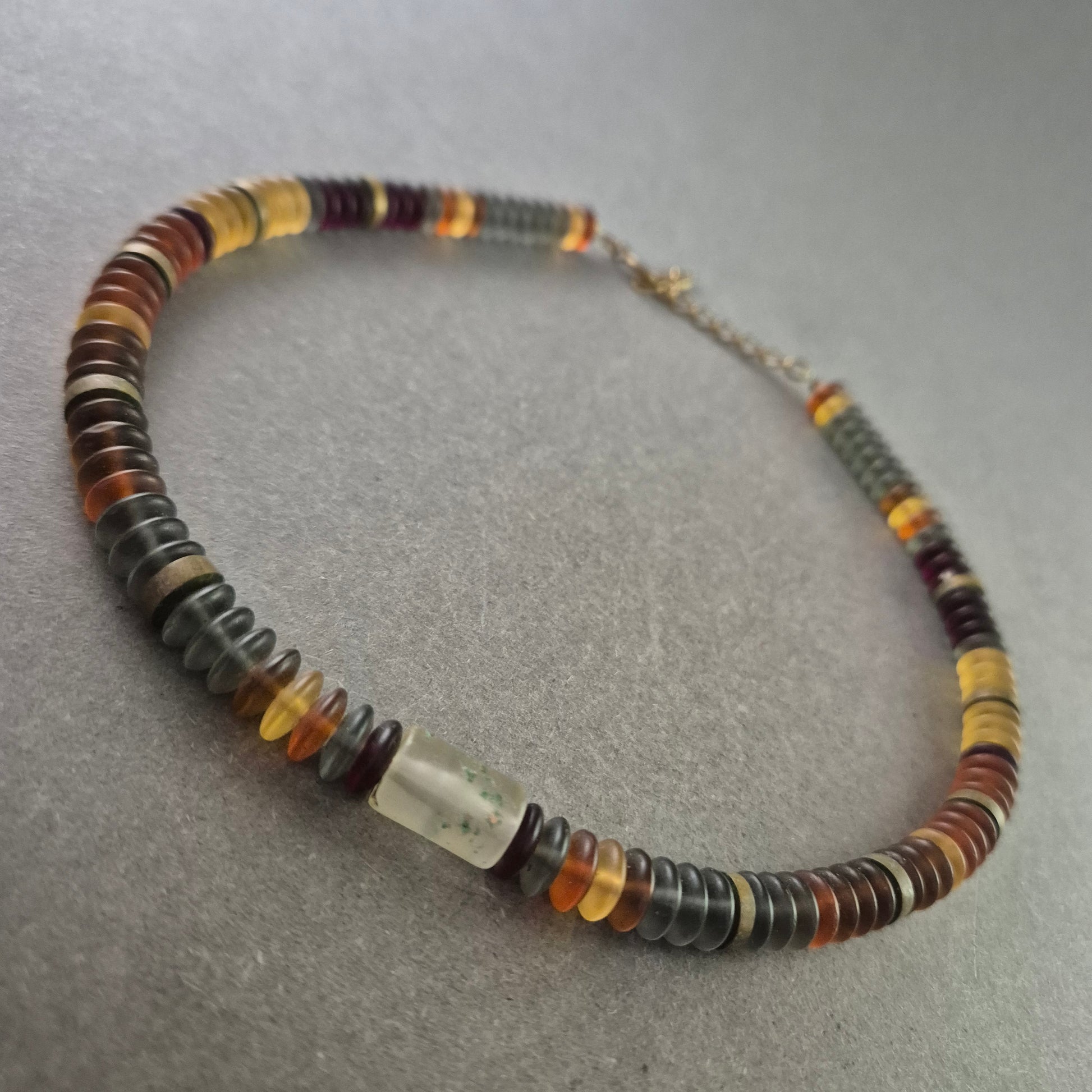 Bunte Bernstein Halskette – Warme Töne im Scheibenformat