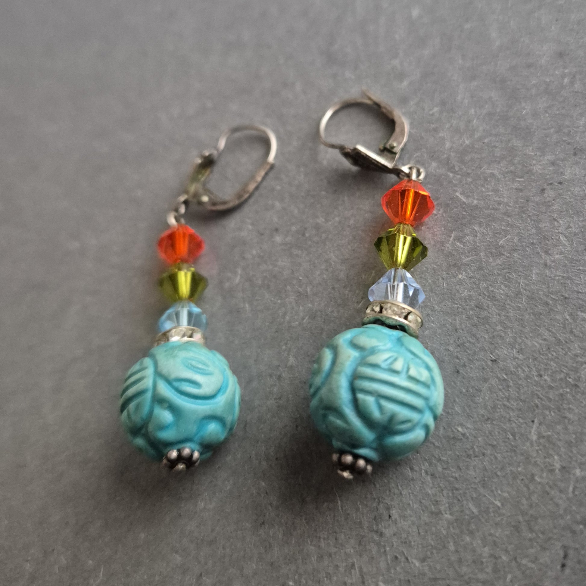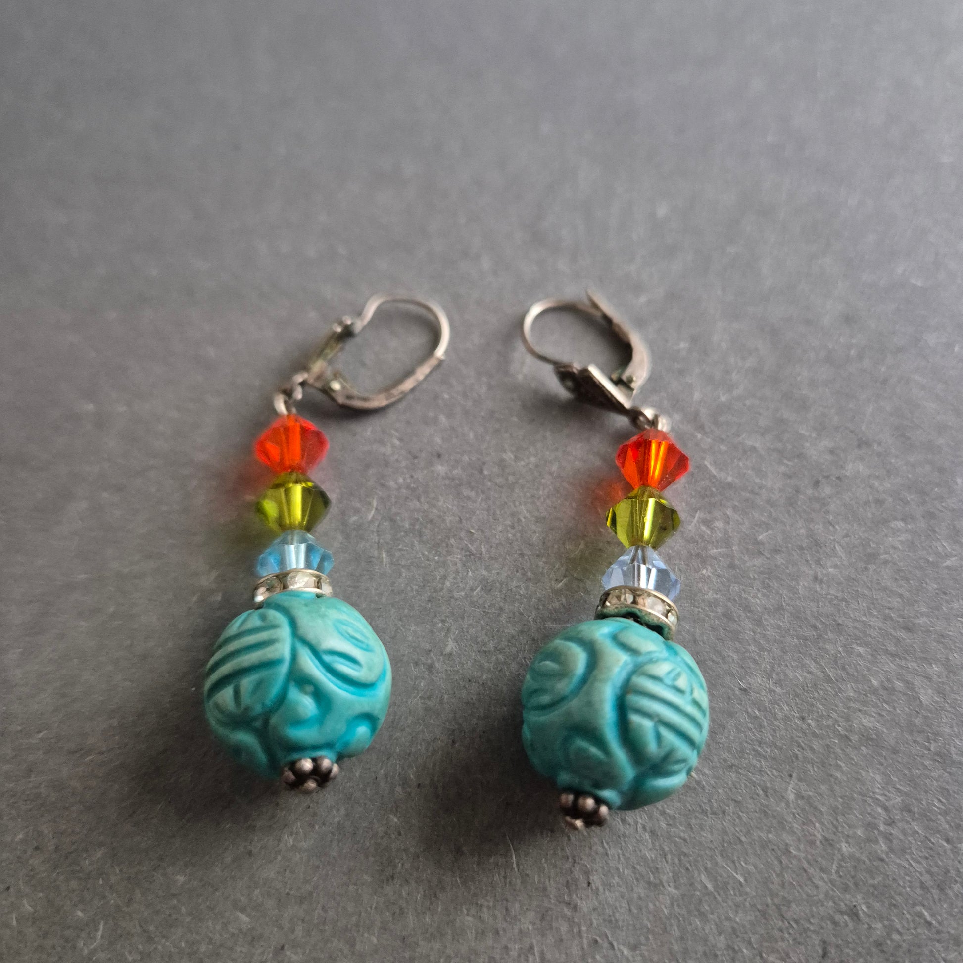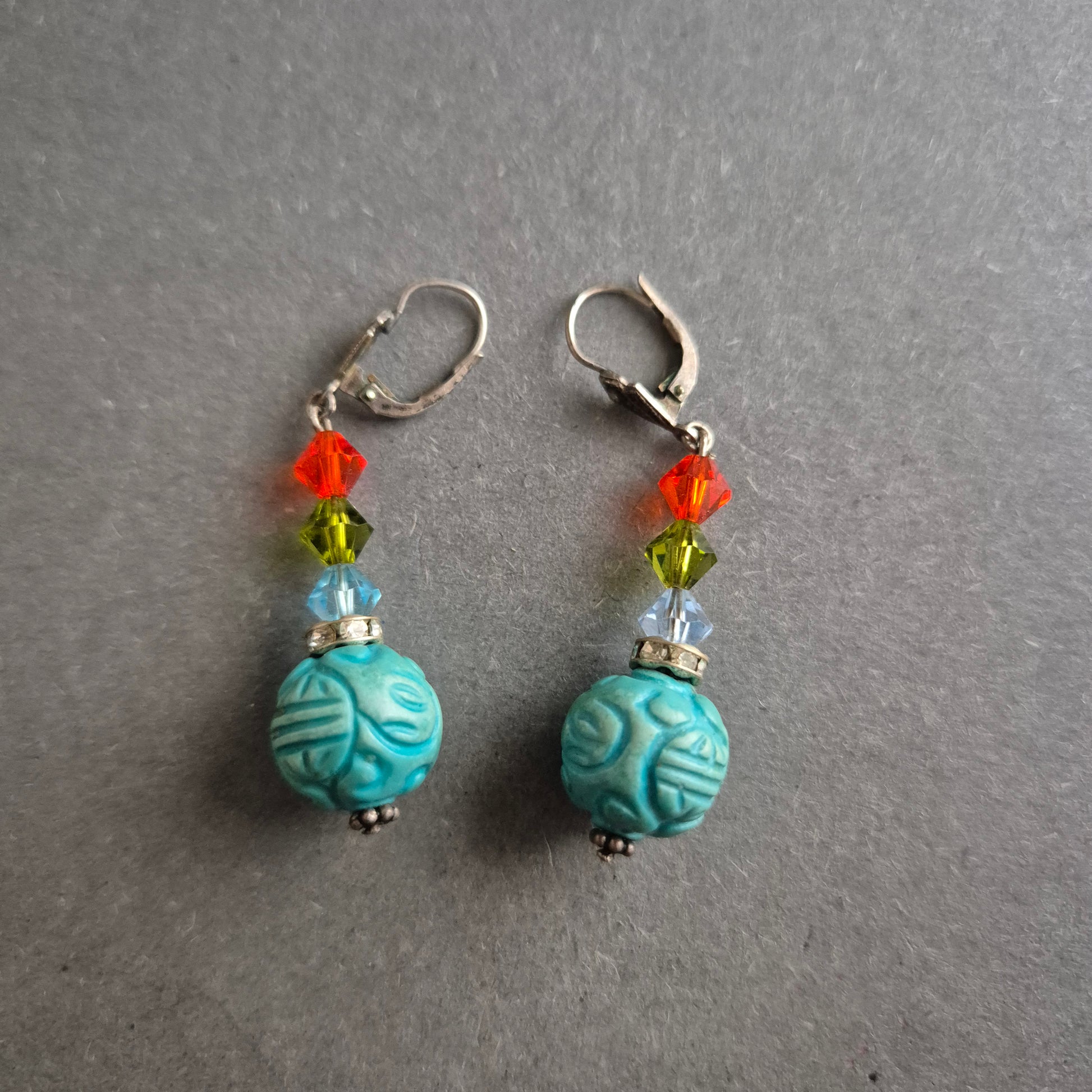 Bunte Ethno-Ohrringe mit türkisfarbener Kugel – Exotischer Boho-Stil