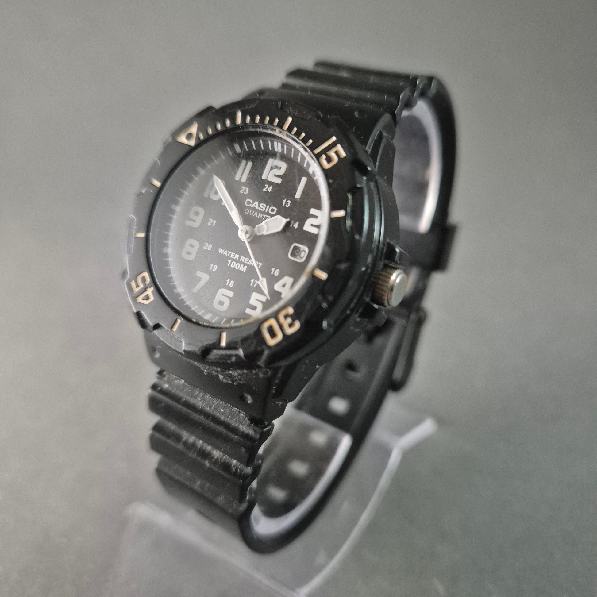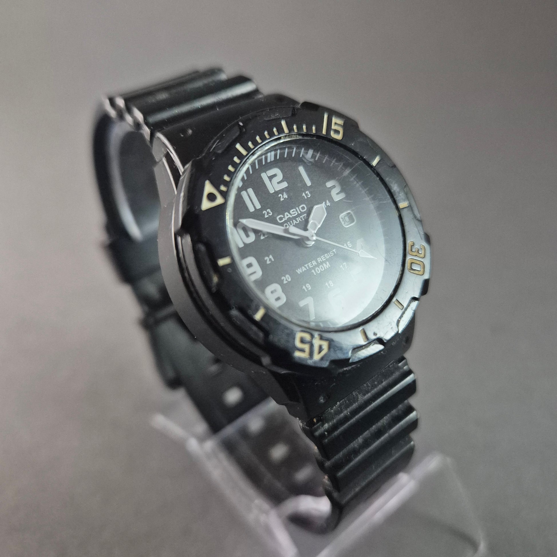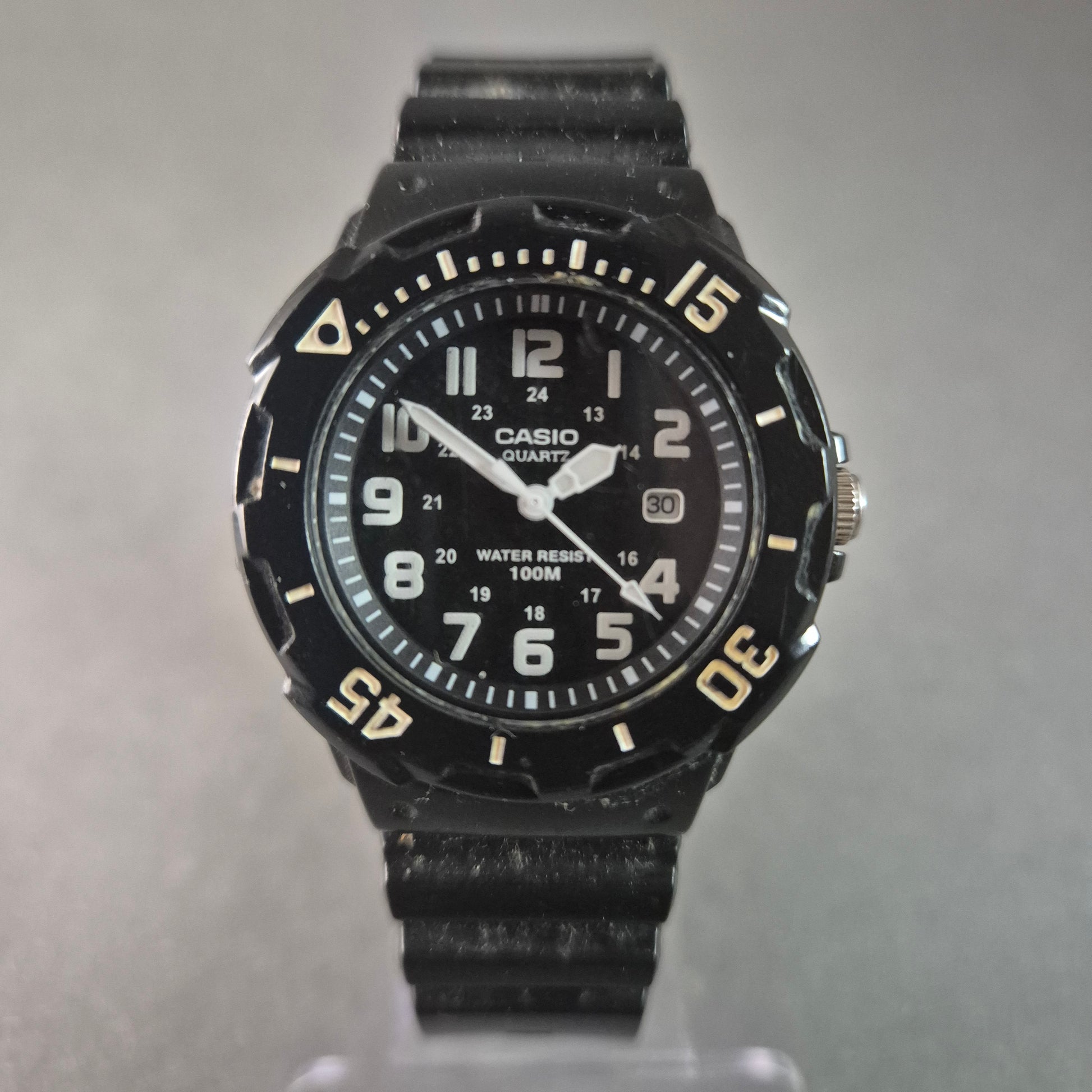 Die Casio MRW-200H ist eine zuverlässige und sportliche Herren-Armbanduhr mit einem klassischen Taucheruhren-Design. Das schwarze Gehäuse mit drehbarer Lünette verleiht der Uhr einen markanten Look, während das Zifferblatt mit gut ablesbaren Zahlen für höchste Funktionalität sorgt. Die Uhr ist bis zu 100 Meter wasserdicht und eignet sich somit perfekt für den Alltag und leichte Wassersportaktivitäten.
