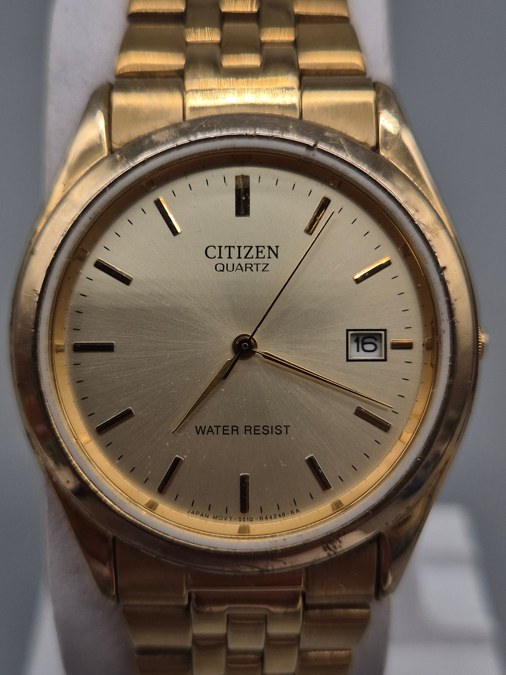 Citizen Herren Uhr – Gold‑Tone Quarz mit Datum, Vintage 5510er Serie