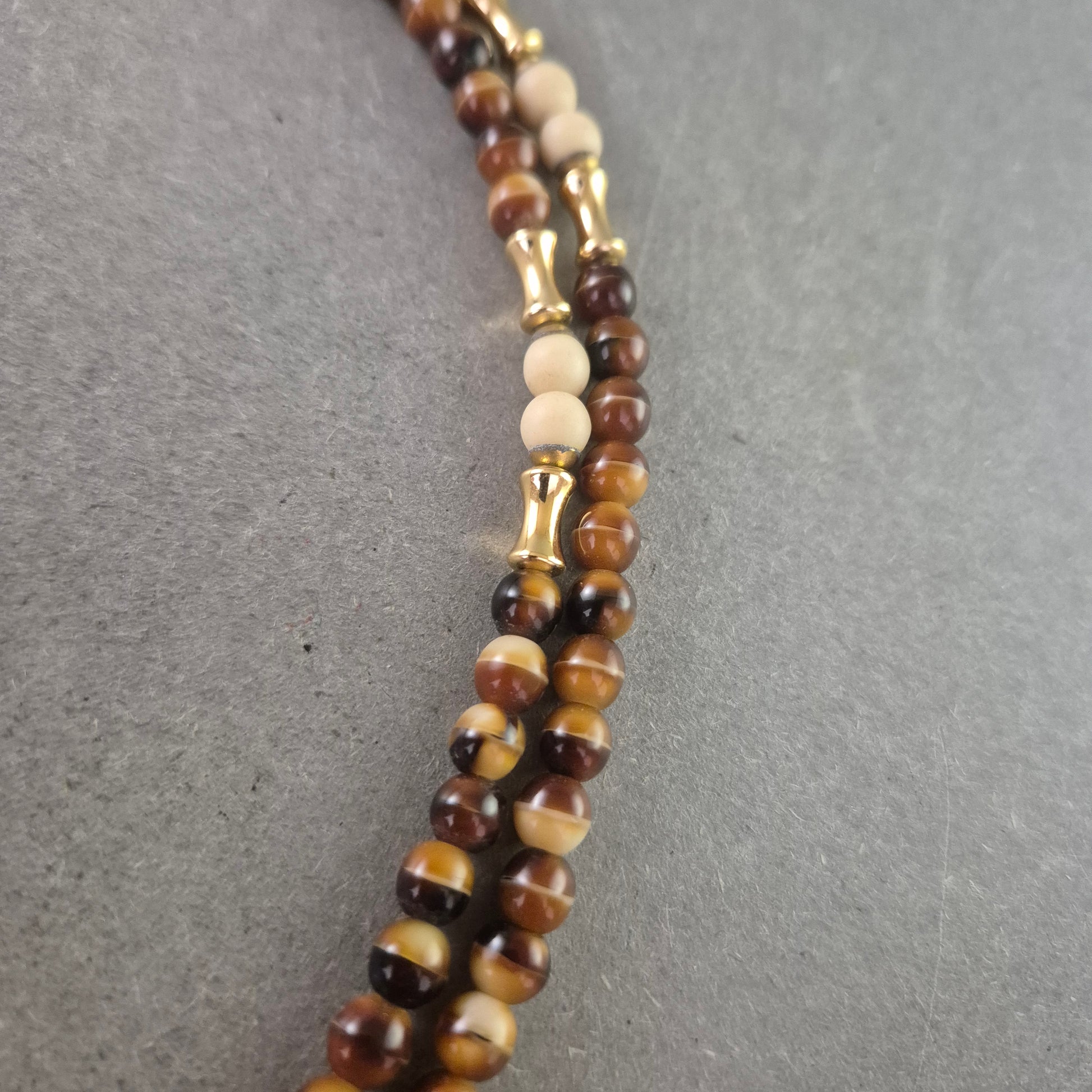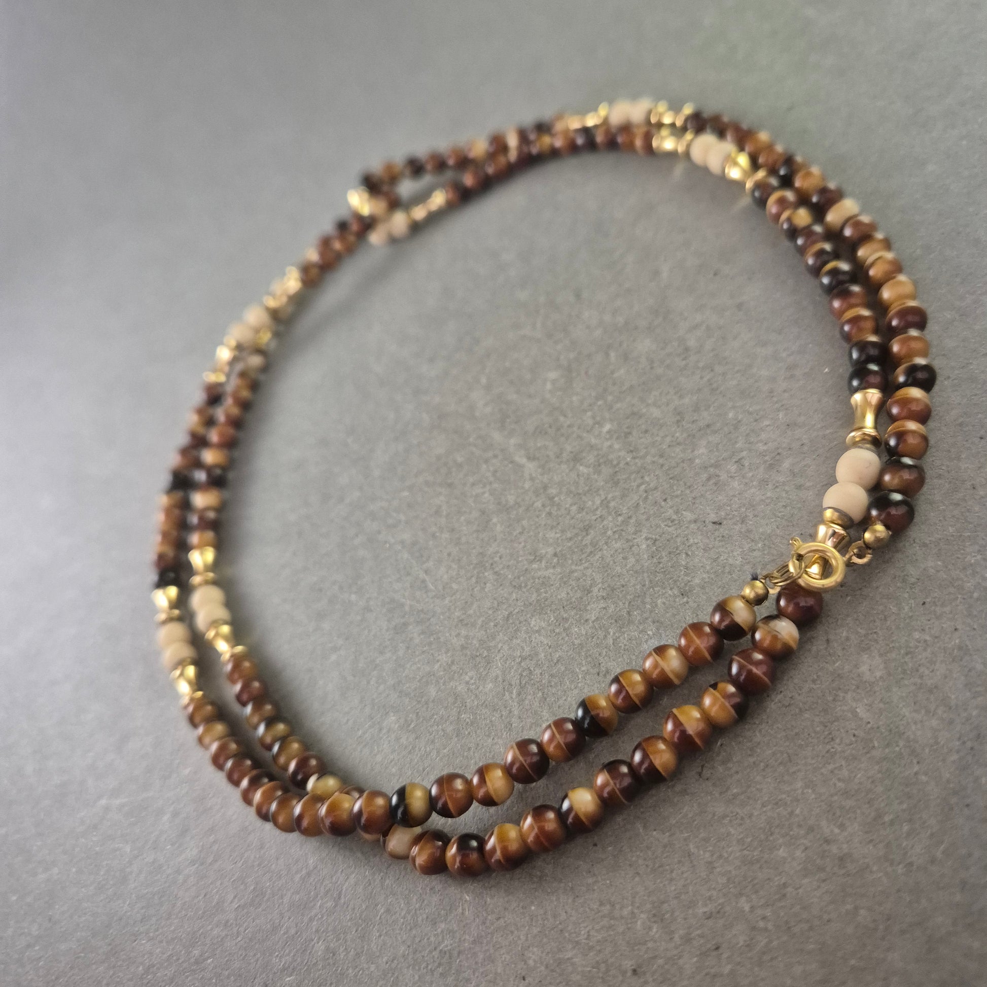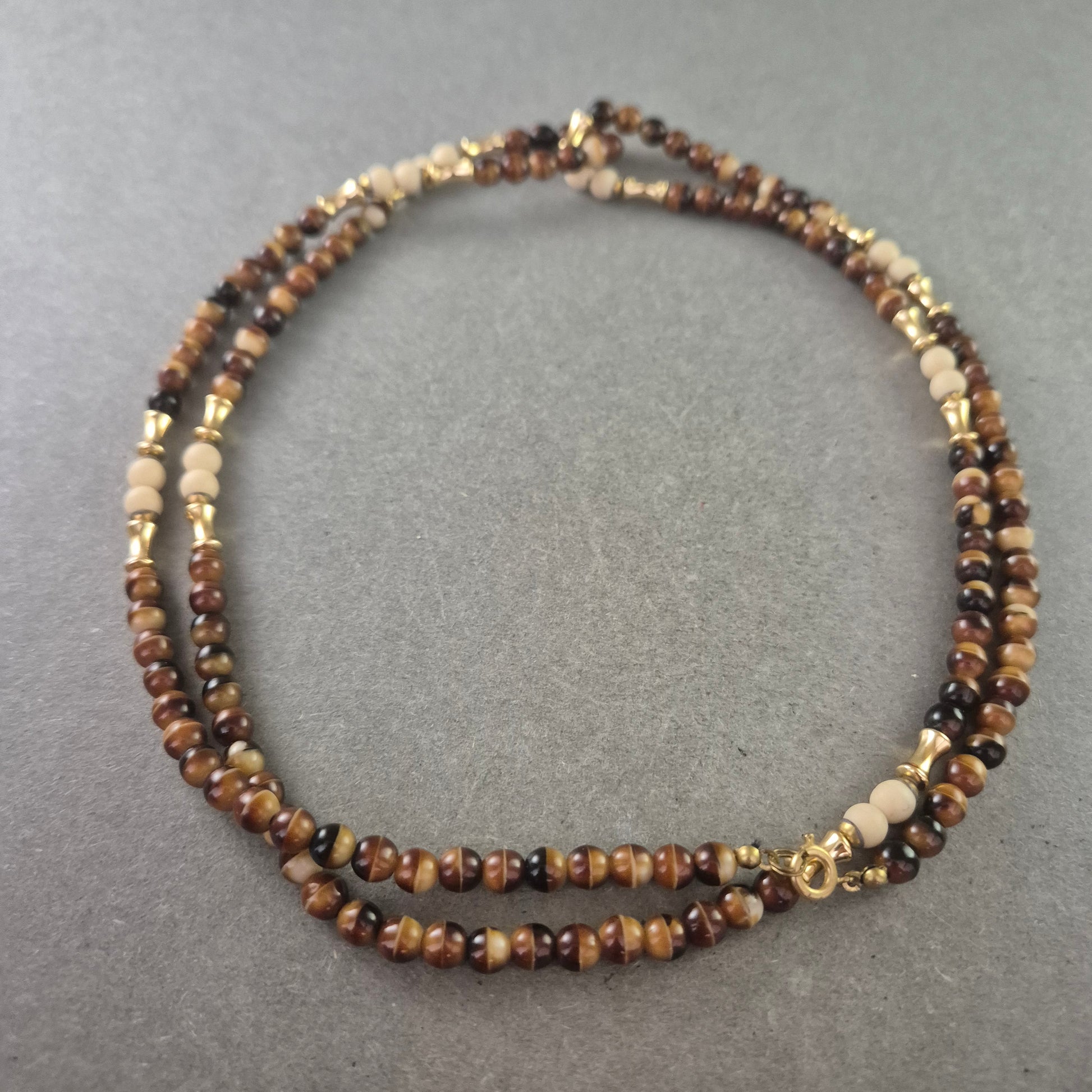 Damen Halskette mit braunen Steinperlen – Zweireihig & elegant