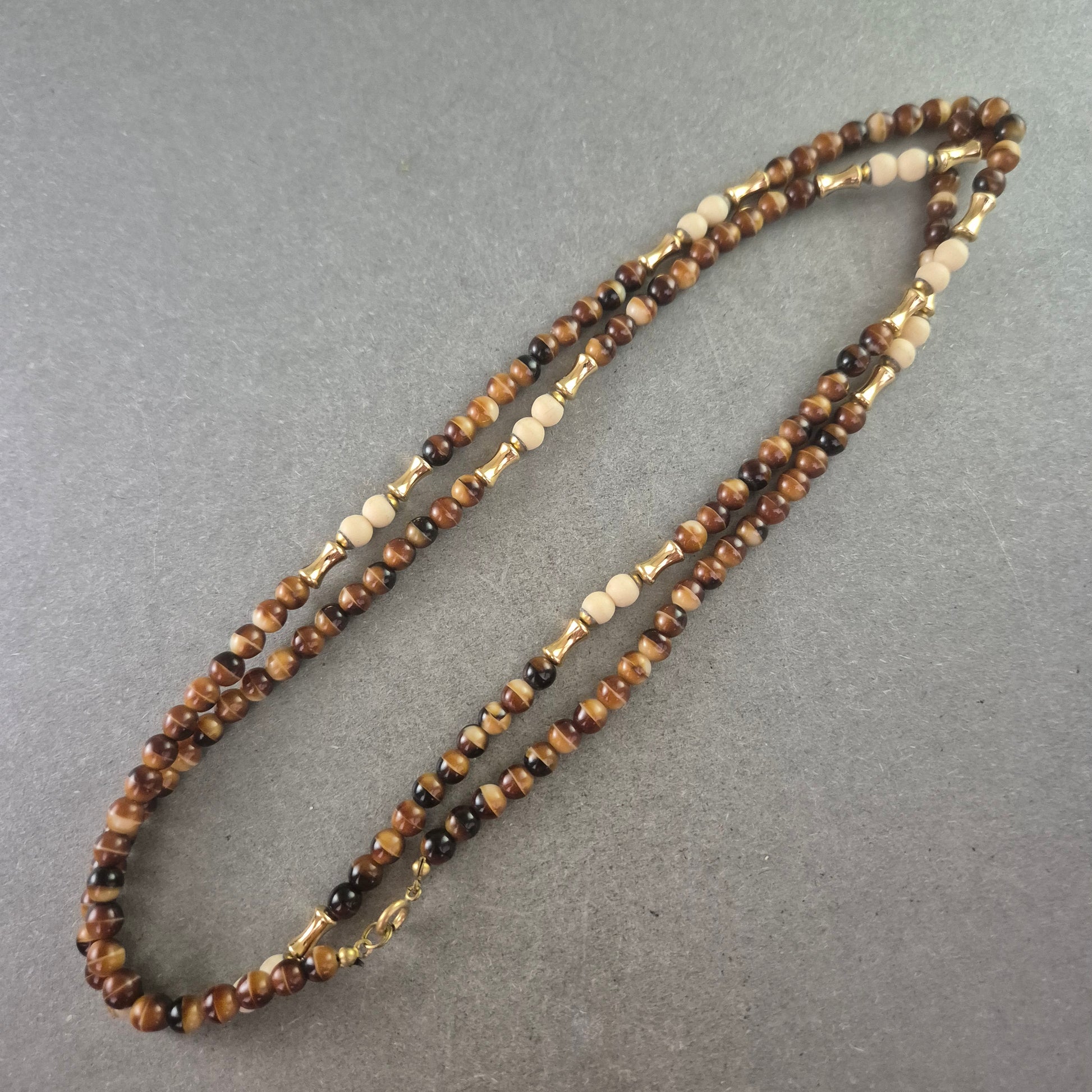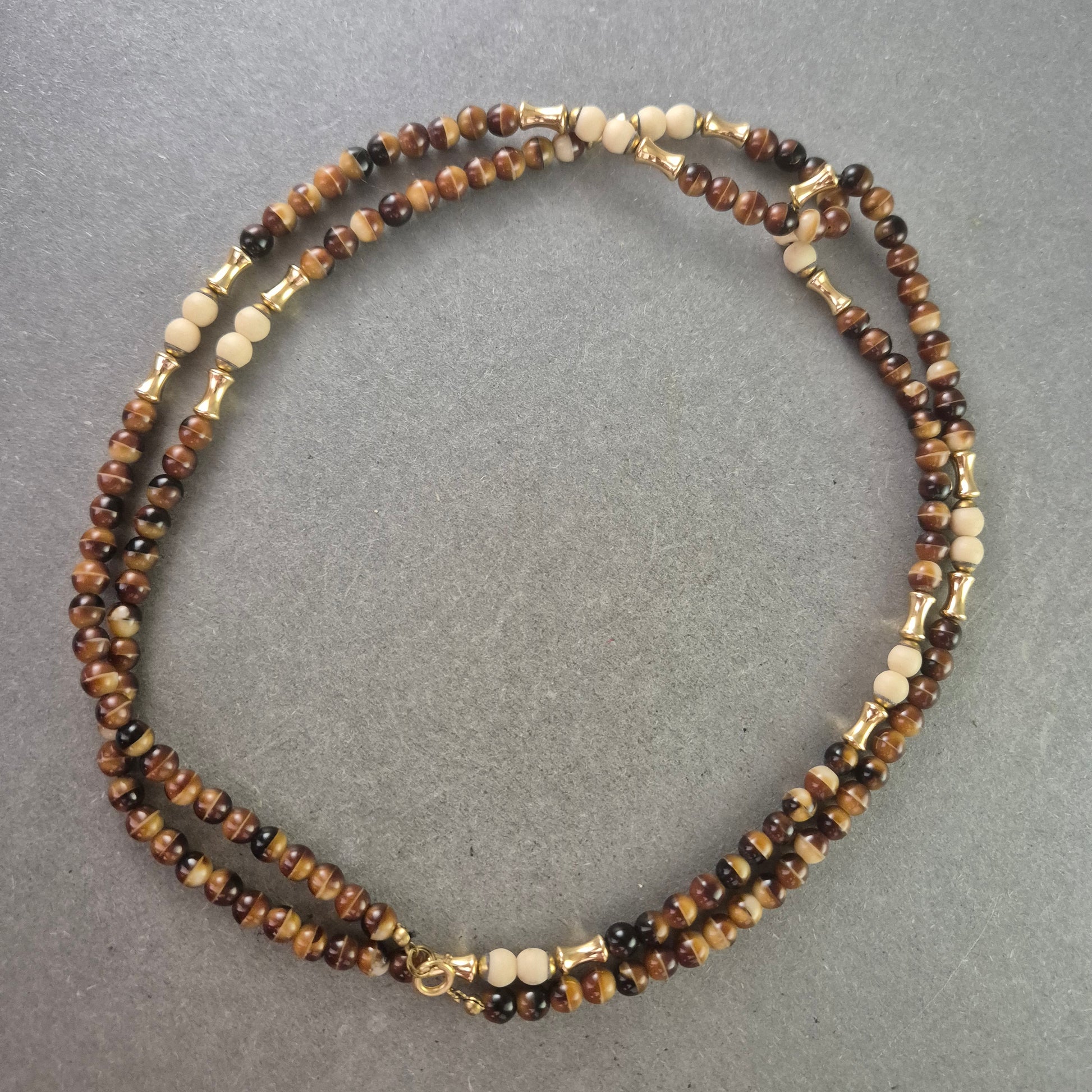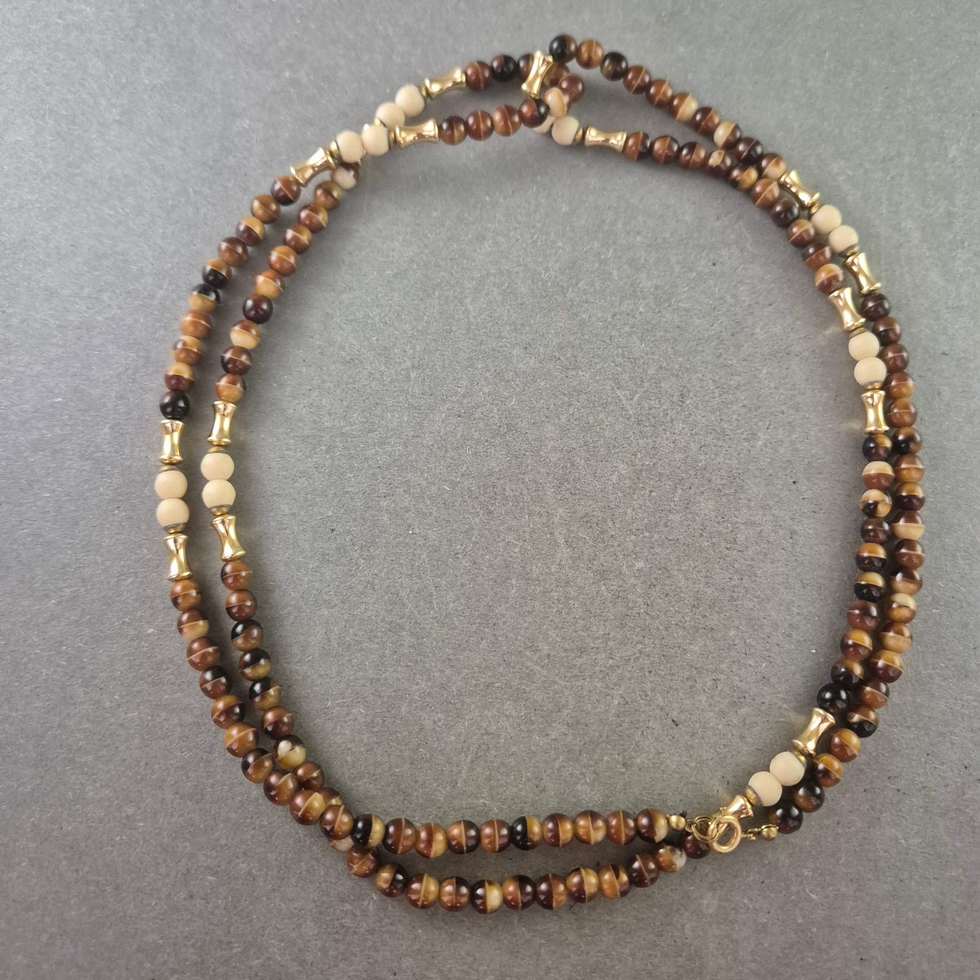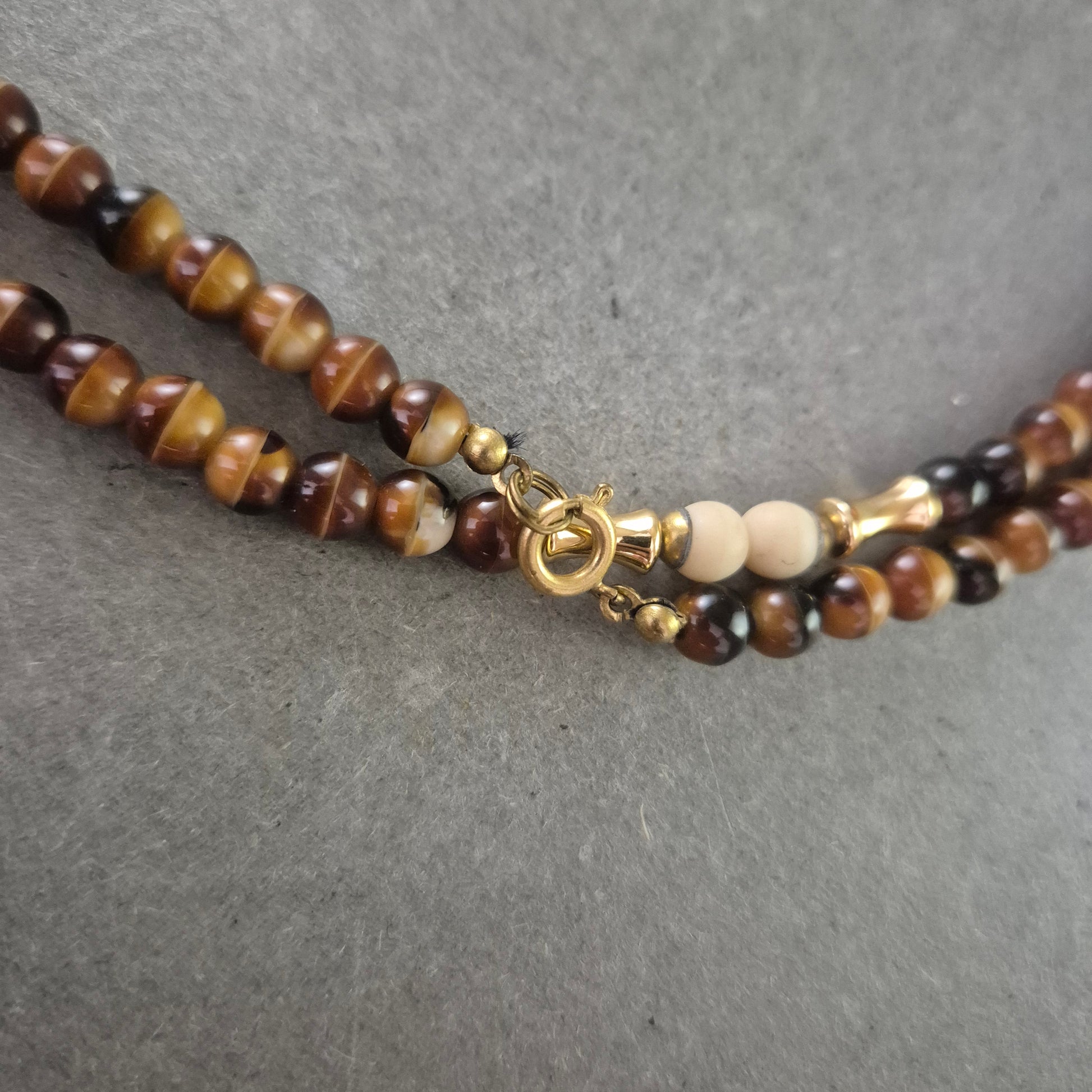 Damen Halskette mit braunen Steinperlen – Zweireihig & elegant