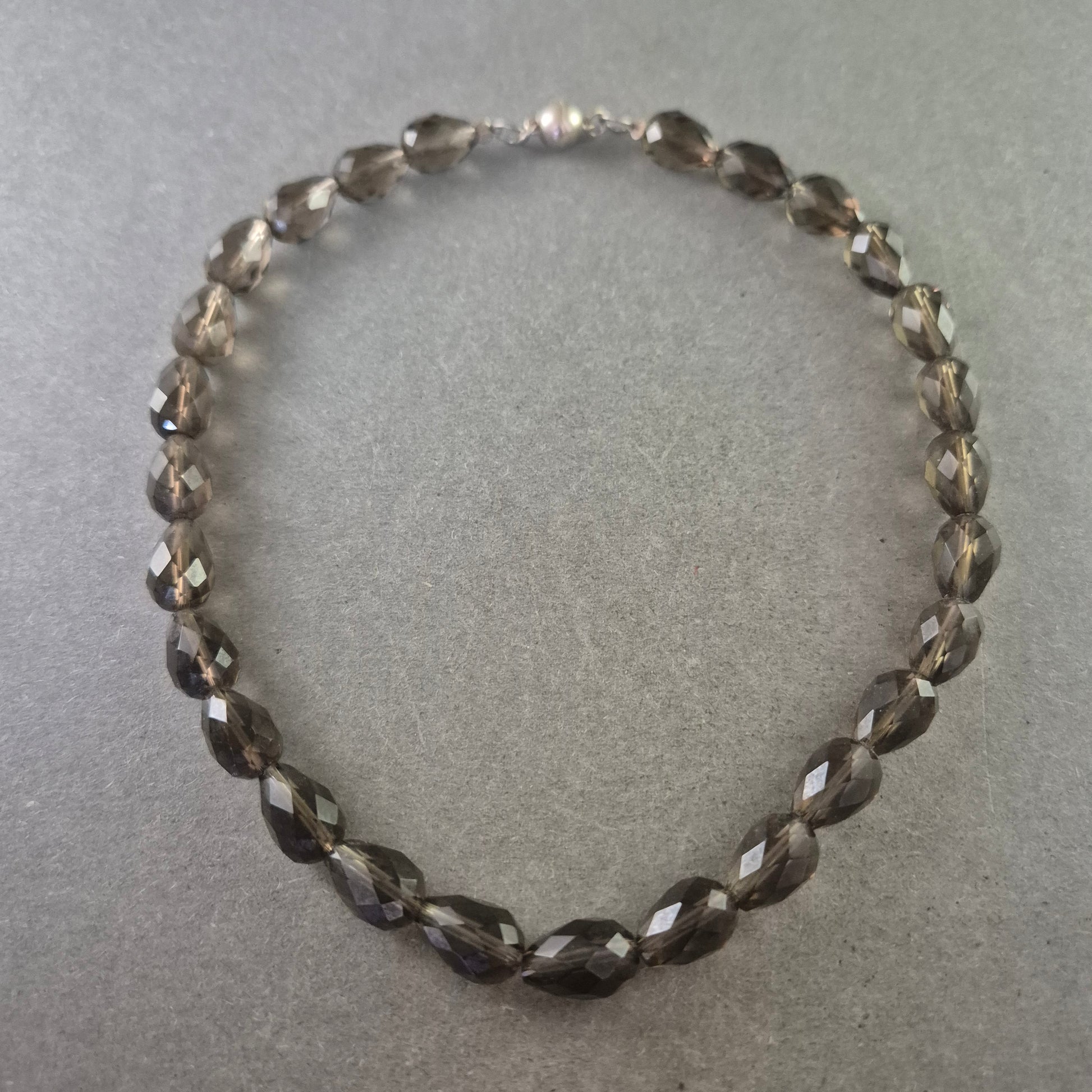 Damen Halskette mit grauen Glasperlen – Facettiertes Design