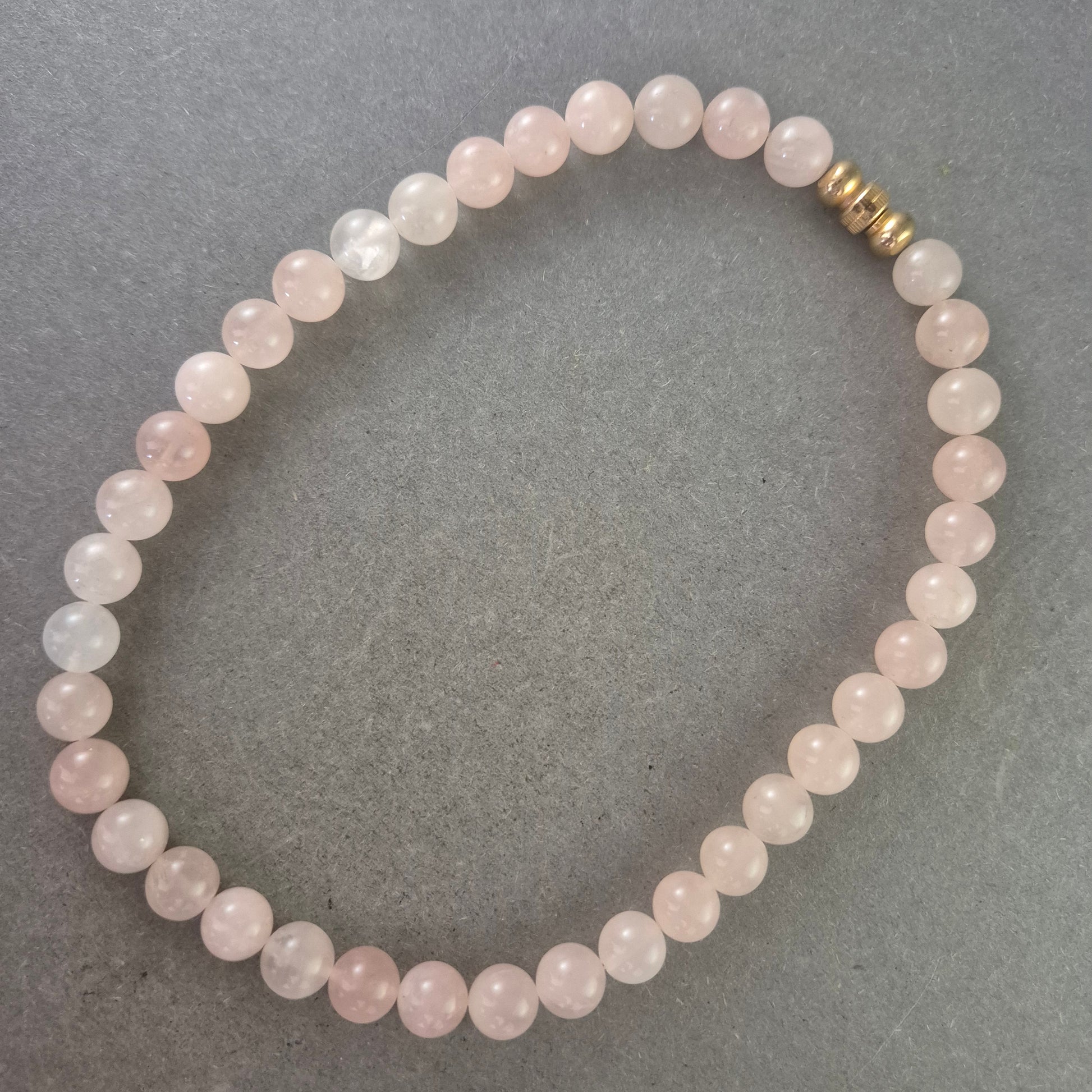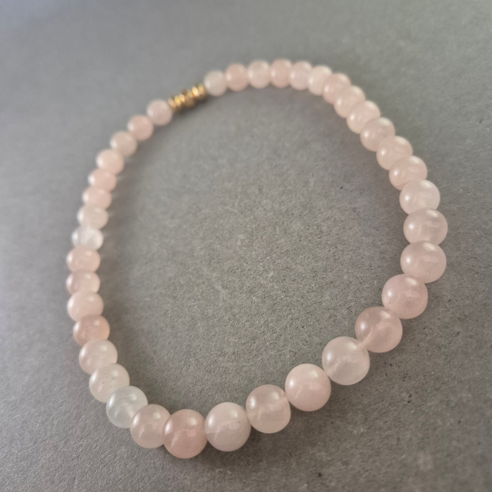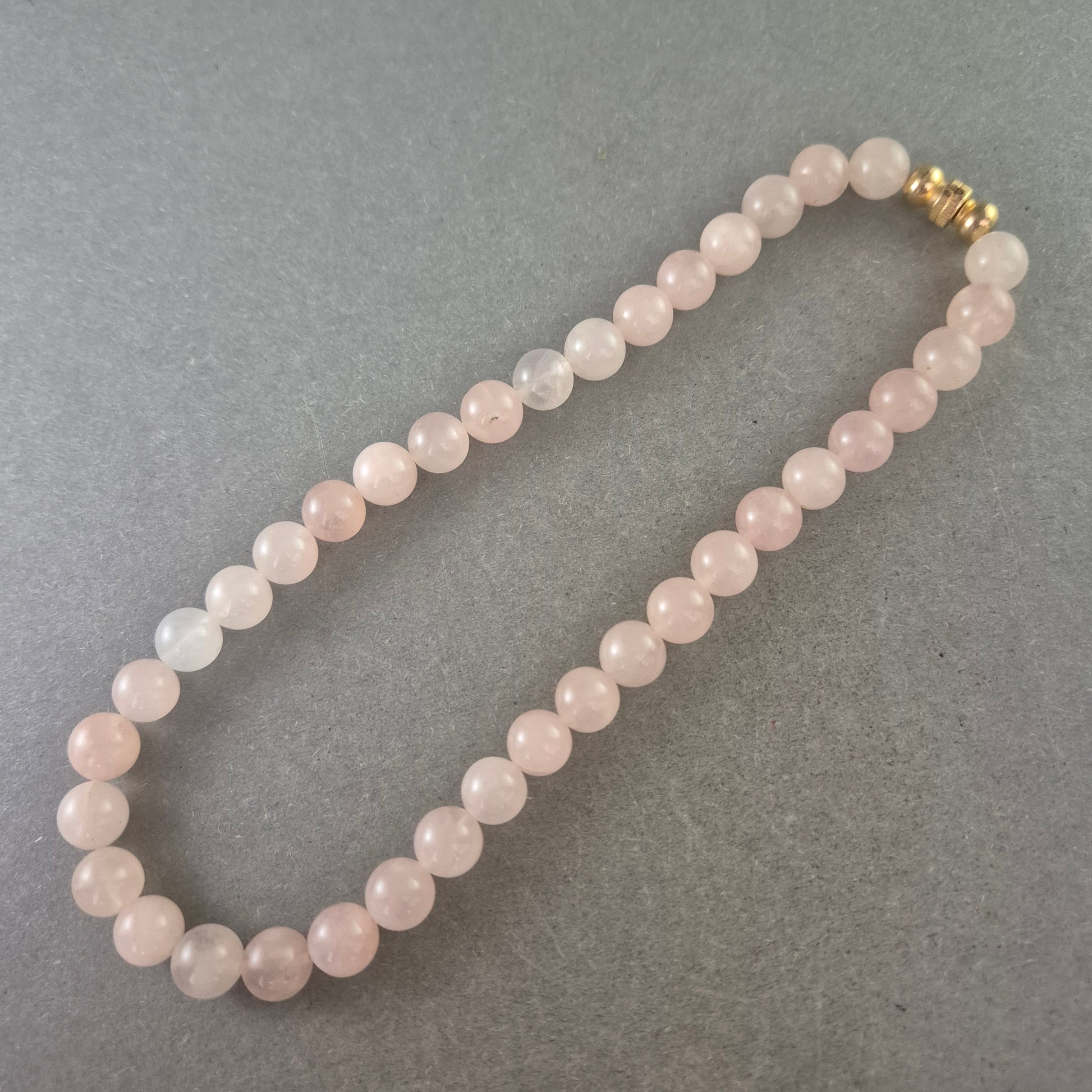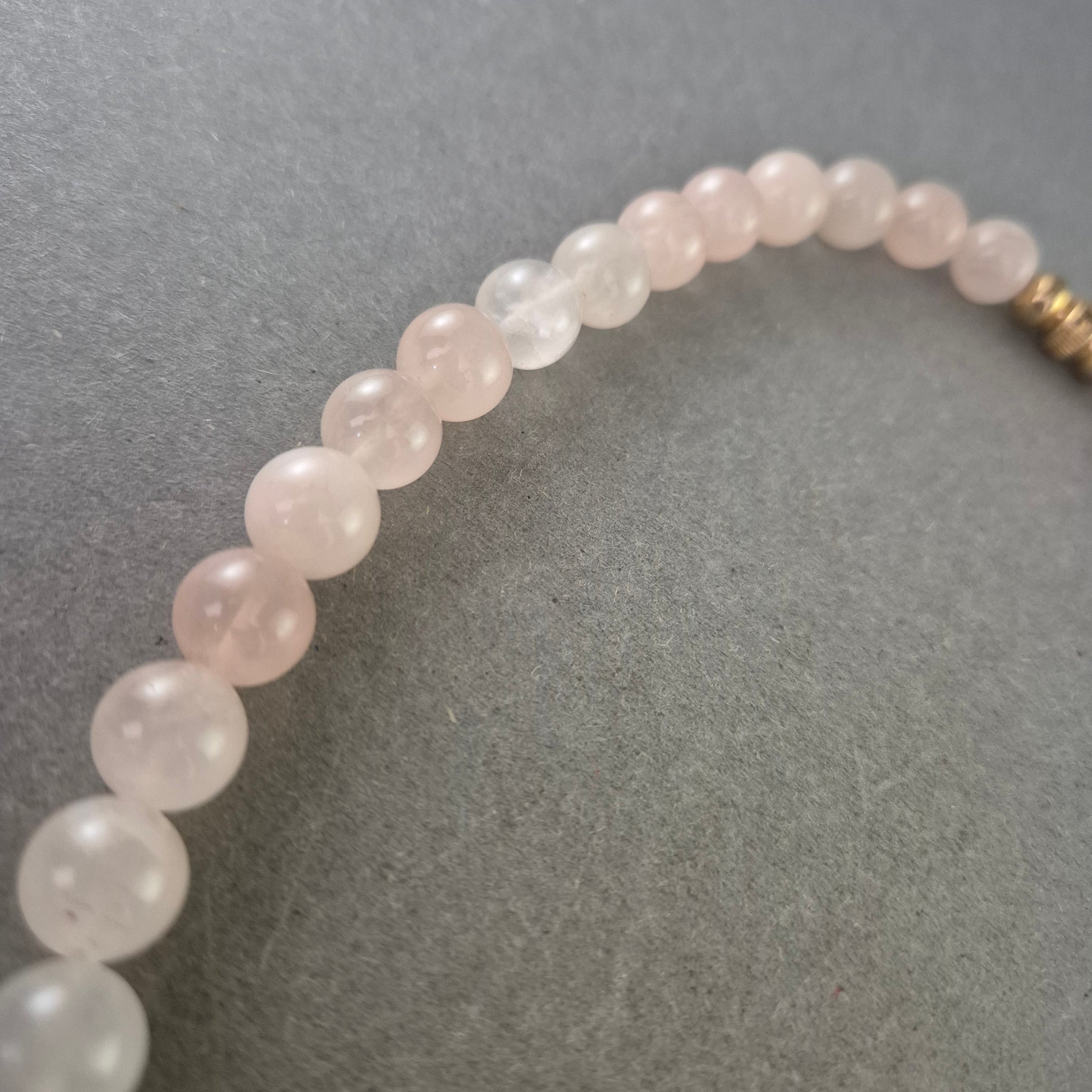 Diese elegante Damen Halskette ist aus zart rosafarbenem Rosenquarz gefertigt. Die Kugelperlen sind gleichmäßig geschliffen und aufgezogen, wodurch die Kette einen klassischen und femininen Look erhält. Der Magnetverschluss sorgt für einfaches An- und Ablegen.