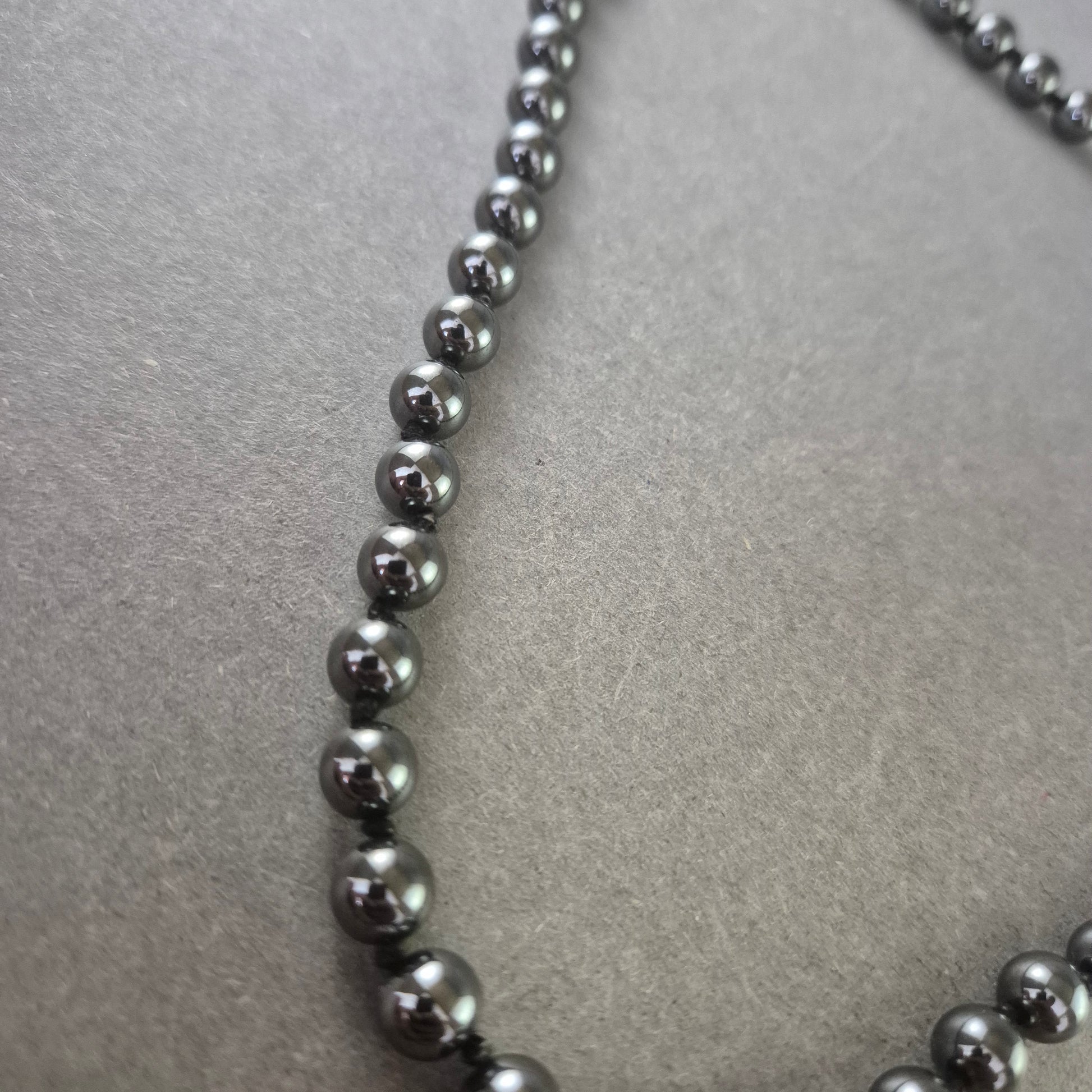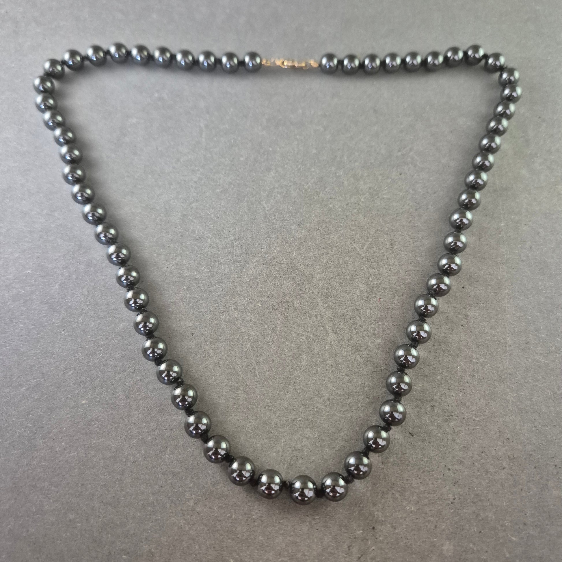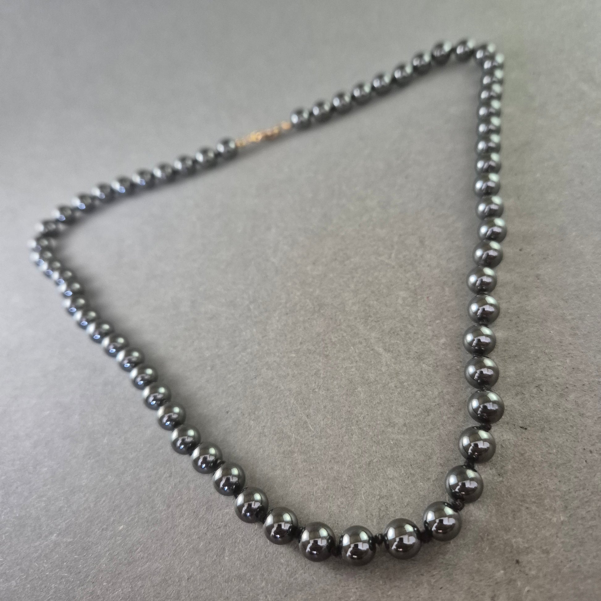 Diese elegante Damen Halskette ist mit runden, glänzenden Hämatit-Perlen besetzt. Hämatit ist bekannt für seinen metallischen Glanz und seine tiefdunkle Farbe, die der Kette eine edle und moderne Ausstrahlung verleiht. Dank des klassischen Designs ist sie vielseitig kombinierbar und sowohl für den Alltag als auch für festliche Anlässe geeignet.