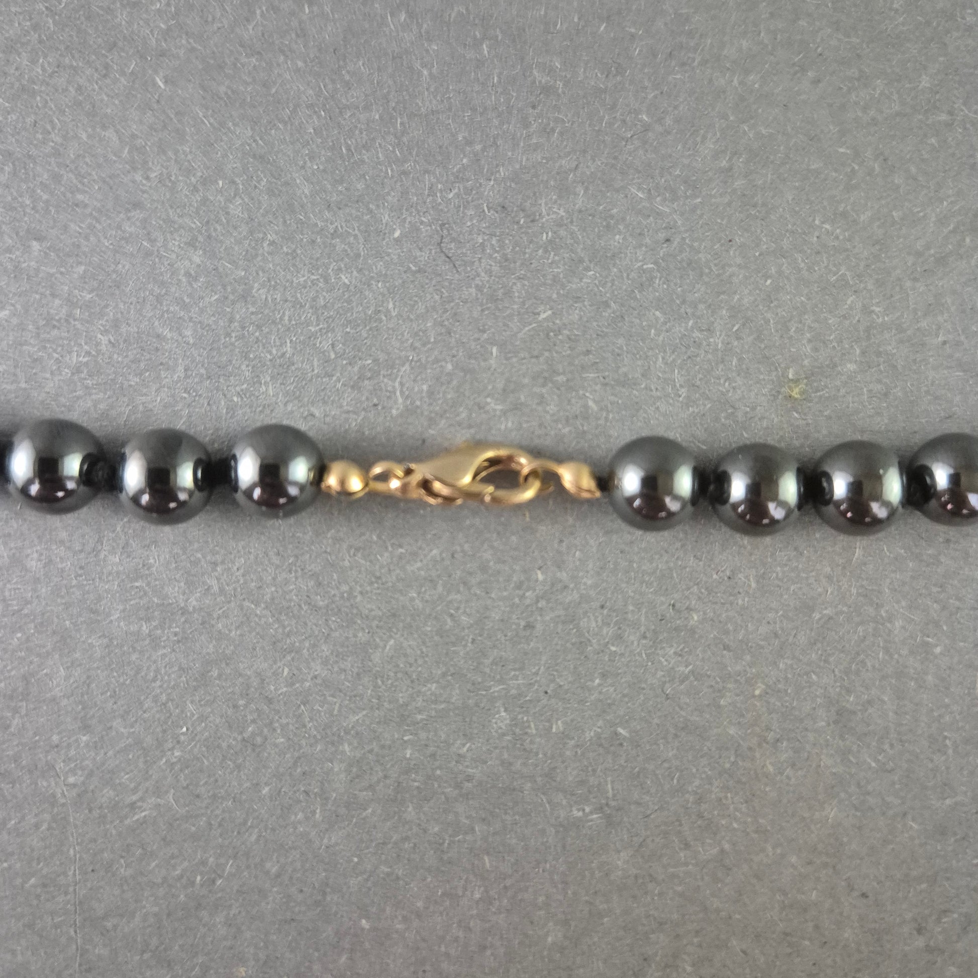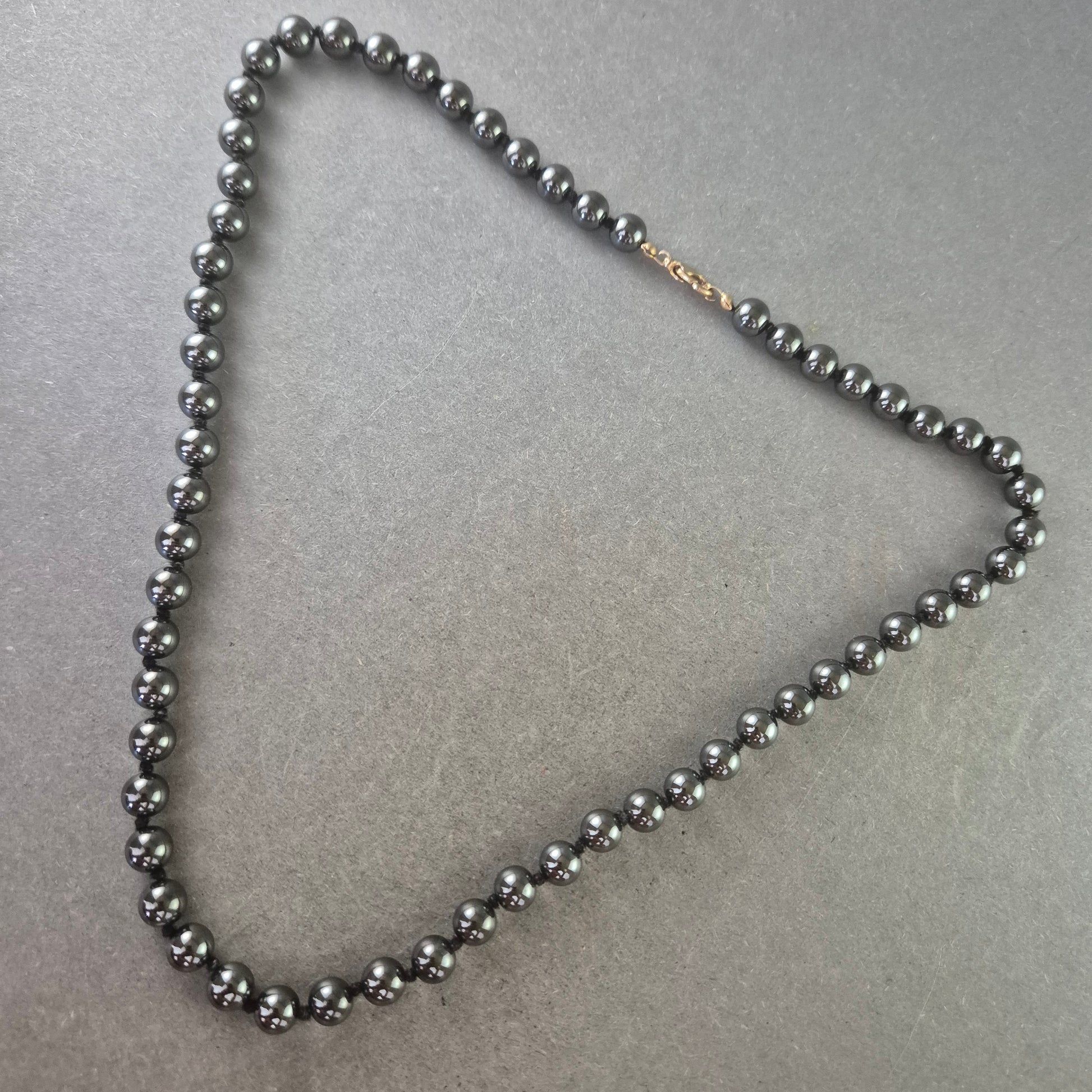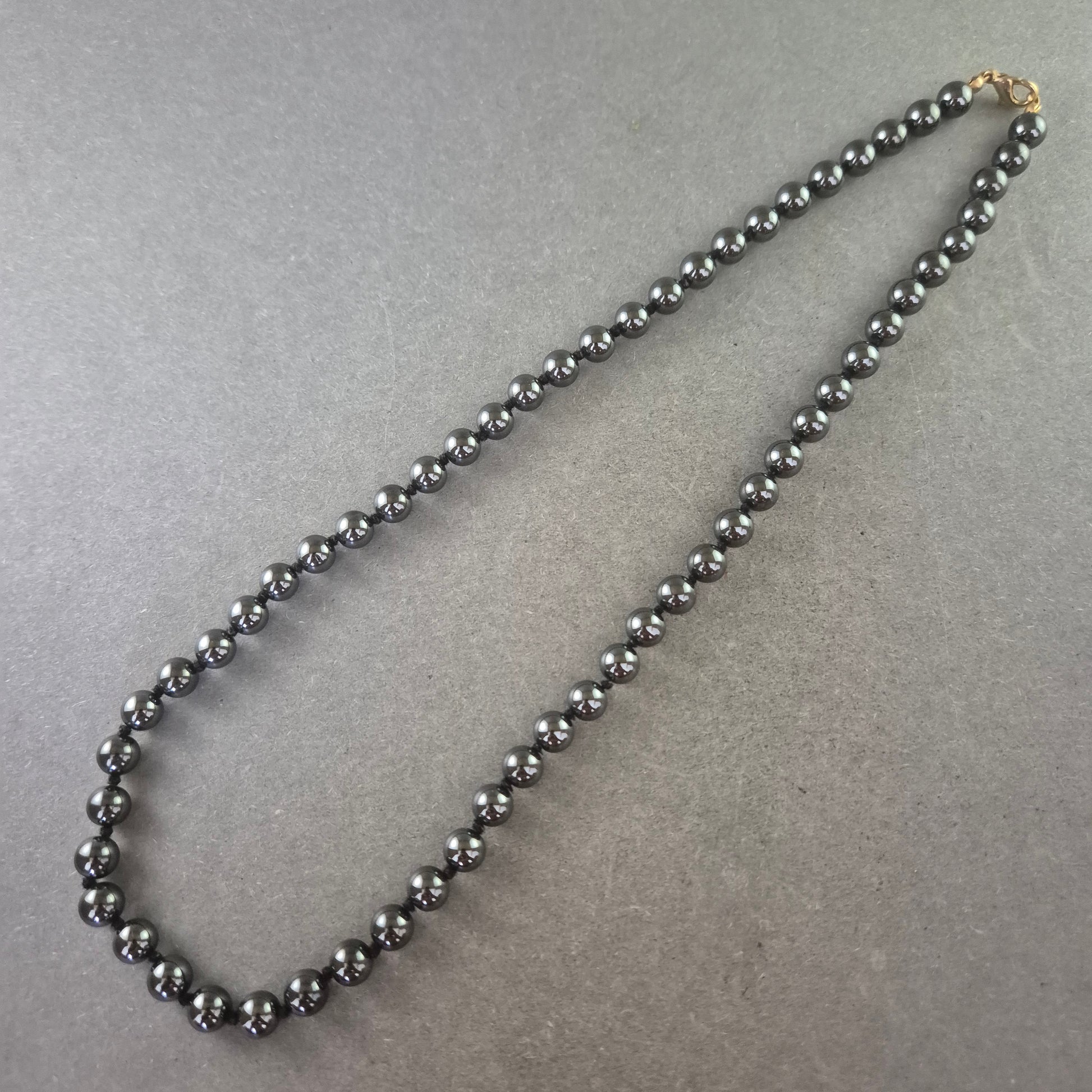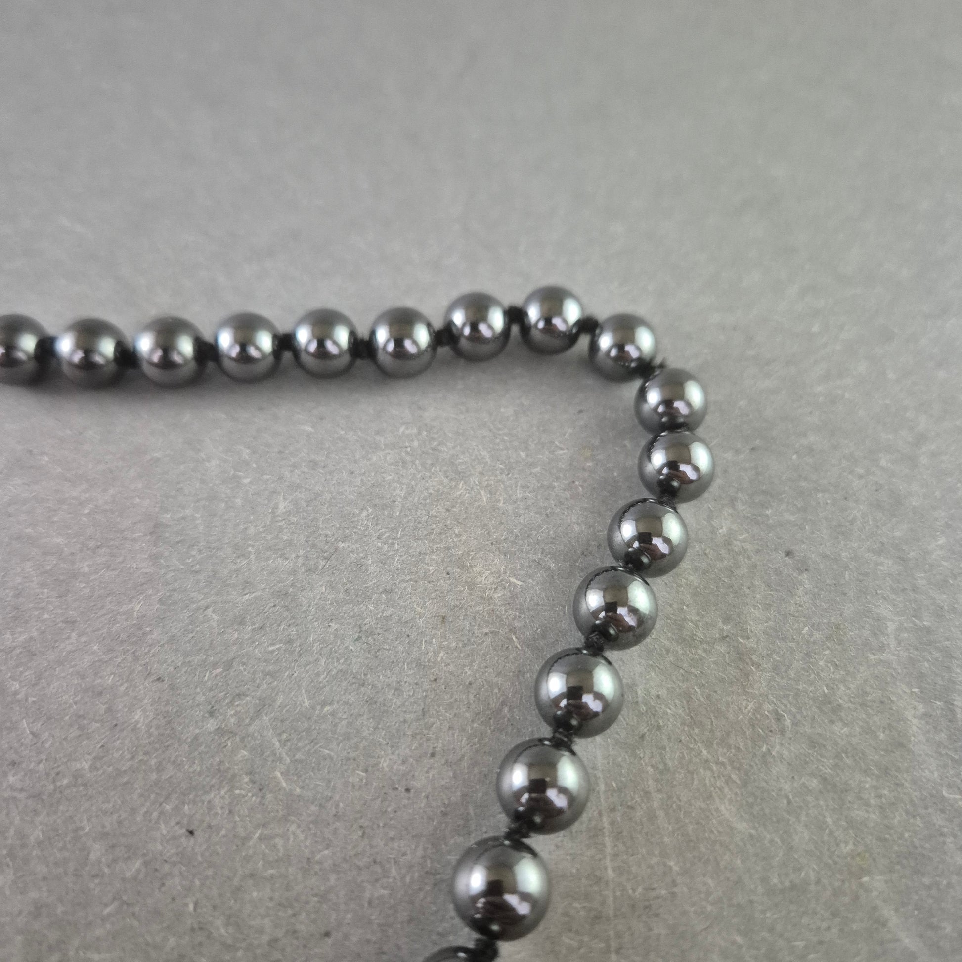 Diese elegante Damen Halskette ist mit runden, glänzenden Hämatit-Perlen besetzt. Hämatit ist bekannt für seinen metallischen Glanz und seine tiefdunkle Farbe, die der Kette eine edle und moderne Ausstrahlung verleiht. Dank des klassischen Designs ist sie vielseitig kombinierbar und sowohl für den Alltag als auch für festliche Anlässe geeignet.