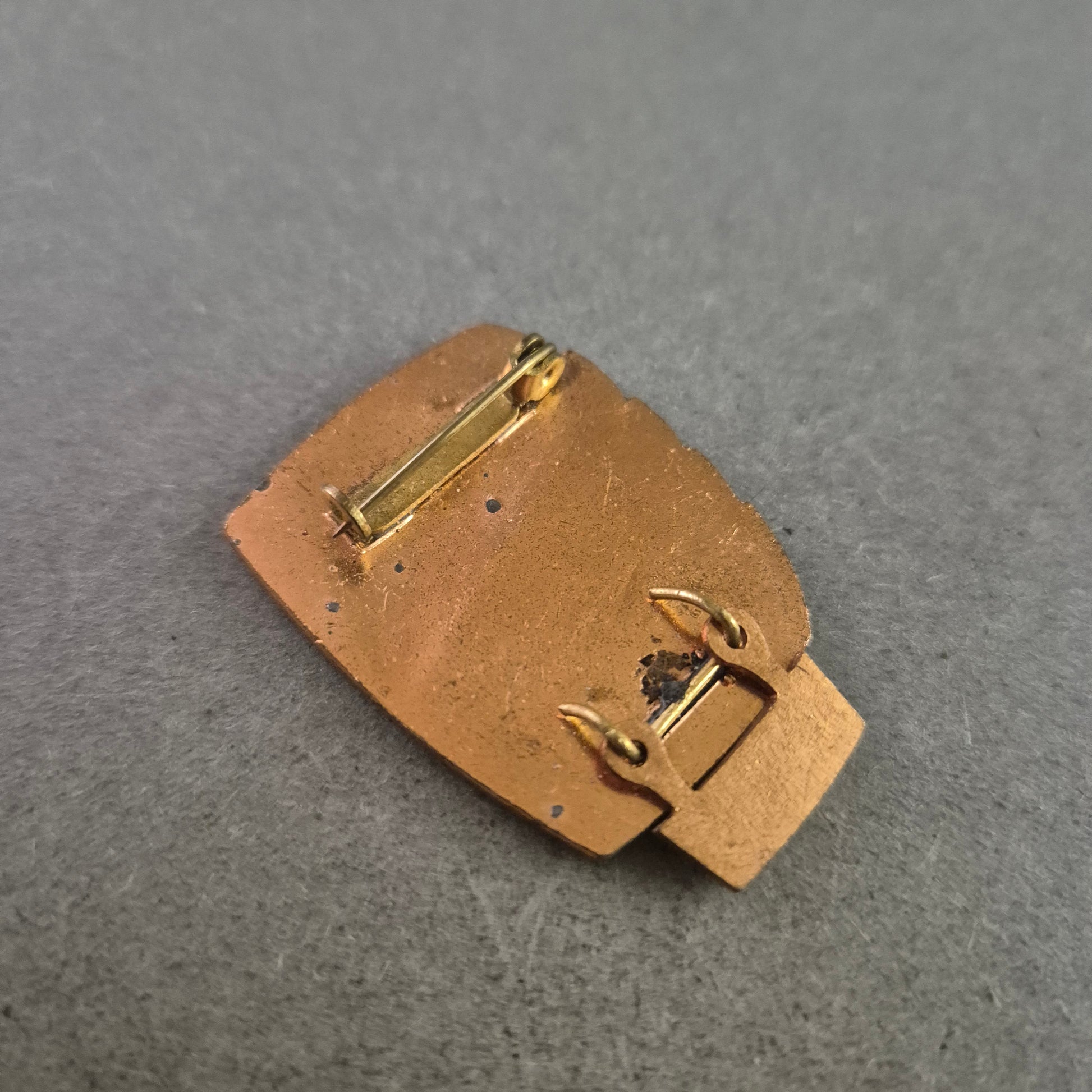 Dieses historische Abzeichen stammt aus der ehemaligen DDR und repräsentiert die Nationale Volksarmee (NVA). Es zeigt das Profil eines Soldaten mit Helm, eingerahmt von einem goldfarbenen Lorbeerzweig. Darunter befindet sich die Aufschrift „DDR – Nationale Volksarmee“ sowie die Stufenangabe „2“. Das Abzeichen ist in Rot und Gold gehalten und verfügt über eine Anstecknadel auf der Rückseite. Ein interessantes Sammlerstück für Liebhaber von Militärgeschichte und DDR-Orden.