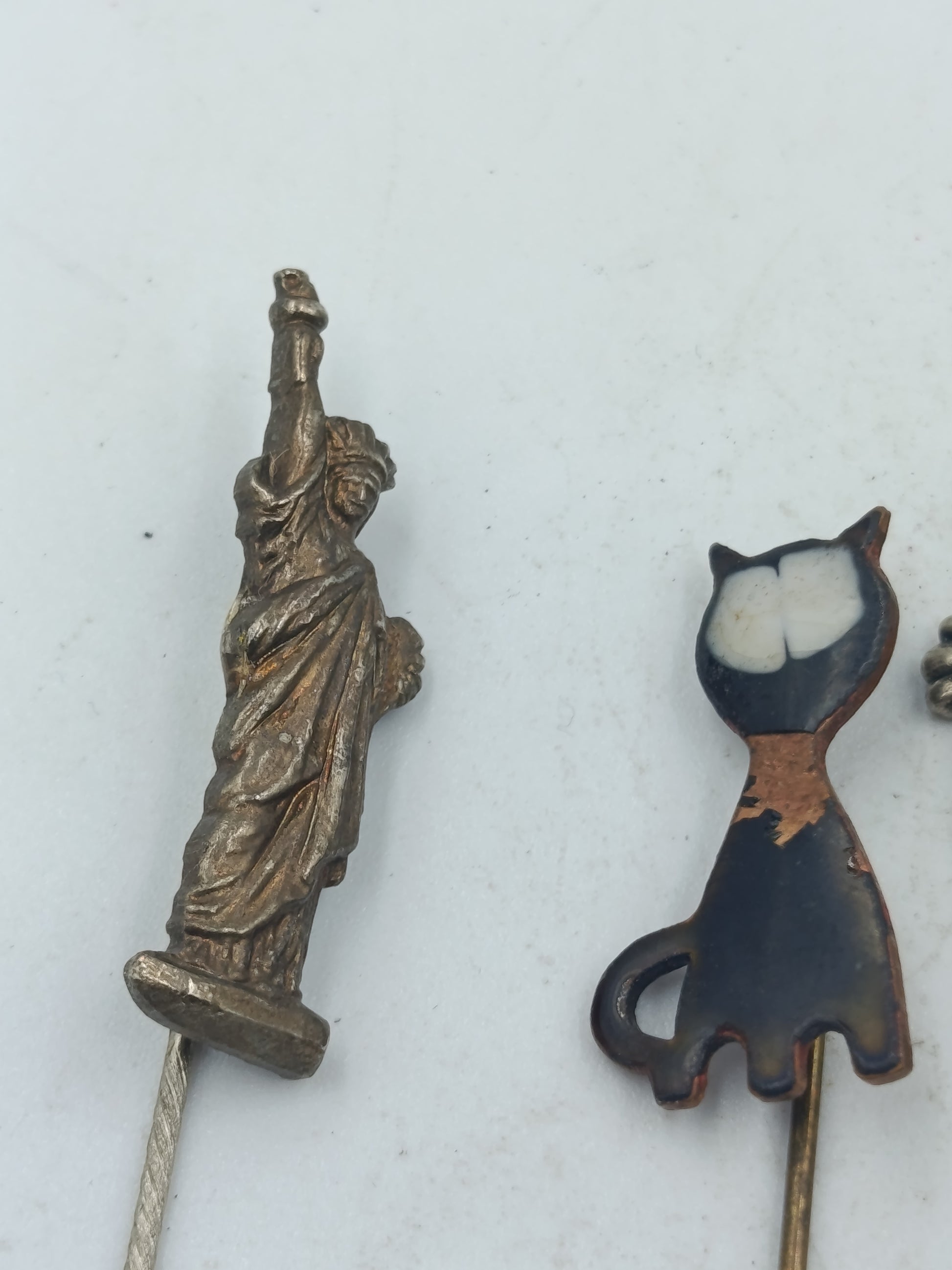 Dekoratives Set aus fünf Sammlernadeln mit Figuren Tier und maritimen Motiven im Vintage Stil