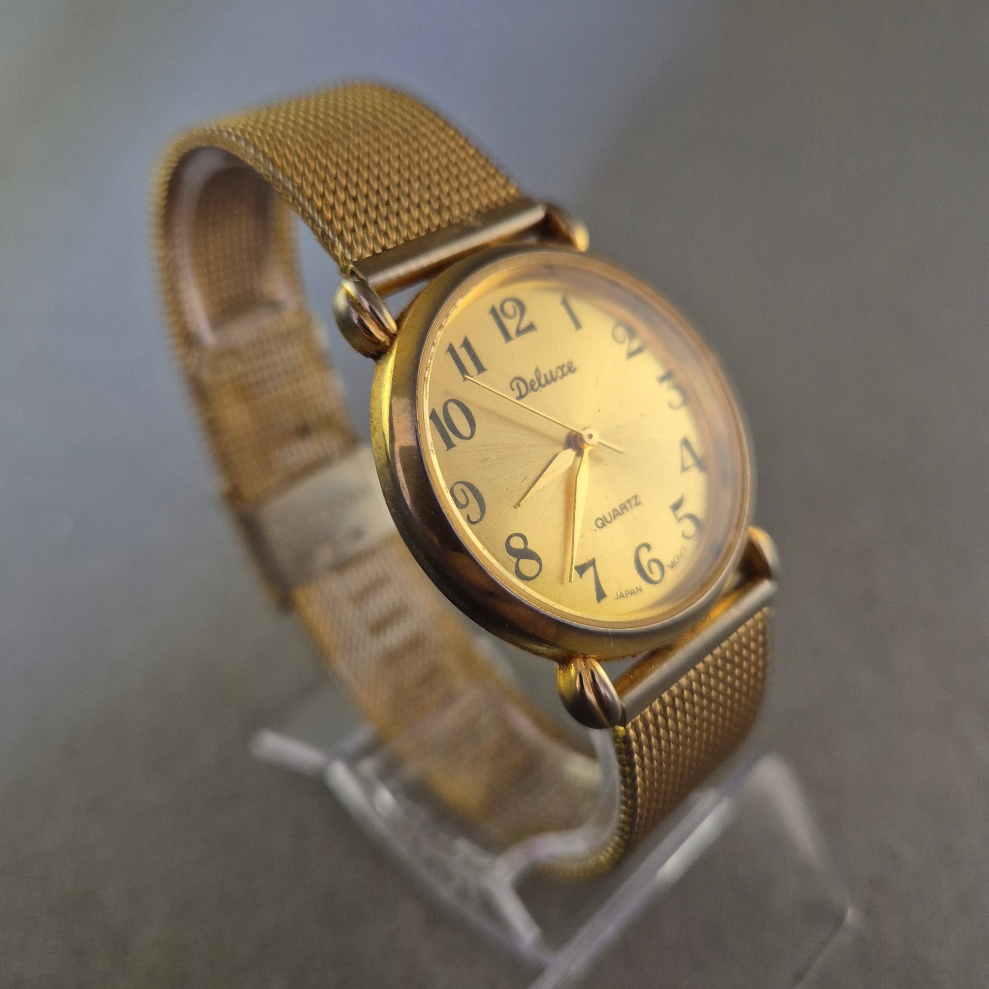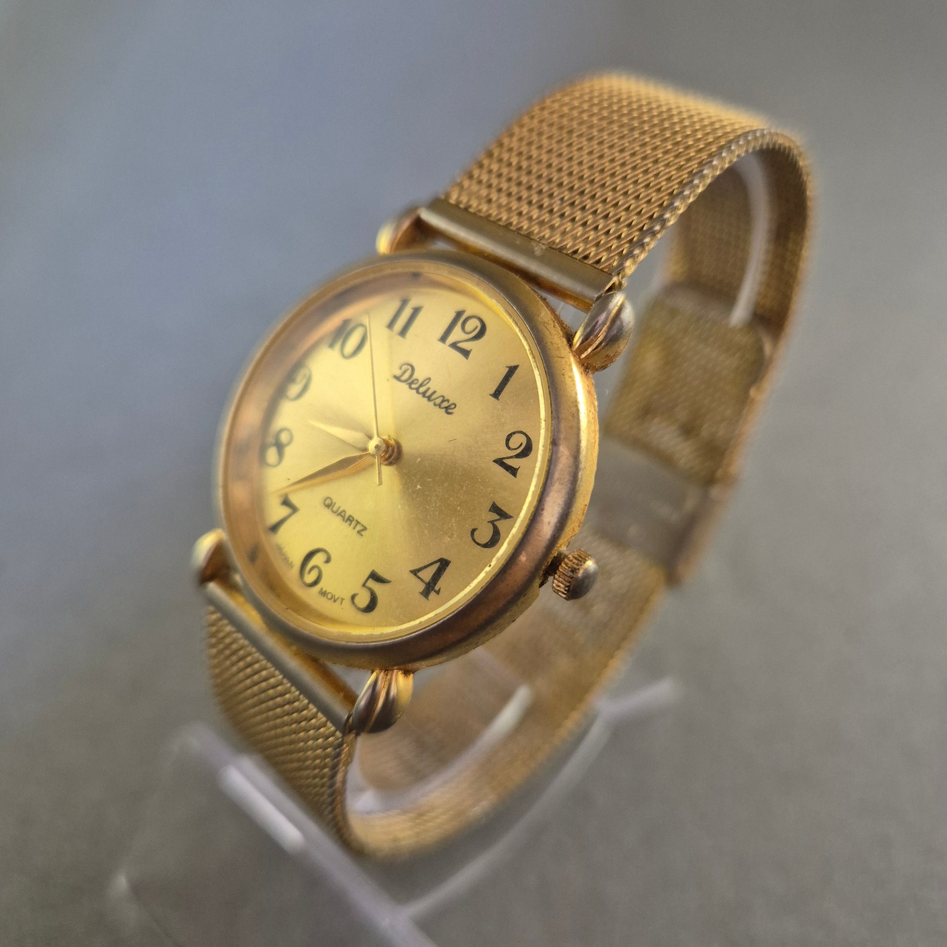 Deluxe Damenarmbanduhr – Goldfarbener Vintage-Stil mit Mesh-Armband