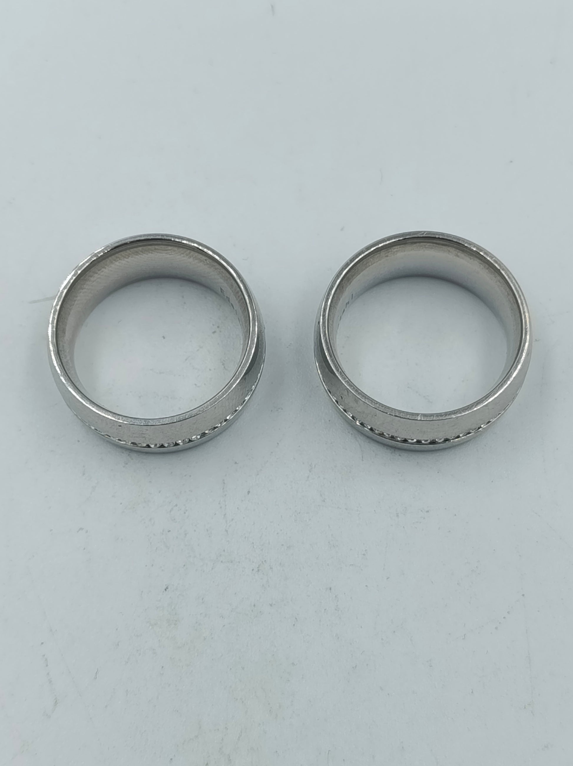 Elegantes Ringpaar aus Edelstahl in edlem silberfarbenem Finish mit einer feinen Reihe klarer Strass-Steine in der Mitte. Die schlichte, moderne Form verleiht den Ringen einen stilvollen Look – ideal als Partnerringe, Freundschaftsringe oder modisches Accessoire.
