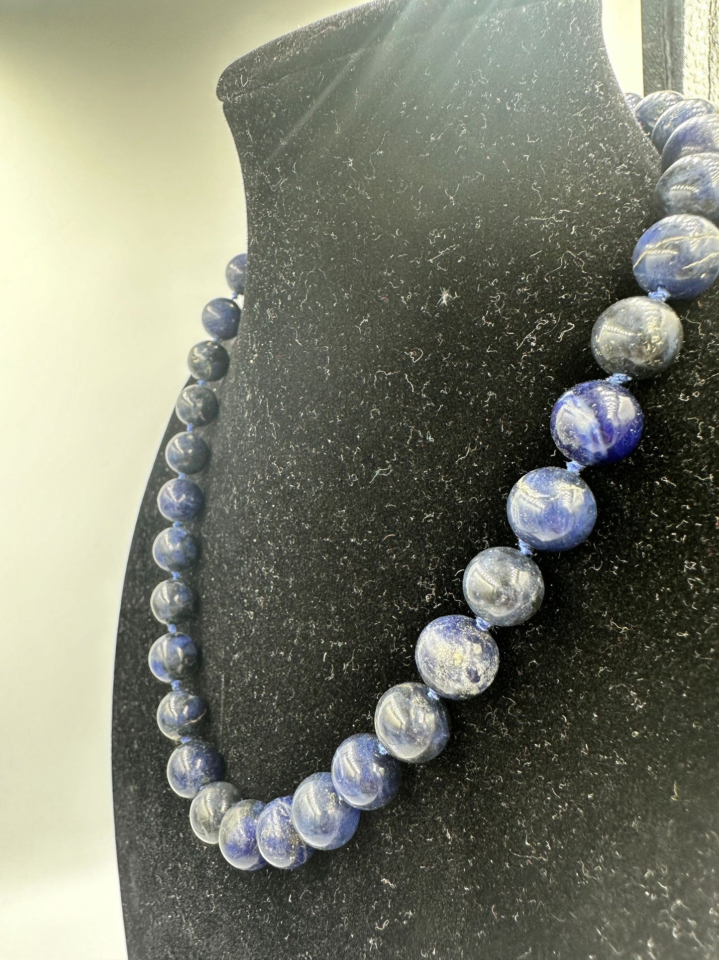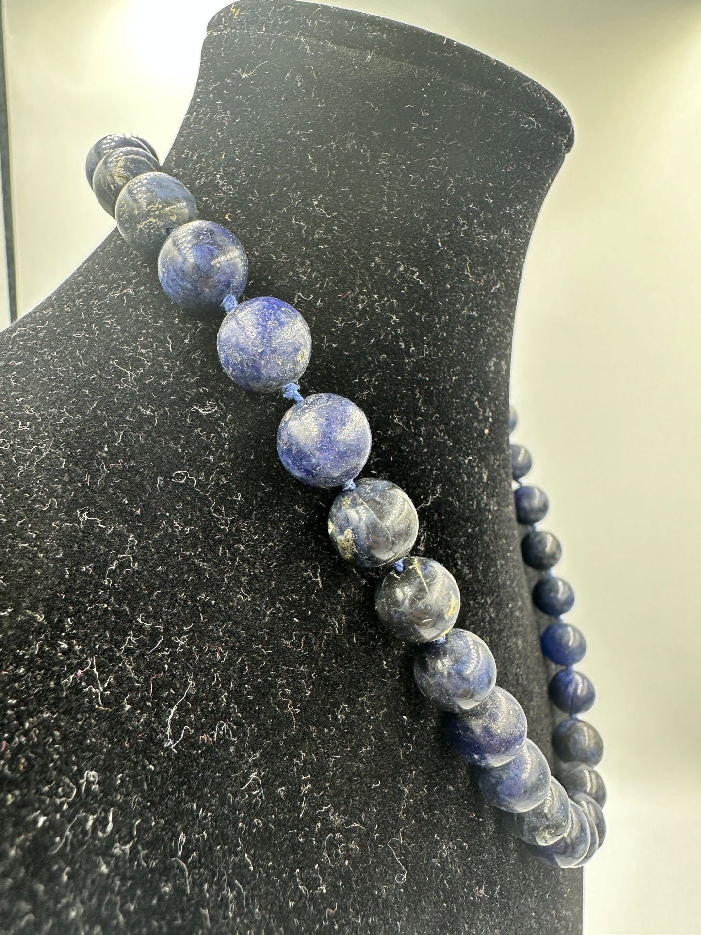 Entdecken Sie die zeitlose Schönheit mit unserer Lapislazuli Kugelkette, kunstvoll gefertigt und präsentiert in einer eleganten Fassung. Artikelnummer: FE0007.