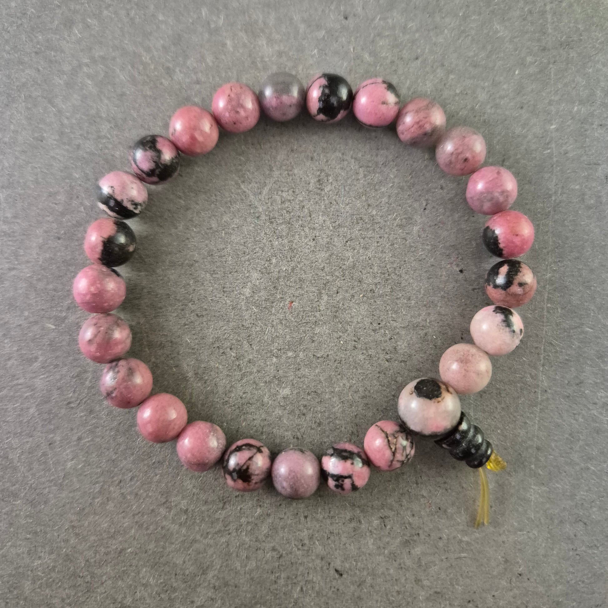 Dieses stilvolle Armband aus rosa und schwarz marmorierten Natursteinperlen kombiniert einen natürlichen Look mit einem modernen, handgemachten Design. Die elastische Passform sorgt für ein angenehmes Tragegefühl, während die feinen Farbverläufe der Steine jedes Armband zu einem Unikat machen. Ideal als modisches Accessoire für den Alltag oder als spiritueller Begleiter.