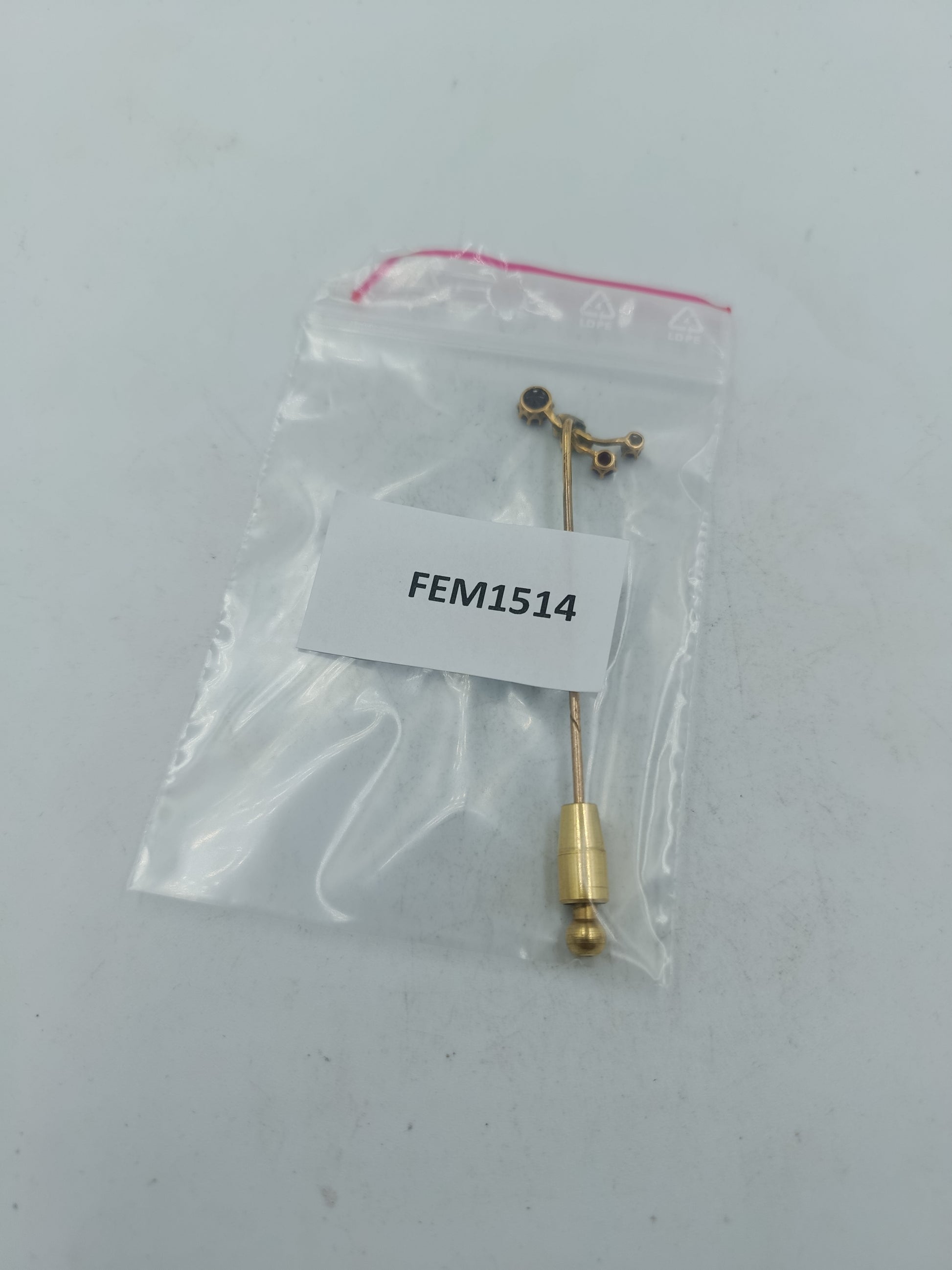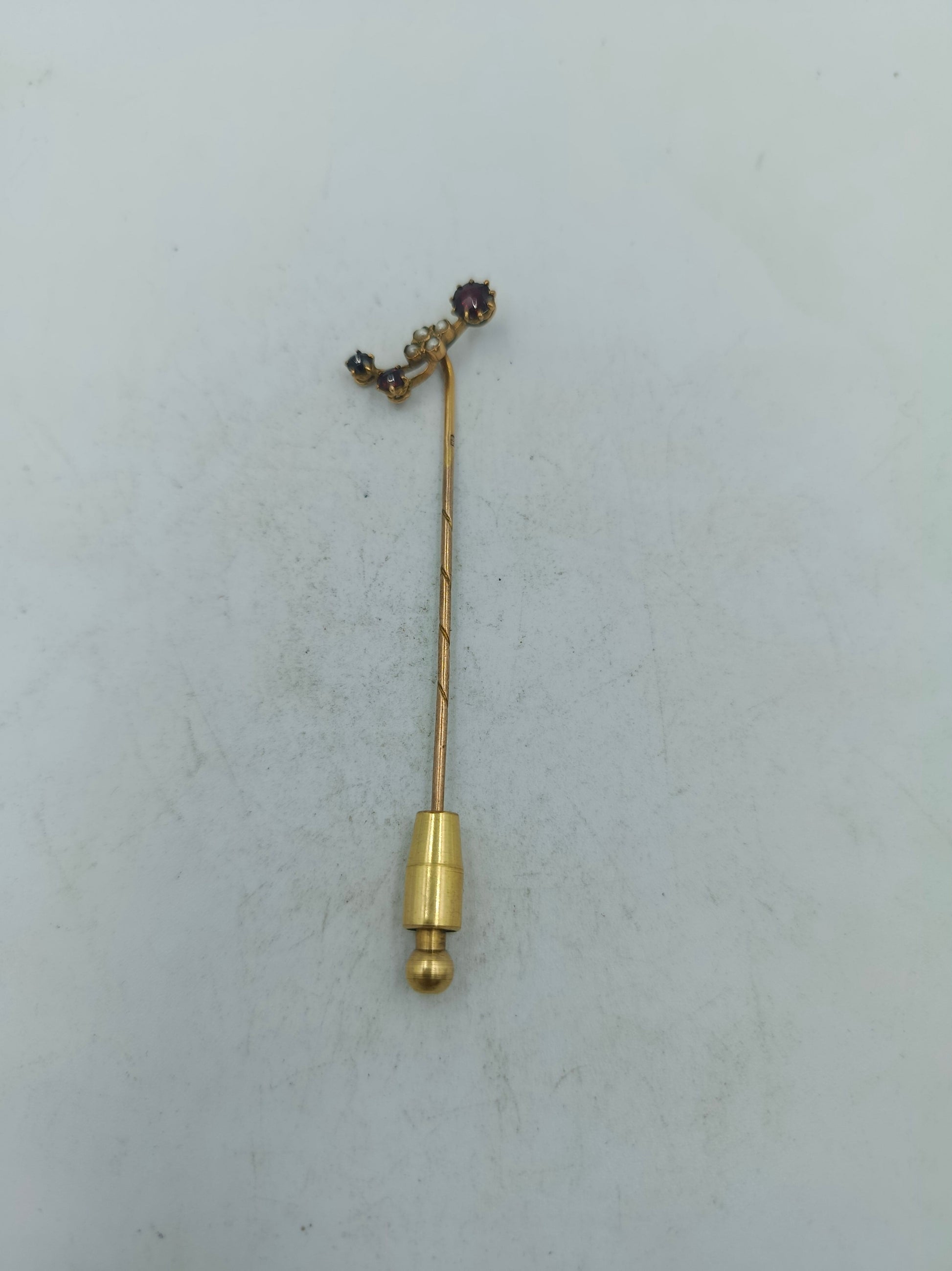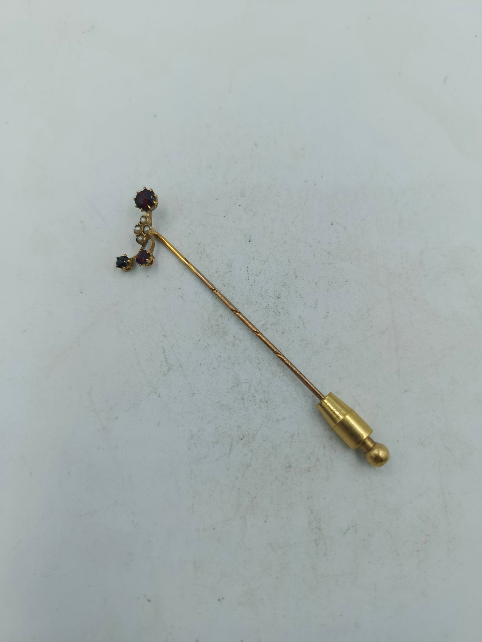 Diese filigrane Anstecknadel besticht durch ihr edles Design mit drei tief rot schimmernden Schmucksteinen die von kleinen hellen Perlen begleitet werden. Die schlanke goldfarbene Nadel verleiht dem Schmuckstück eine besonders elegante Linie und macht es ideal für Blazer Kleider oder feine Schals. Durch die klassische Form wirkt diese Anstecknadel zeitlos und sehr stilvoll.