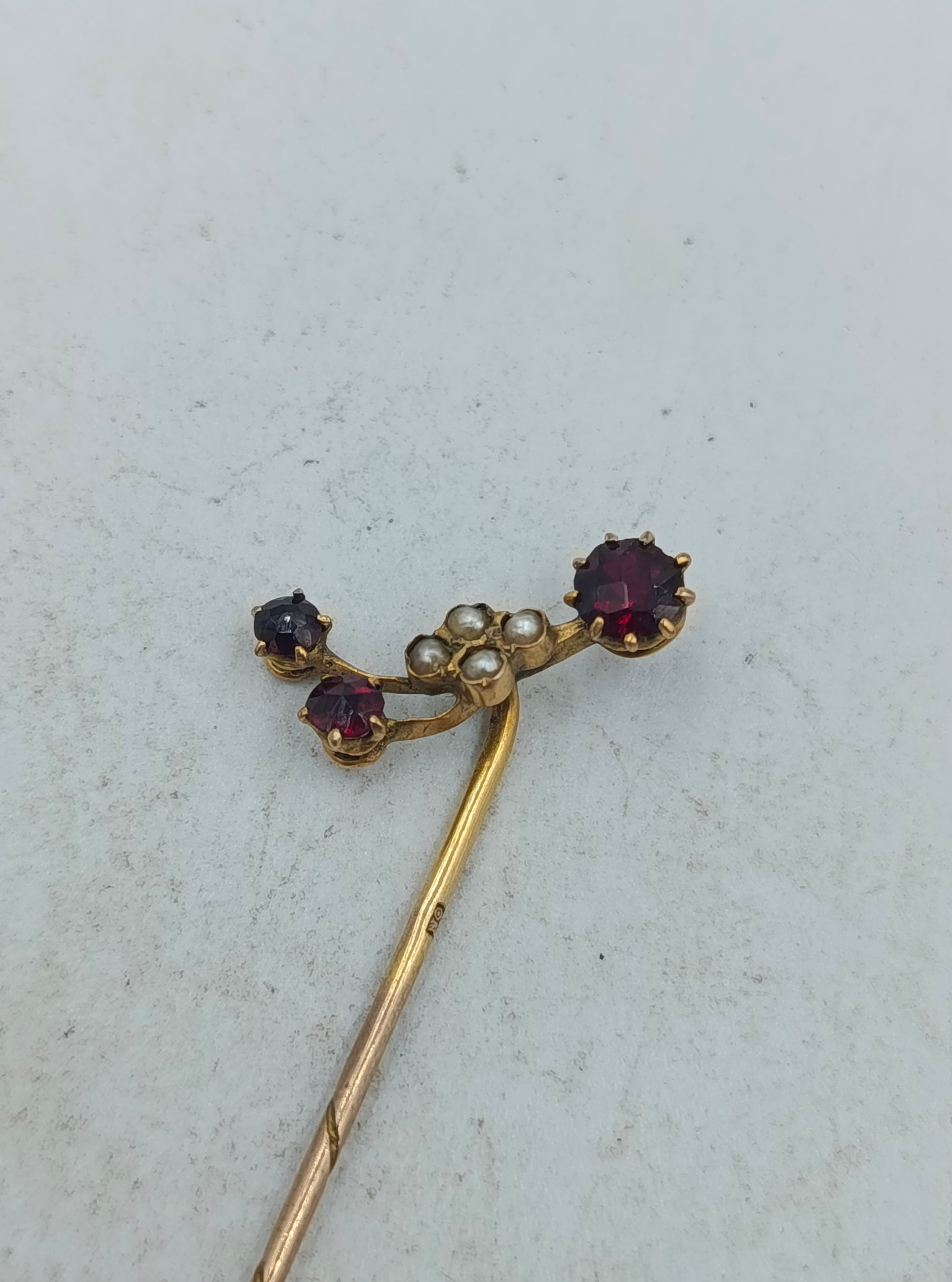 Elegante Anstecknadel mit rubinfarbenen Steinen und zarten Perlenakzenten