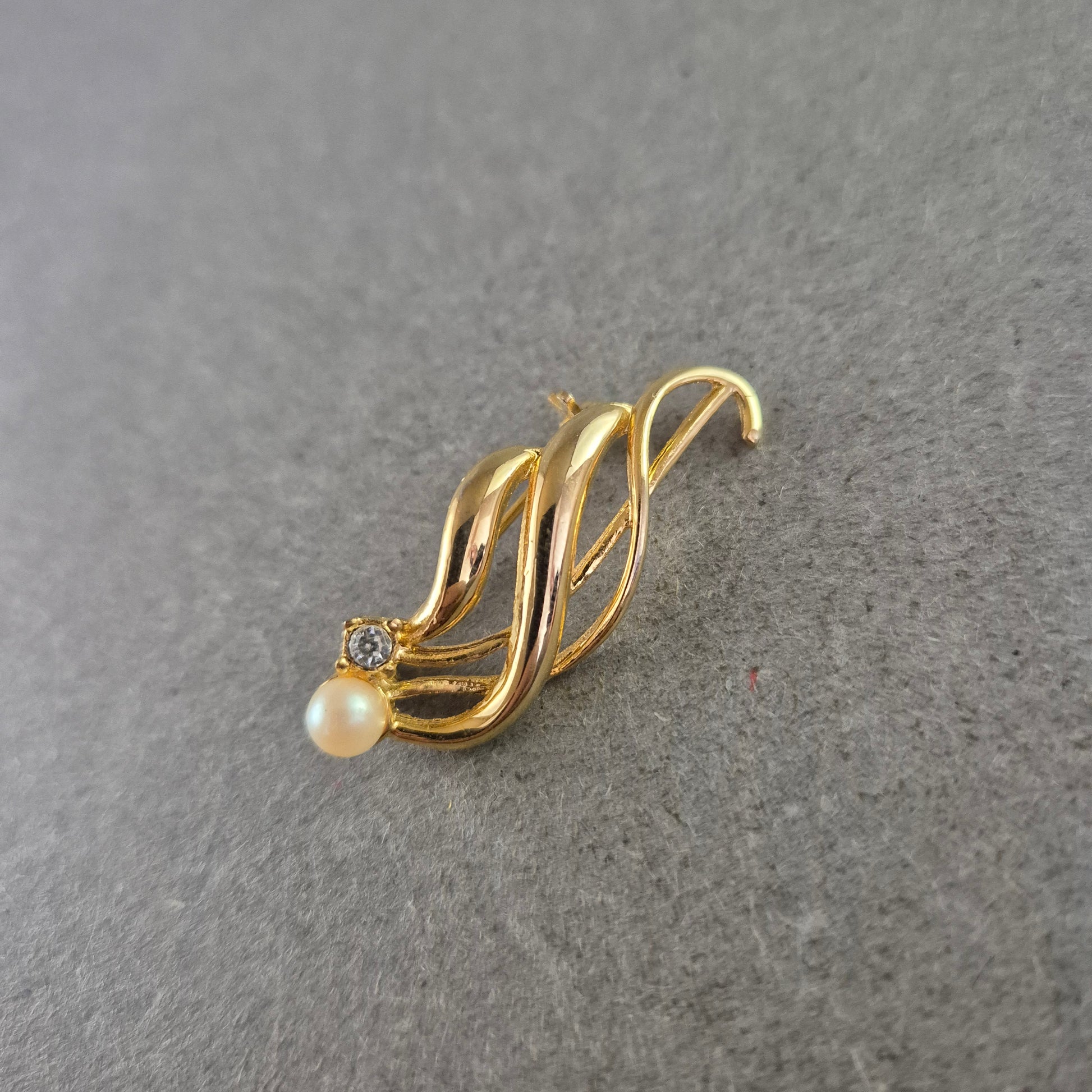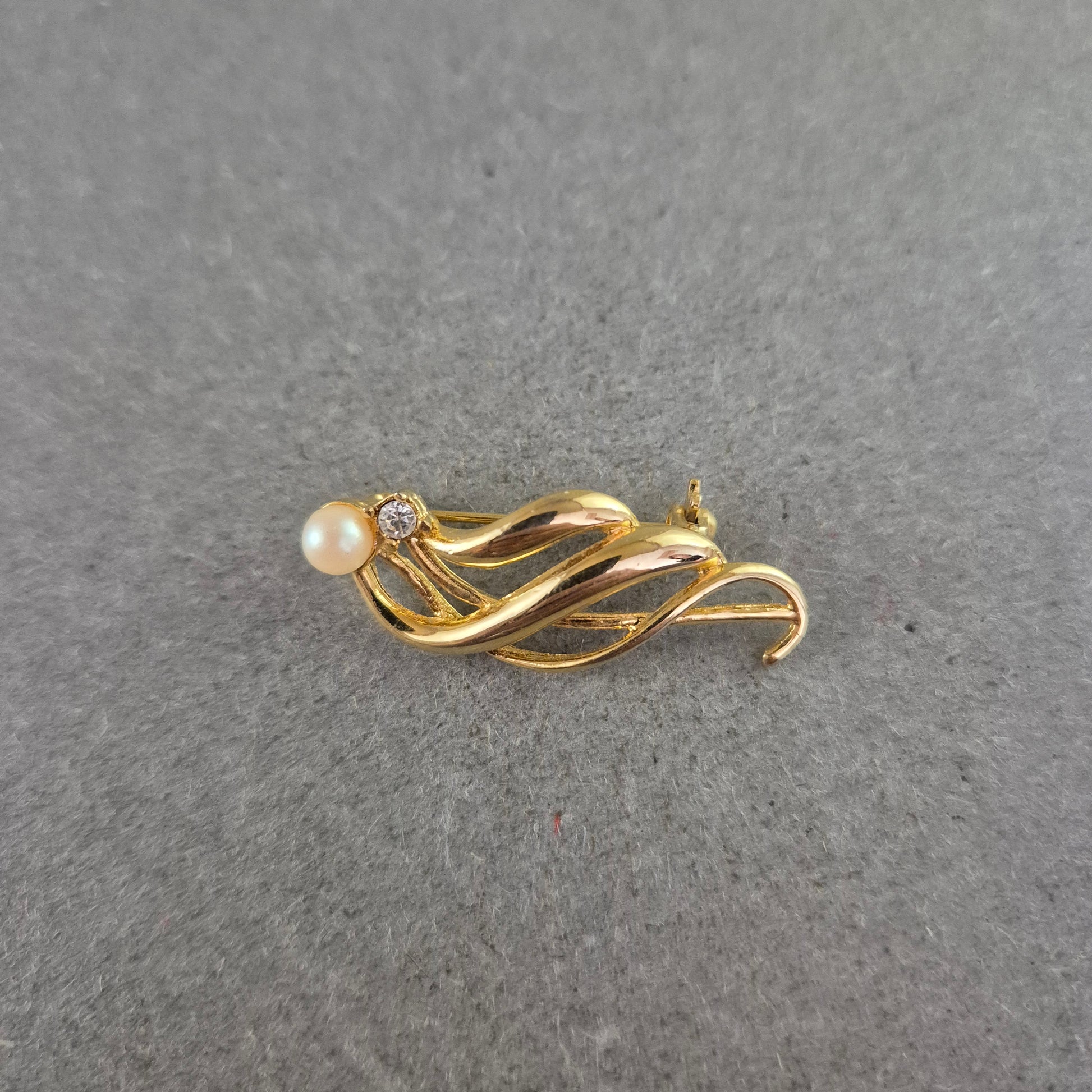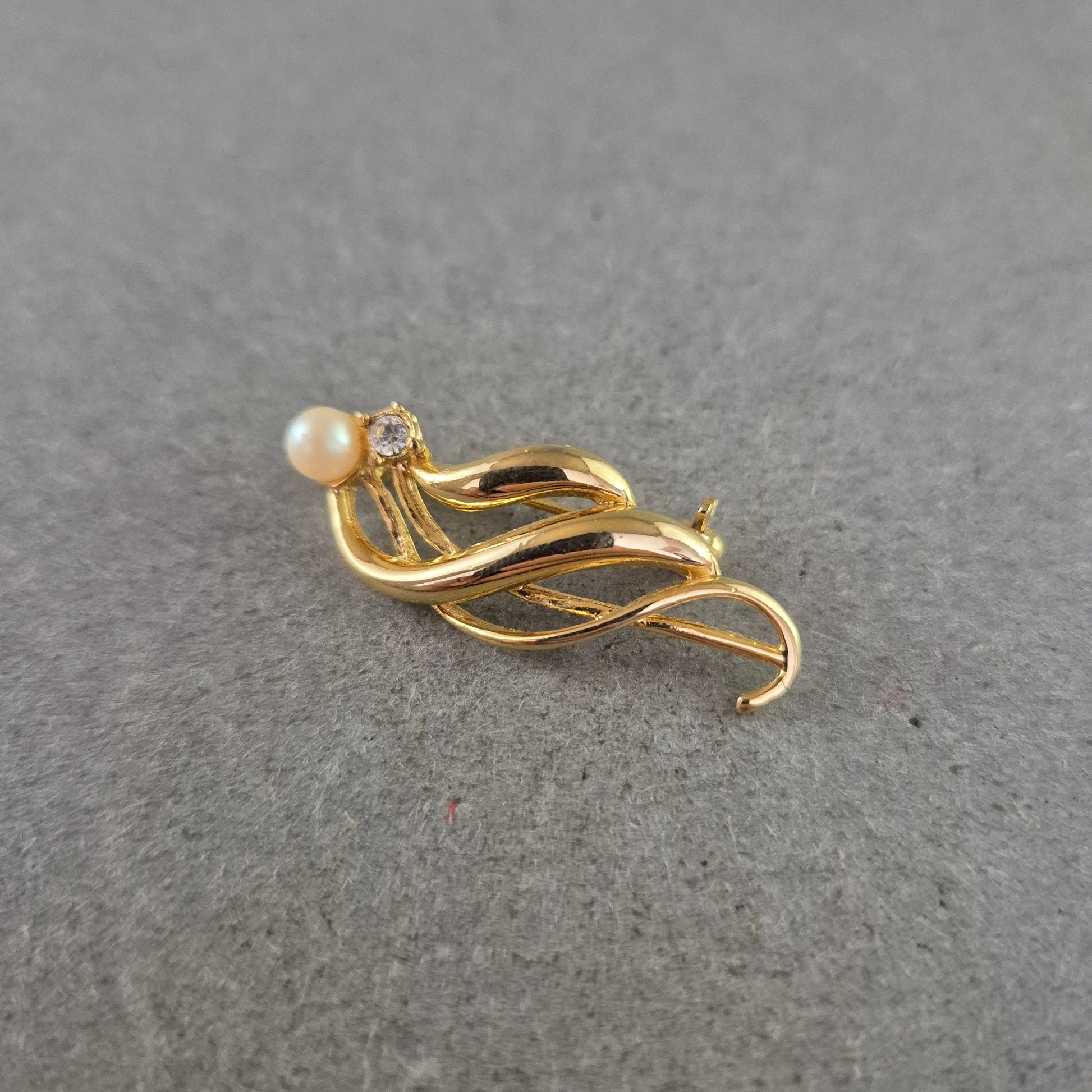 Elegante Brosche mit Perle und Strassstein – Zeitlos in Goldoptik
