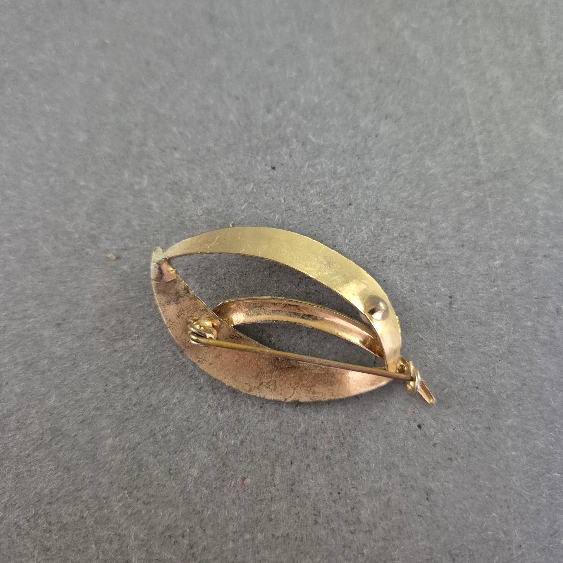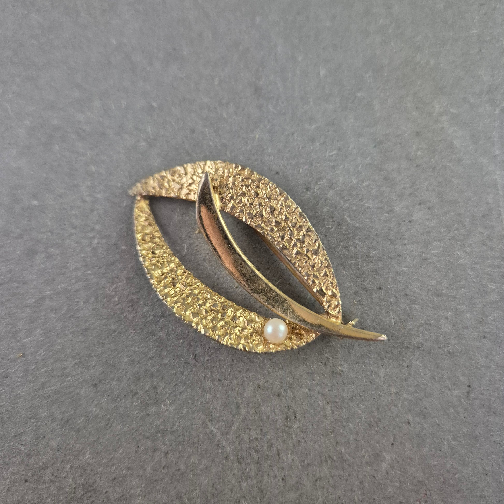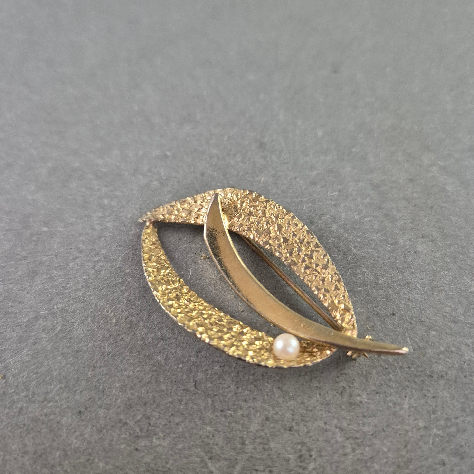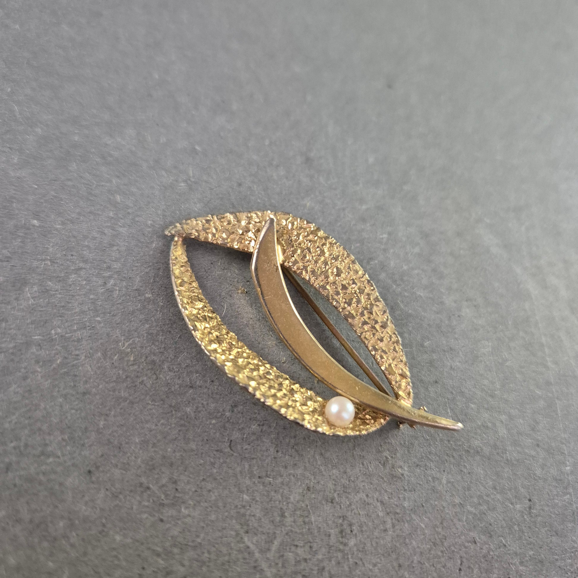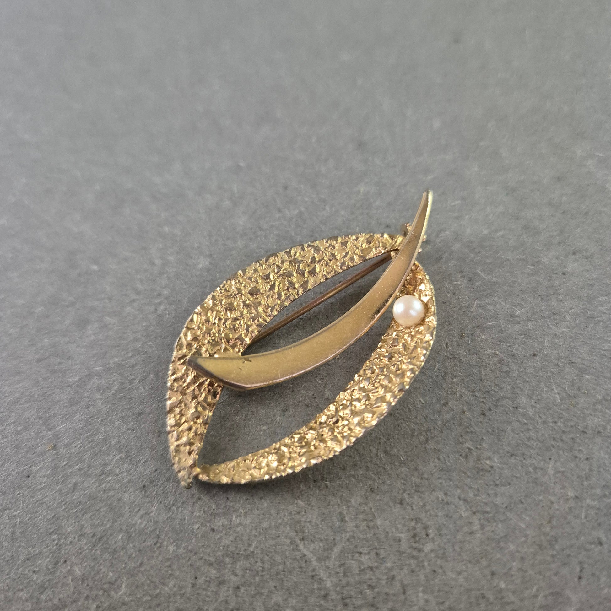 Elegante Brosche mit strukturierter Oberfläche & Zierperle – 60er Jahre Stil