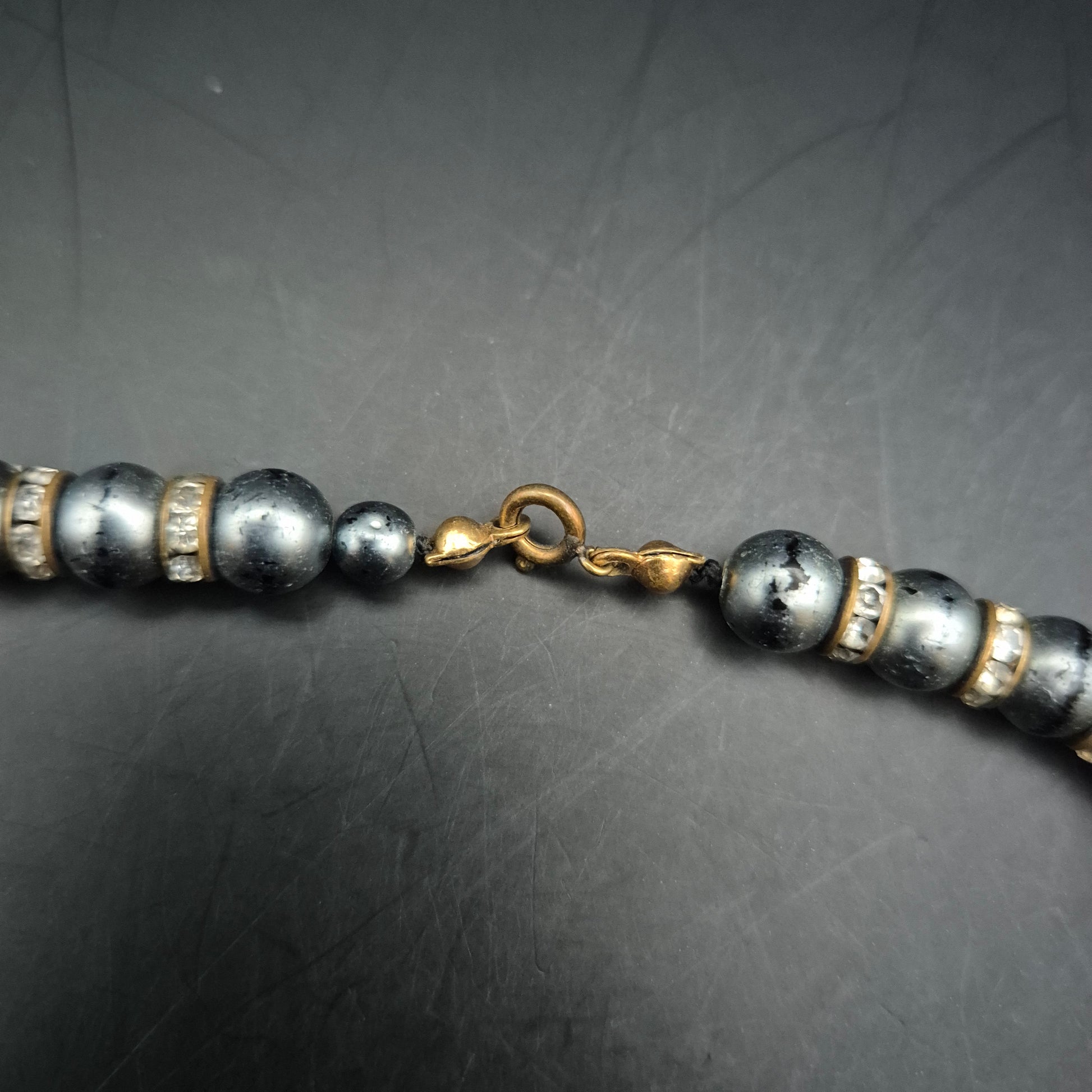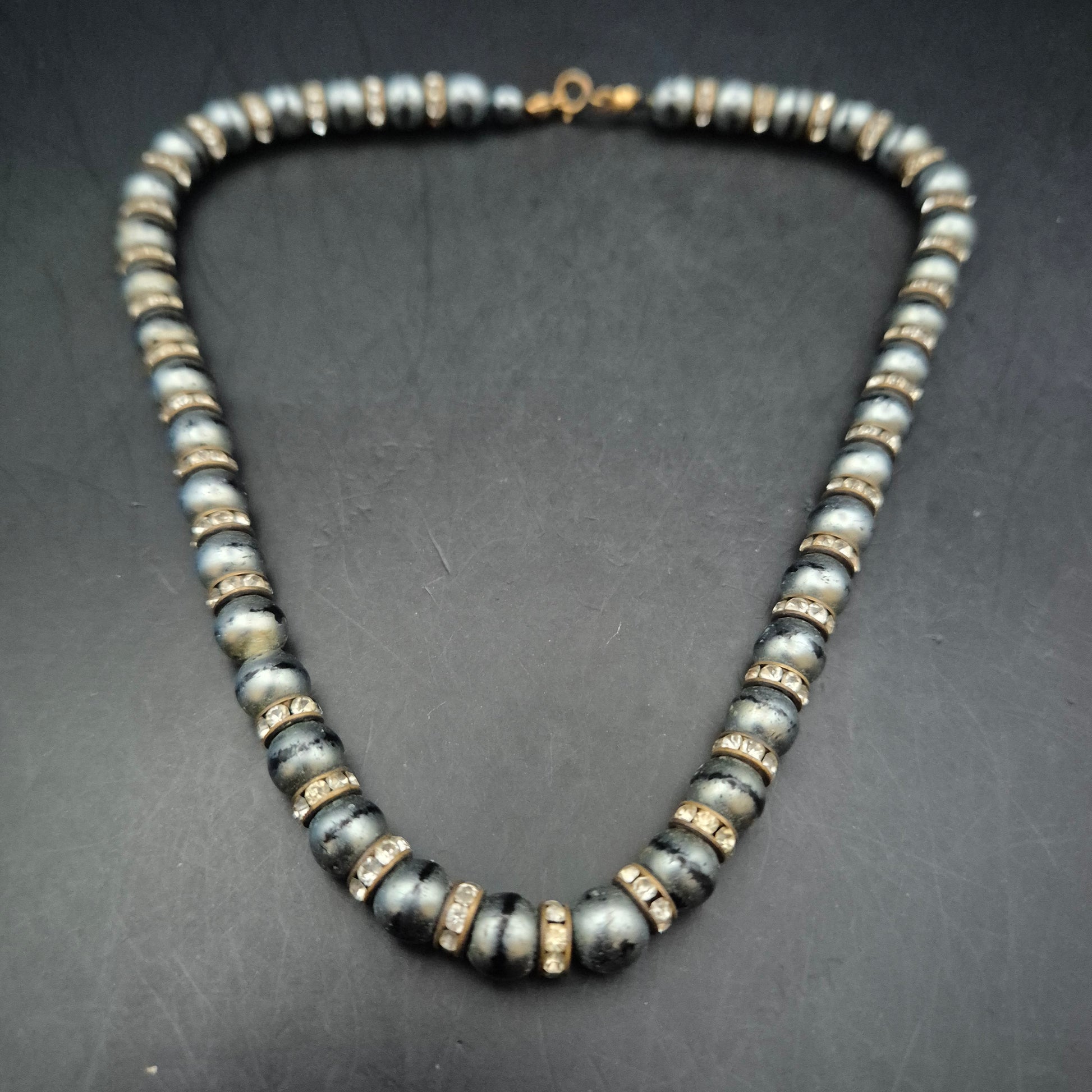 Elegante Damen Kette – Dunkle Perlen und funkelnde Strass-Ringe