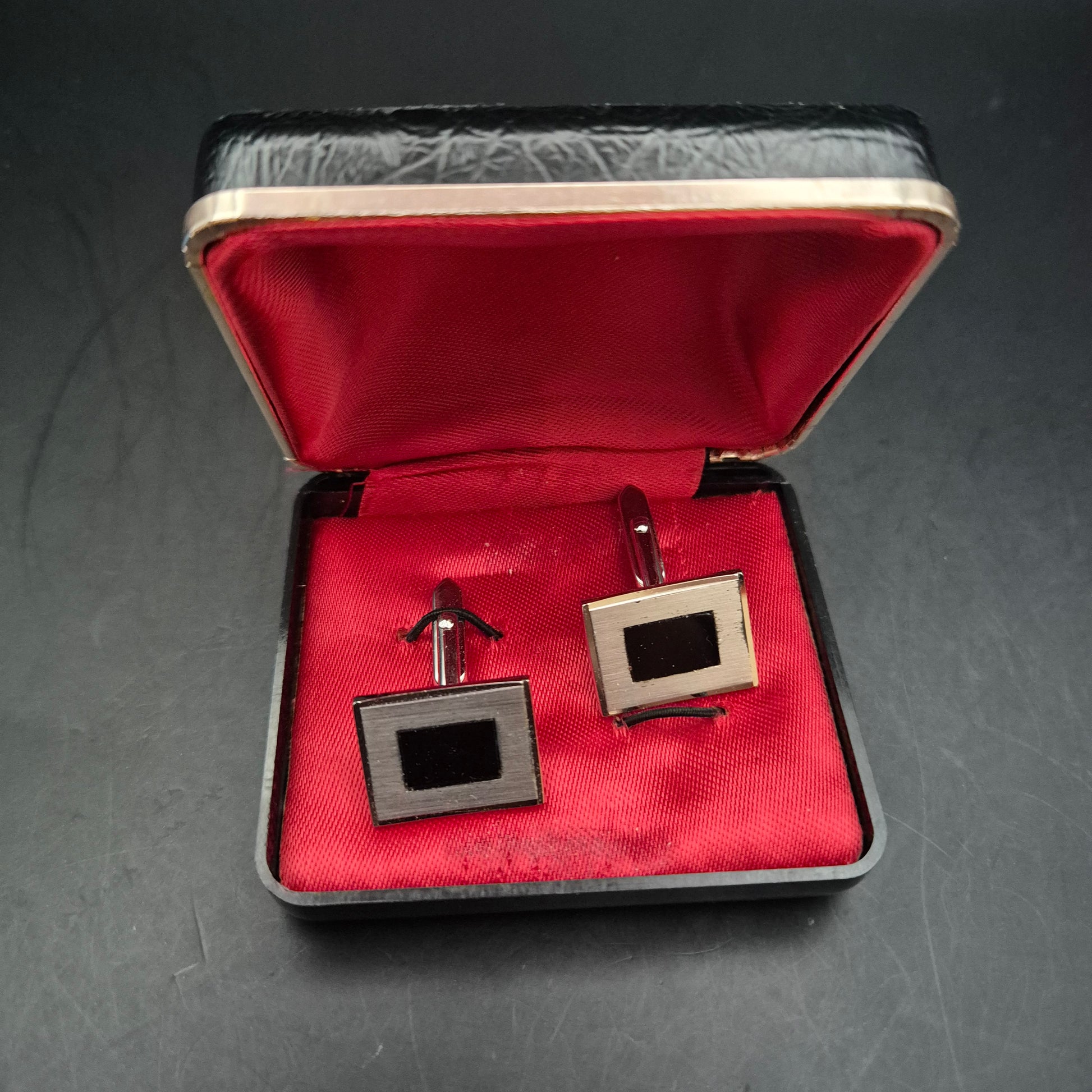 Elegante Herren Manschettenknöpfe – Rechteckig mit schwarzem Inlay