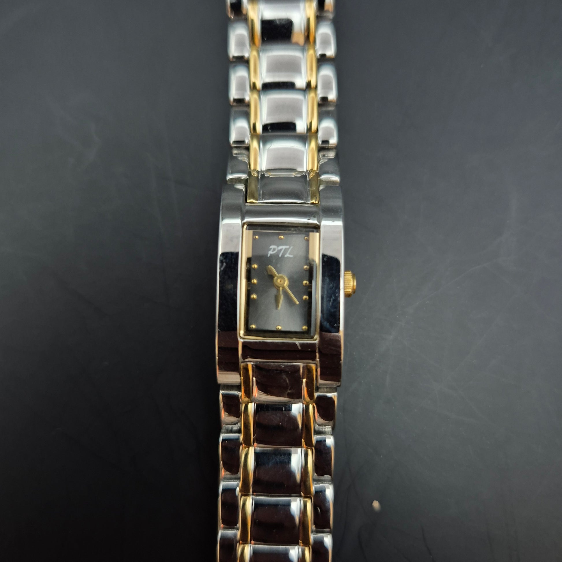 Elegante PTL Damen Uhr – Edelstahlarmband Bicolor mit Rechteckgehäuse
