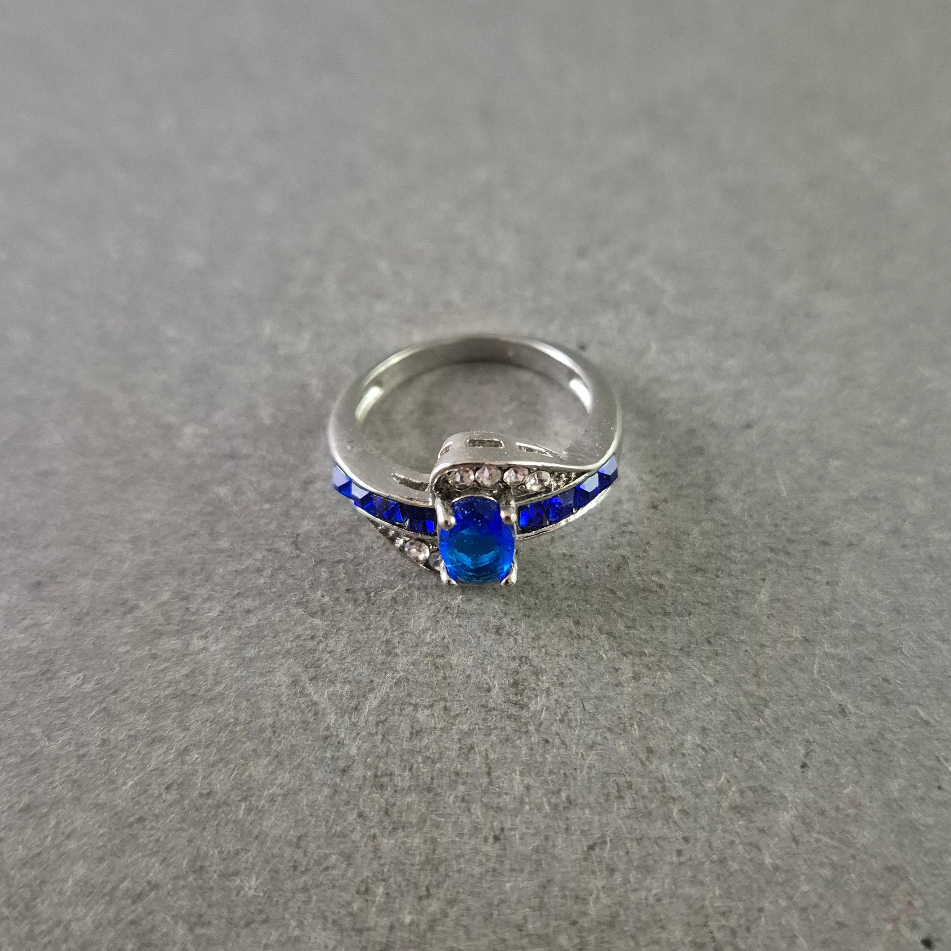 Eleganter Silberring mit blauem Stein und Kristallakzenten