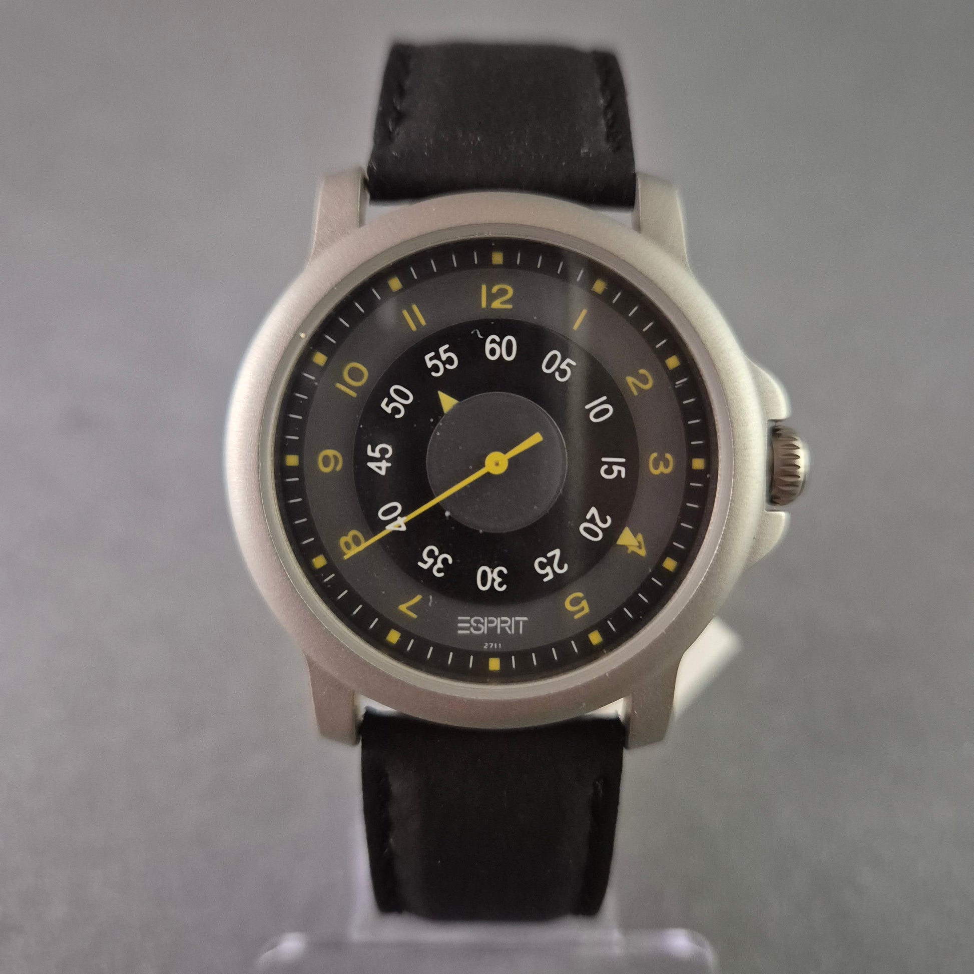 Diese Esprit Herrenarmbanduhr besticht durch ihr außergewöhnliches, sportliches Design mit kreisförmiger Minuterie und gelben Akzenten. Das matte Edelstahlgehäuse kombiniert mit einem schwarzen Lederarmband sorgt für einen markanten Look. Eine perfekte Uhr für Liebhaber von modernen und stilvollen Zeitmessern.