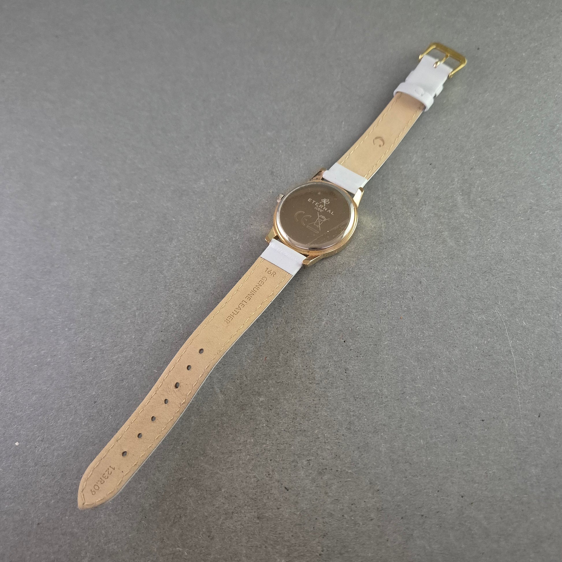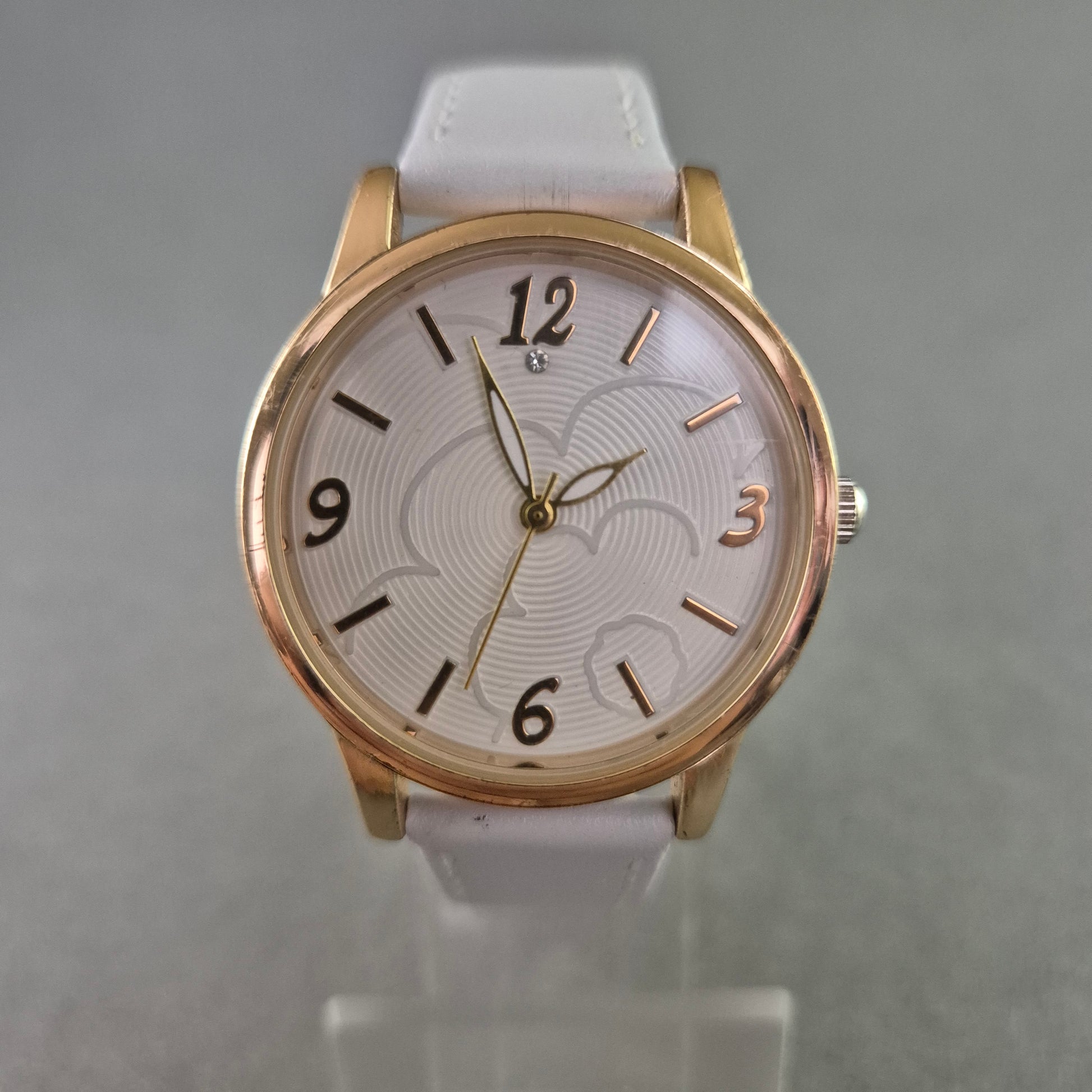 Die Damenarmbanduhr von Eternal Love besticht durch ihr stilvolles Zifferblatt mit floralem Muster und klaren Ziffern. Ein kleines Ziersteinchen bei 12 Uhr sorgt für einen dezenten Glanz. Das weiße Armband in Lederoptik verleiht der Uhr eine frische Ausstrahlung. Diese Quarzuhr eignet sich hervorragend für den Alltag oder als Geschenk mit romantischem Touch.