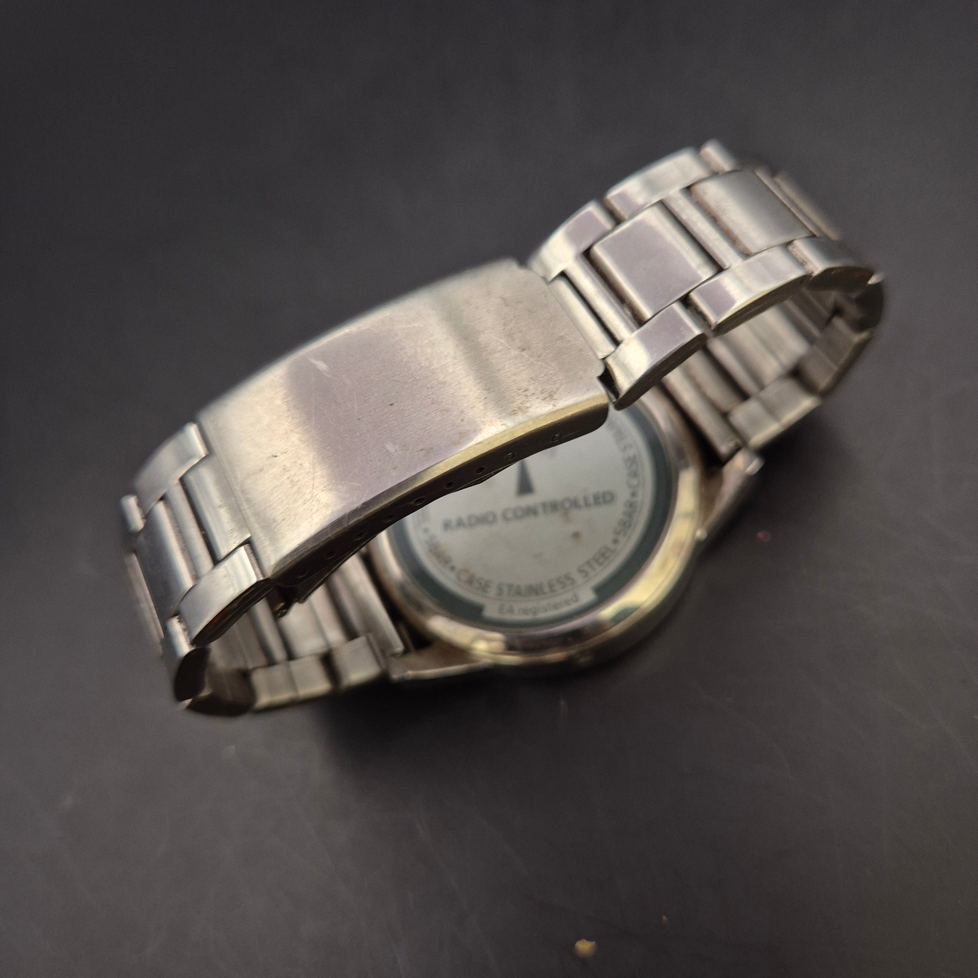 Diese Uhr ist ein WM-2006 Sondermodell von Eurochron mit dem Schriftzug „Halbzeit 2006” auf dem Zifferblatt. Sie kombiniert nostalgischen Sammlercharme mit einfacher, robuster Technik: Quarzwerk, analoges Zifferblatt mit Fußballmotiv, Minutenmarkierungen außen. Gehäuse und Band sind aus Edelstahl, Rückseite ebenfalls Edelstahl mit Gravuren. Gebrauchsspuren sind vorhanden, besonders am Gehäuse & Armband.