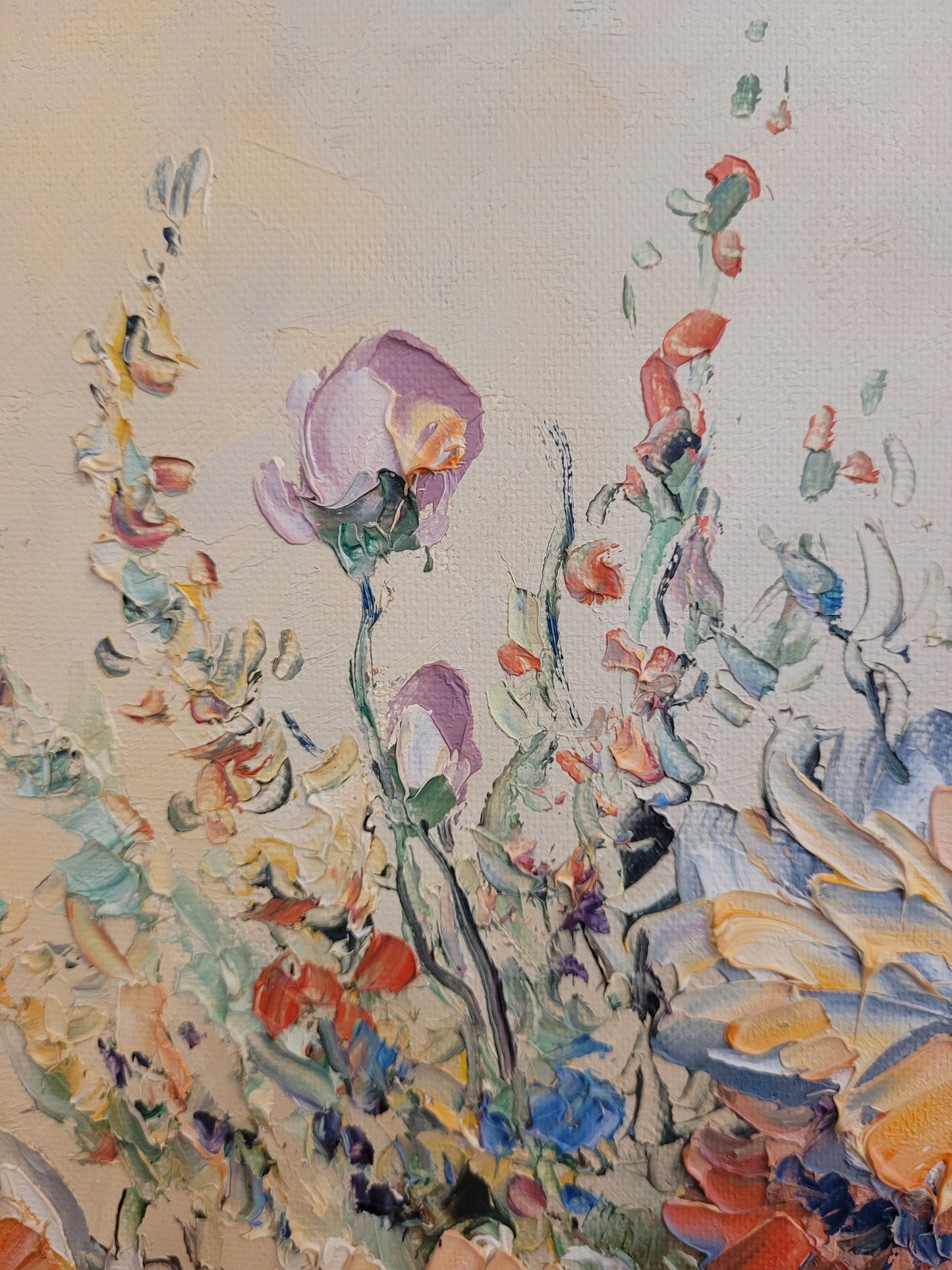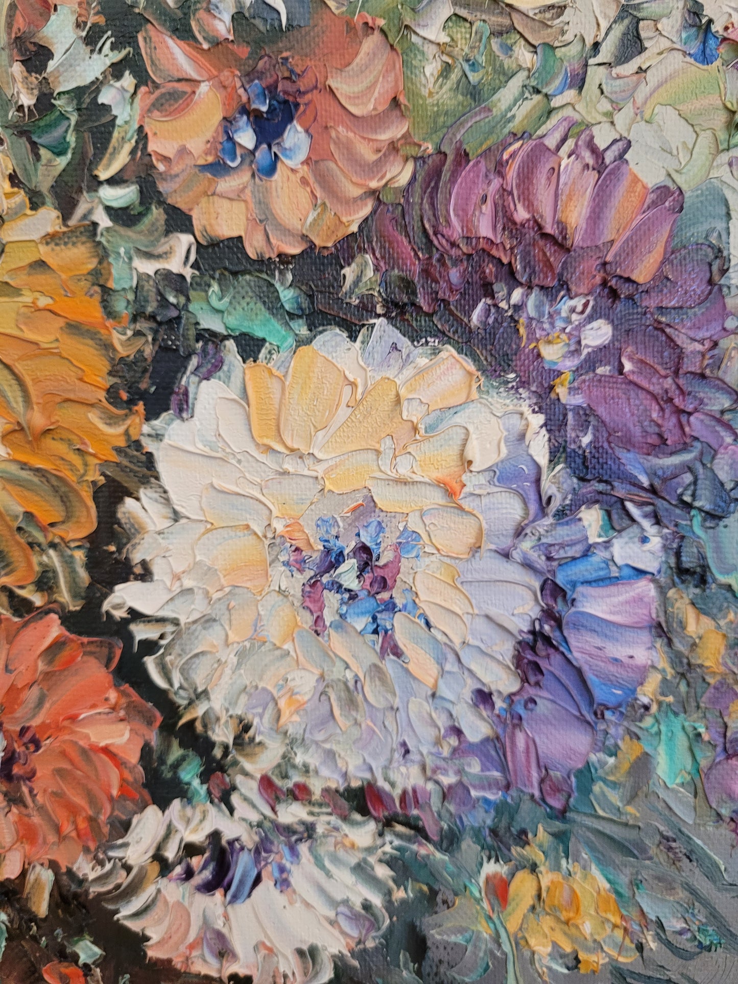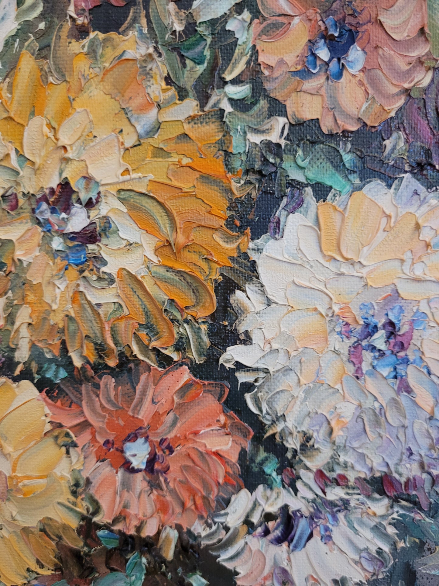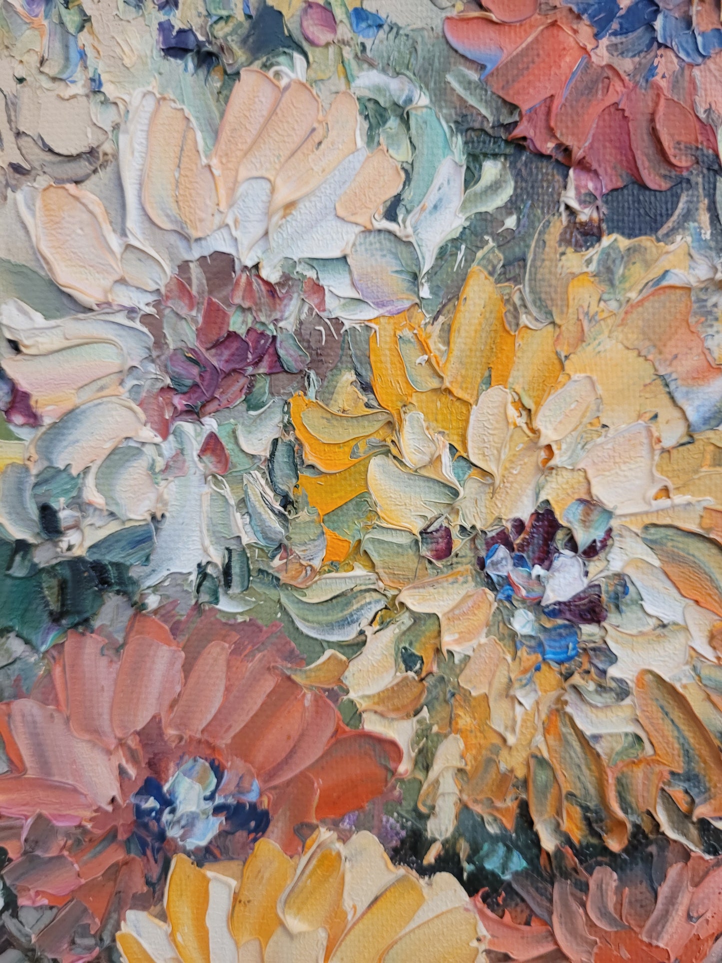 Die kraftvollen Farben und die geschickte Pinselarbeit machen dieses Gemälde zu einem ausdrucksstarken Kunstwerk. Es ist eine wunderbare Ergänzung für jeden Kunstliebhaber, der die Schönheit und Energie von Blumenstillleben schätzt.