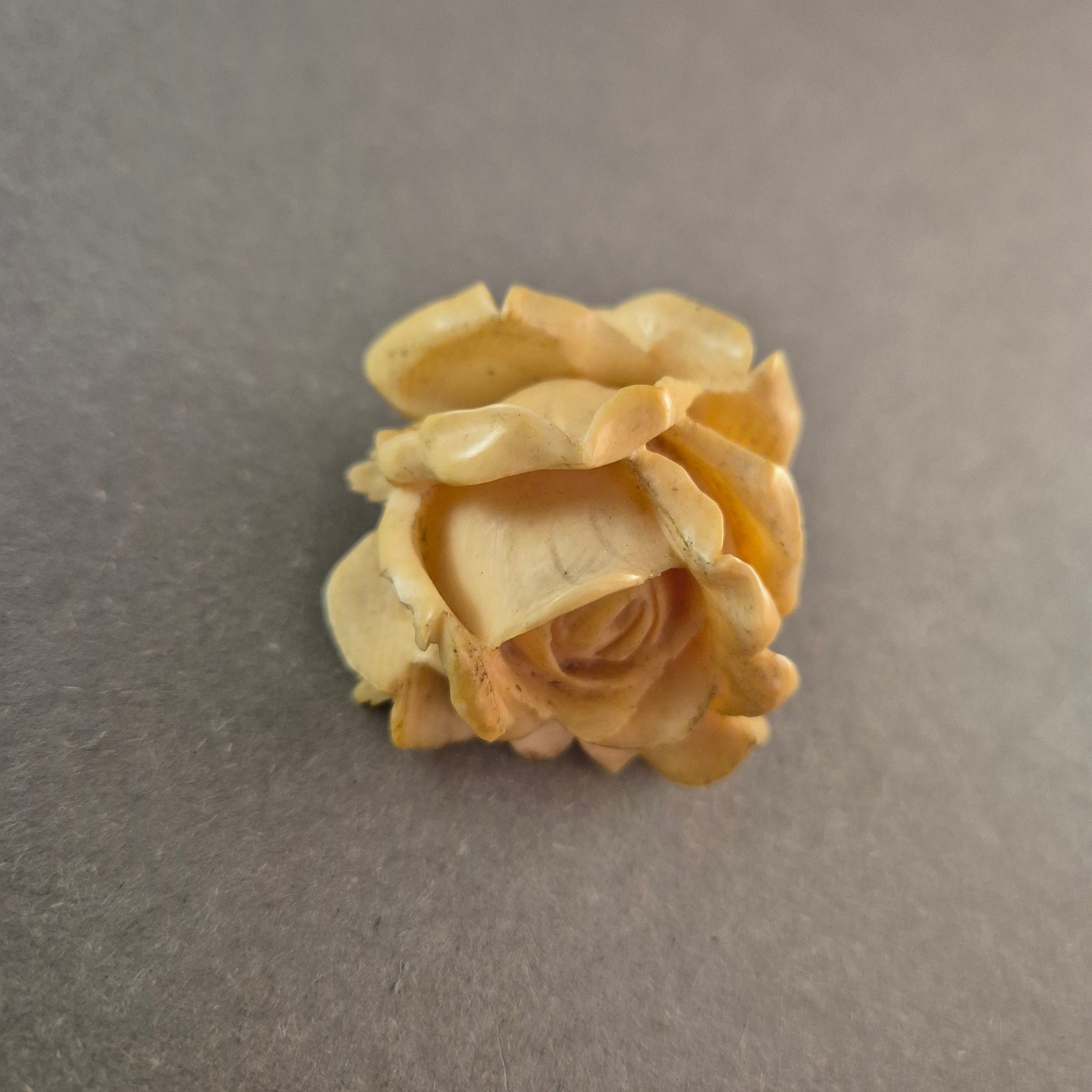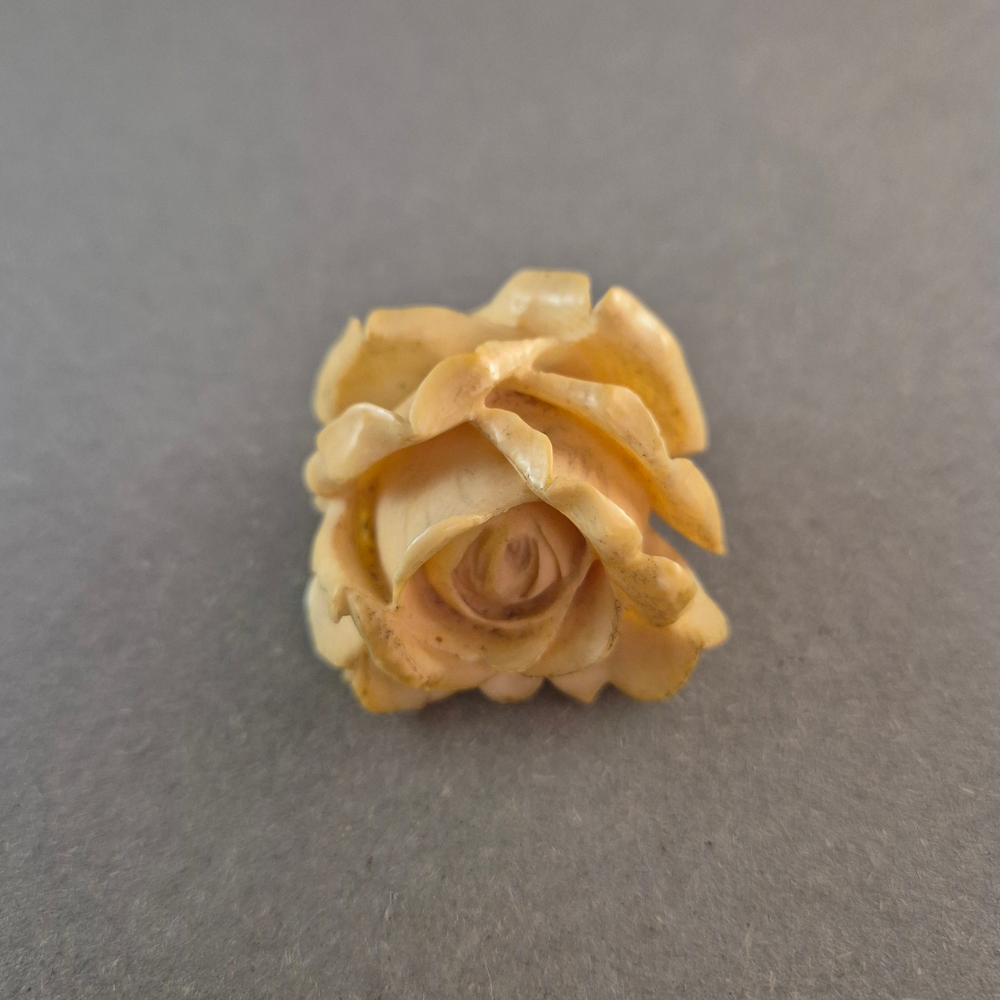 Fein geschnitzte Vintage-Rosenbrosche – Blumenmotiv aus Bein oder Zelluloid