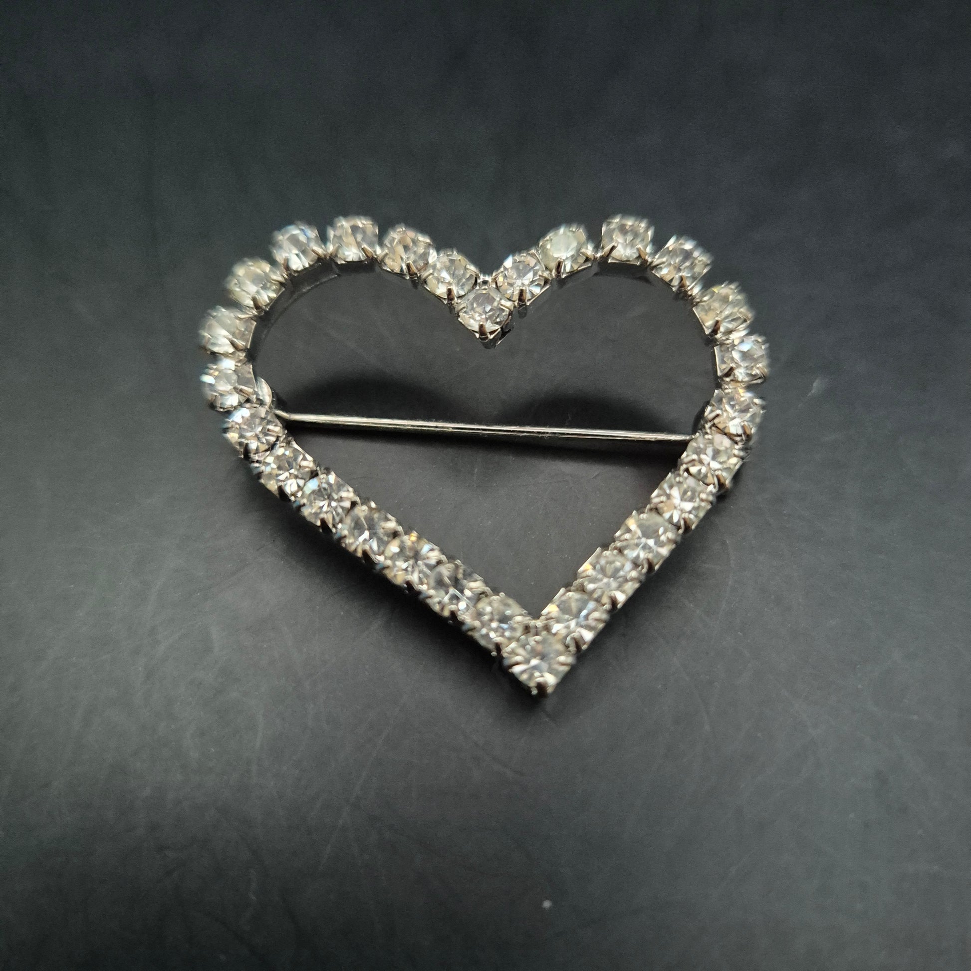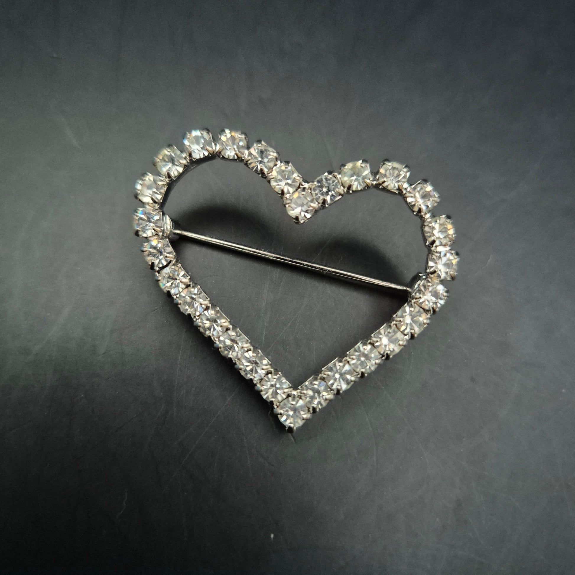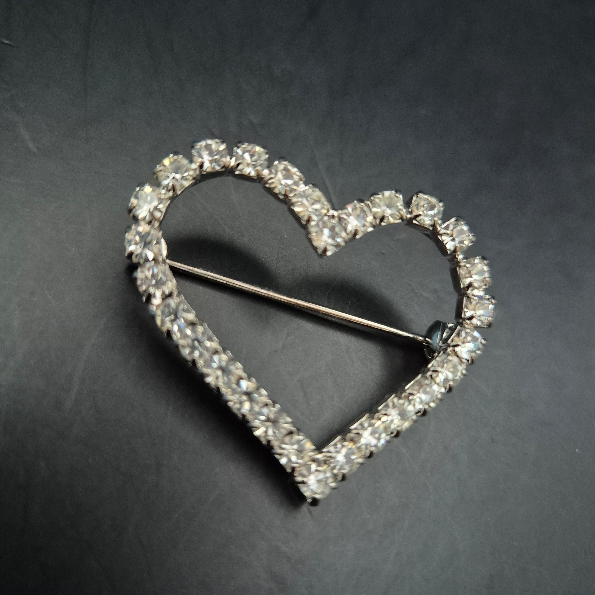 Diese romantische Damen-Brosche präsentiert sich in einer klassischen, offenen Herzform. Der gesamte Rahmen des Herzens ist dicht mit funkelnden, klaren Strasssteinen besetzt, die bei Lichteinfall wunderschön glitzern. Die silberfarbene Metallbasis unterstreicht den brillanten Effekt der Steine. Diese Brosche ist ein zeitloses Accessoire, das perfekt geeignet ist, um Blusen, Schals oder Jackett-Revers eine liebevolle und glamouröse Note zu verleihen. Sie wird mit einer einfachen Anstecknadel auf der Rückseite gesichert. Details: