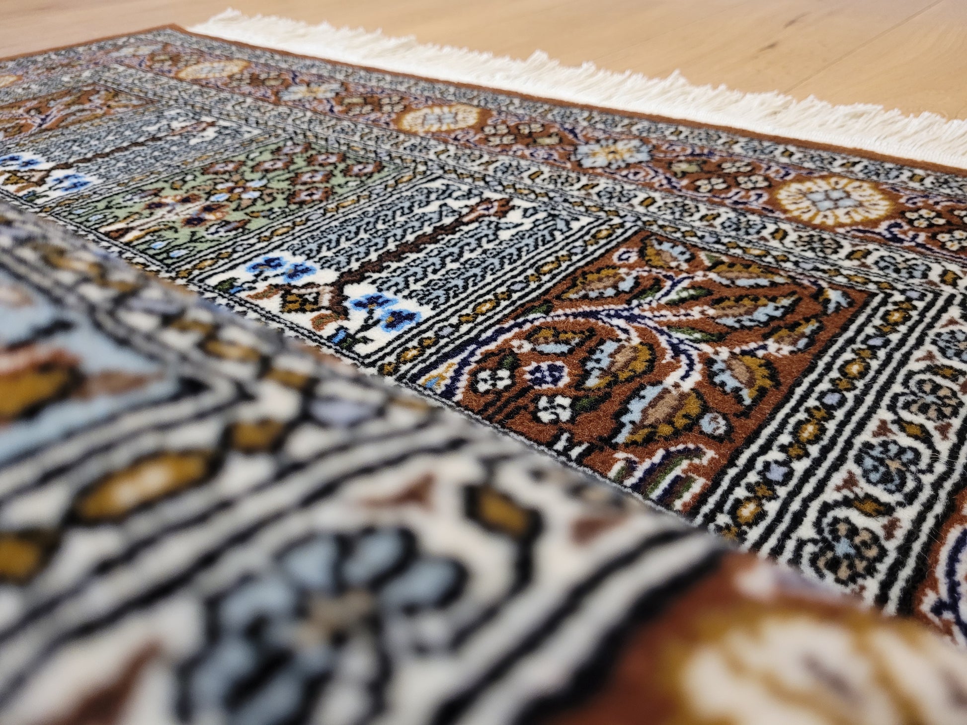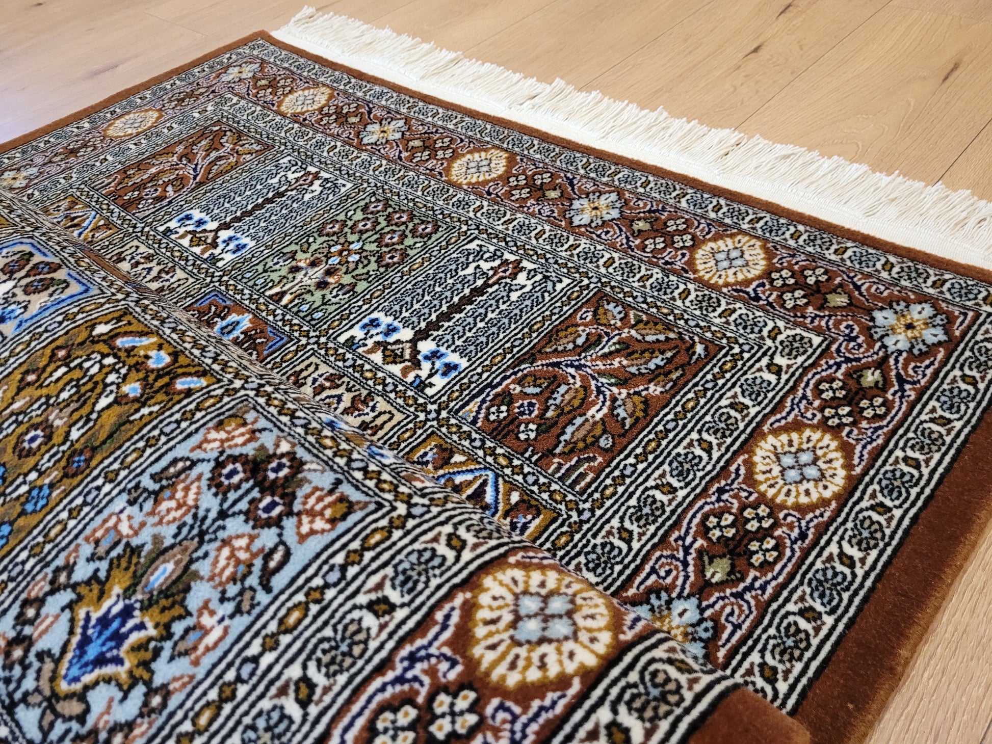 Ghom Teppich Korkwolle Gartenmotiv feine Knüpfkunst