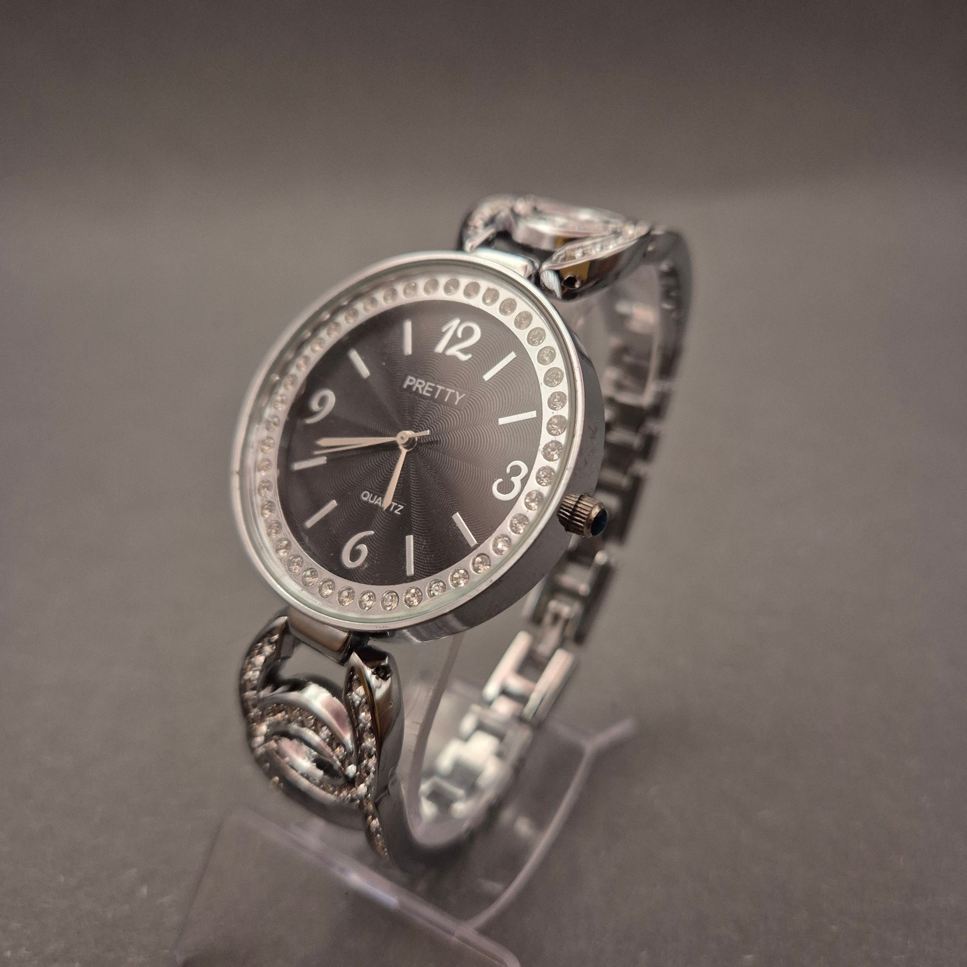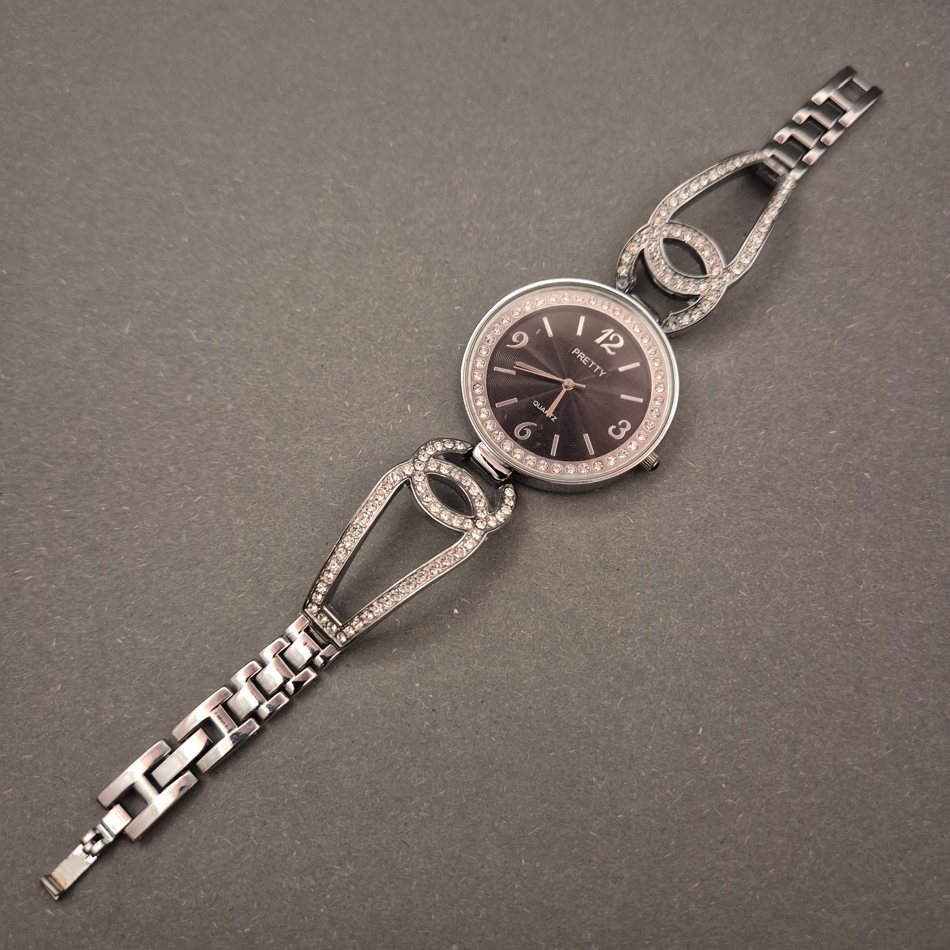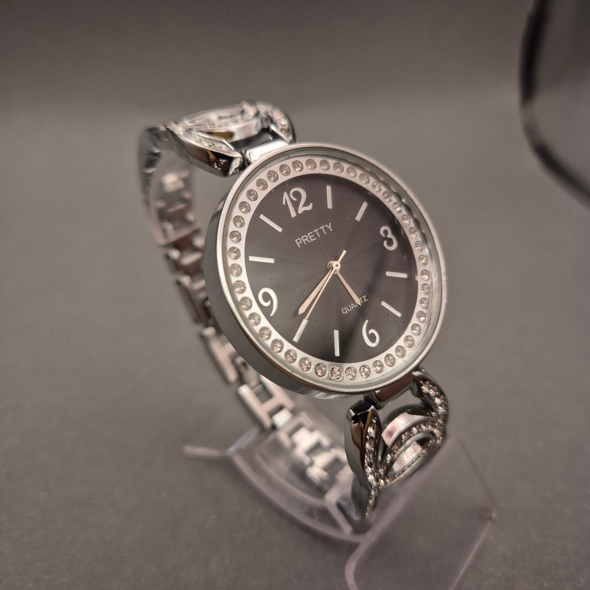 Glamouröse PRETTY Damen Uhr – Schwarzes Zifferblatt & Steinarmband