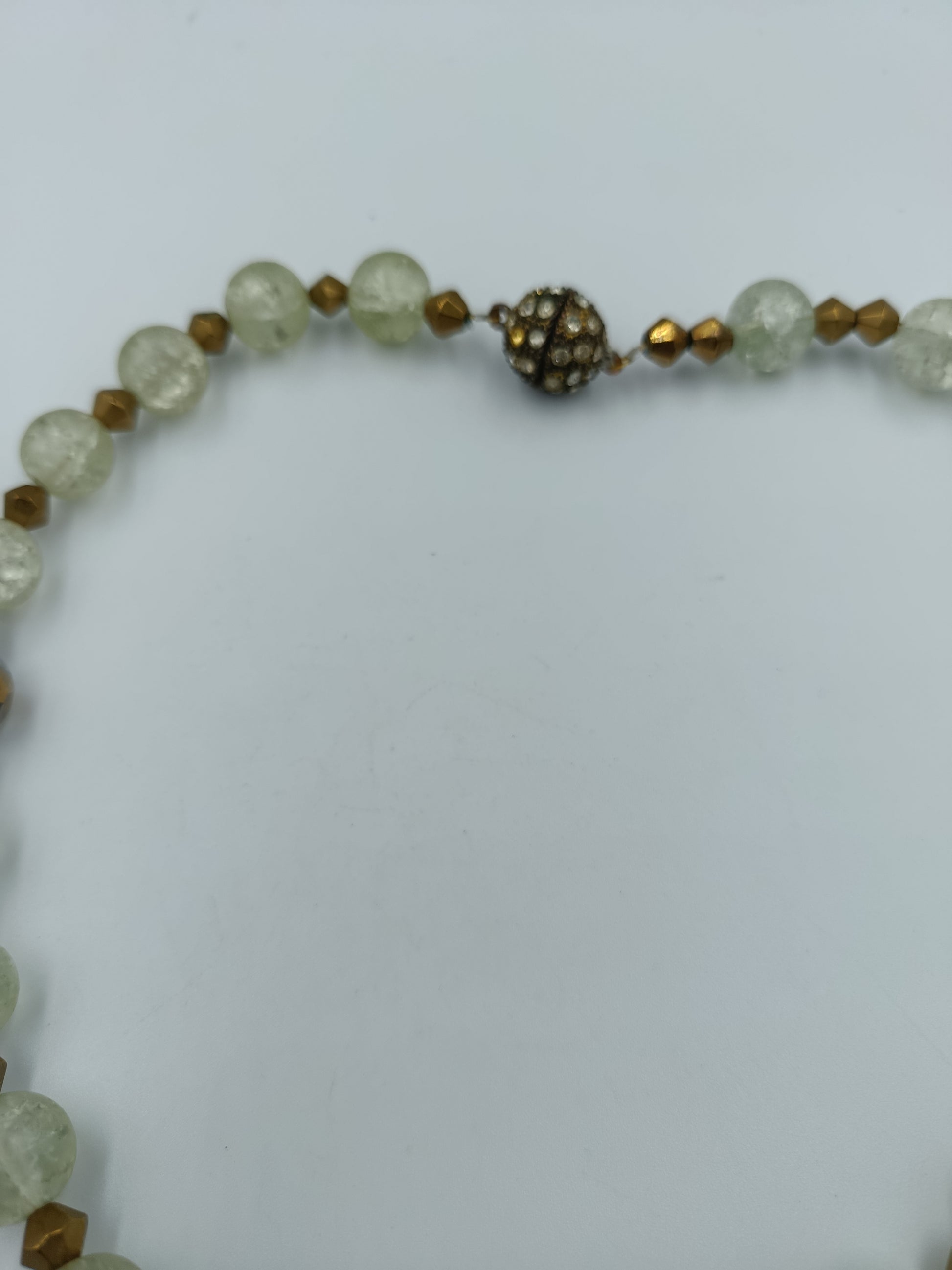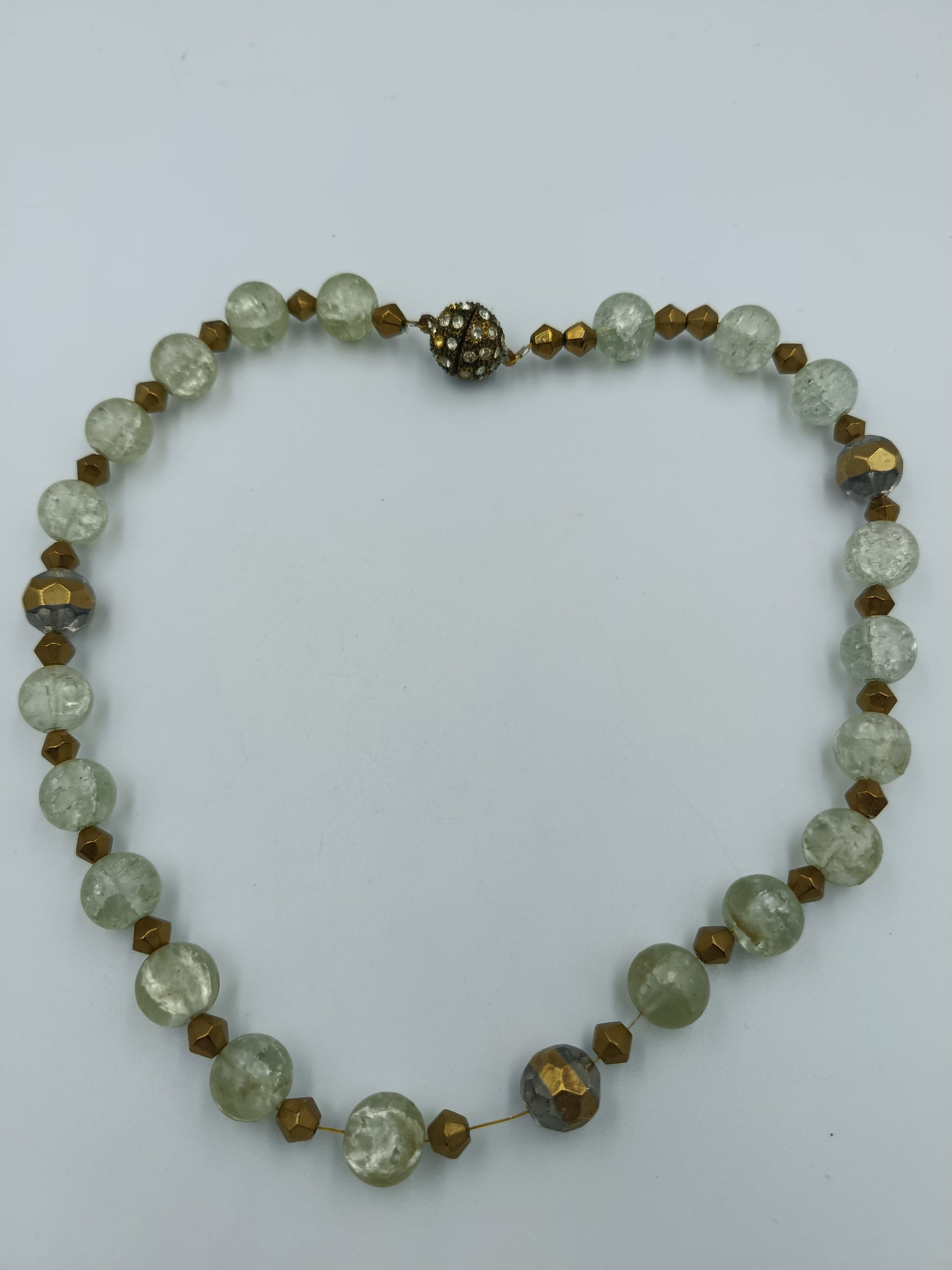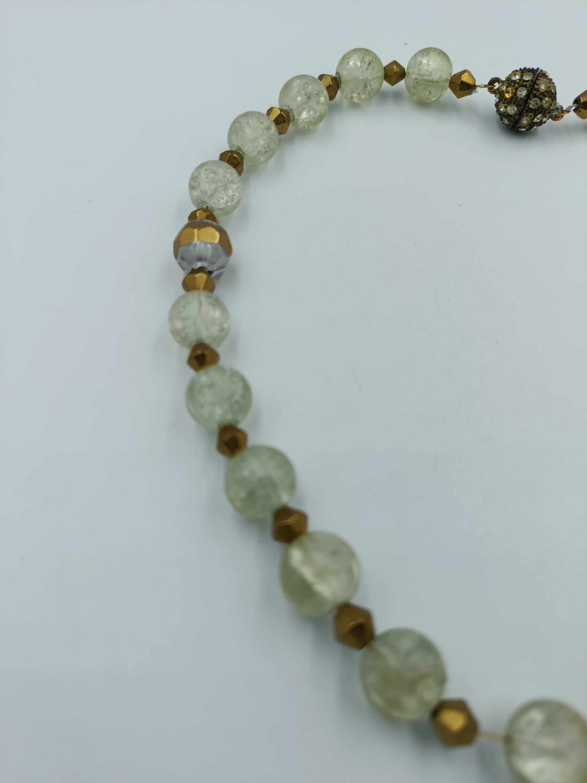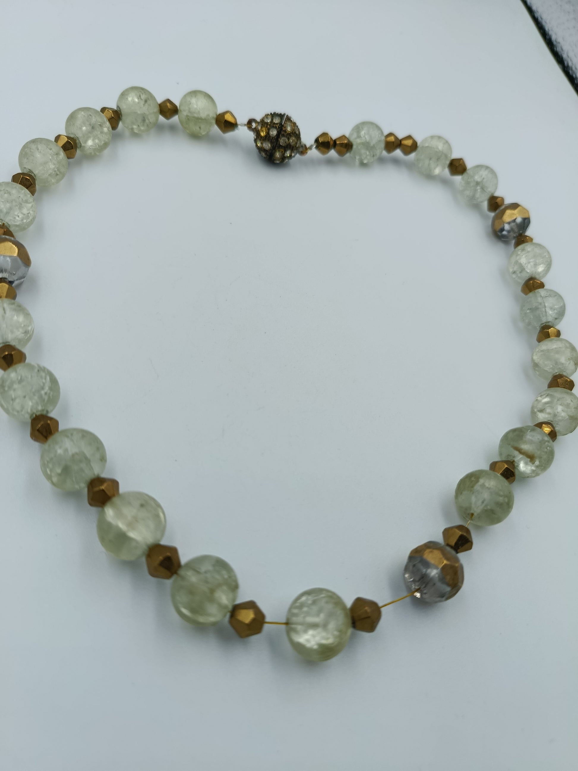 Glasperlenkette in Grün-Gold mit Strassverschluss