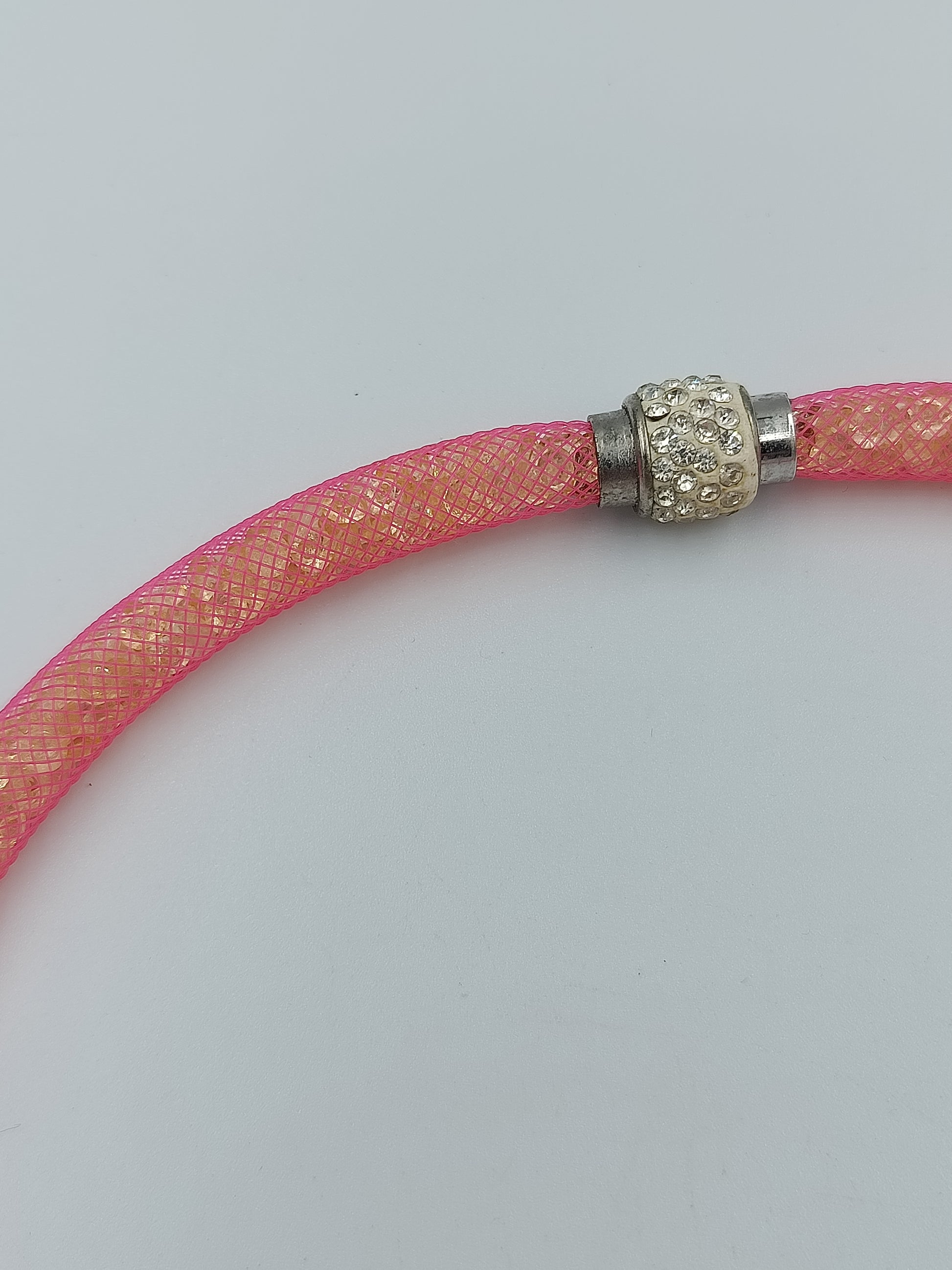 Glitzernde Mesh-Halskette in Pink mit Strass-Magnetverschluss