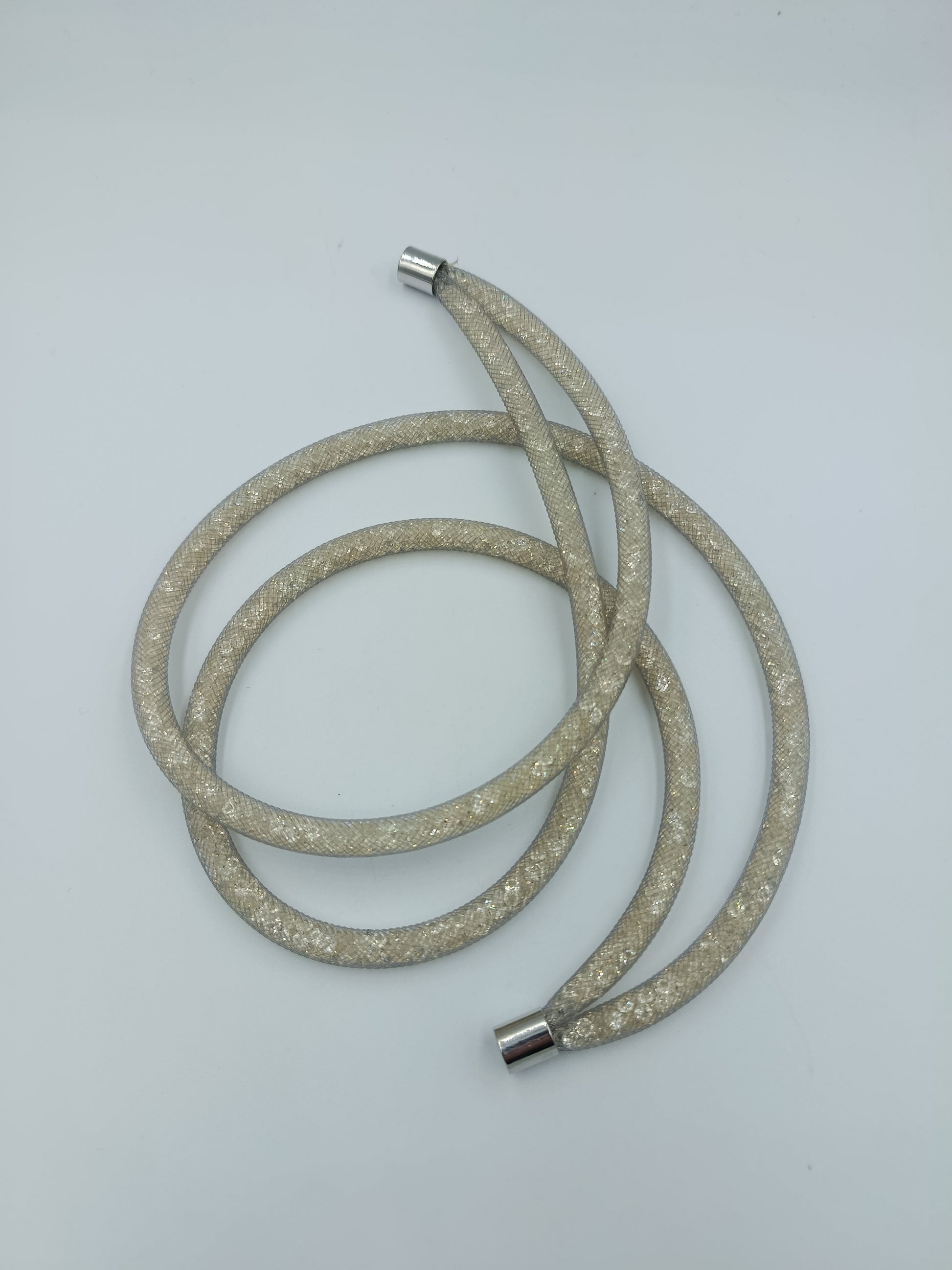 Elegante Mesh-Kette in dezentem Champagnergold. Das feine Netzgewebe ist mit glitzernden Partikeln gefüllt, was der Kette einen schimmernden Effekt verleiht. Dank des praktischen Magnetverschlusses ist sie besonders leicht anzulegen und ideal für den Alltag wie auch festliche Anlässe.
