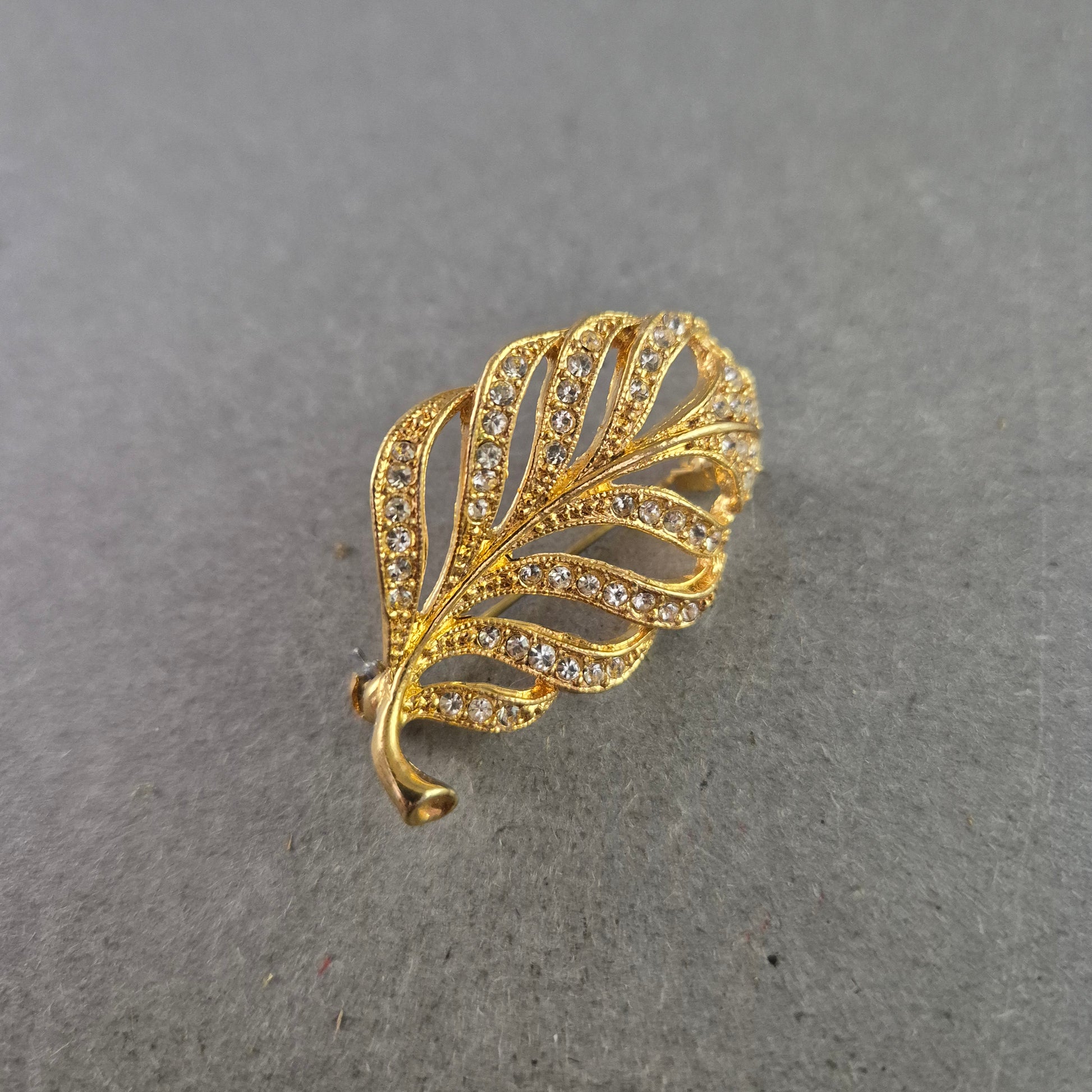 Goldene Vintage-Brosche in Blattform – Funkelnde Eleganz im Retro-Stil