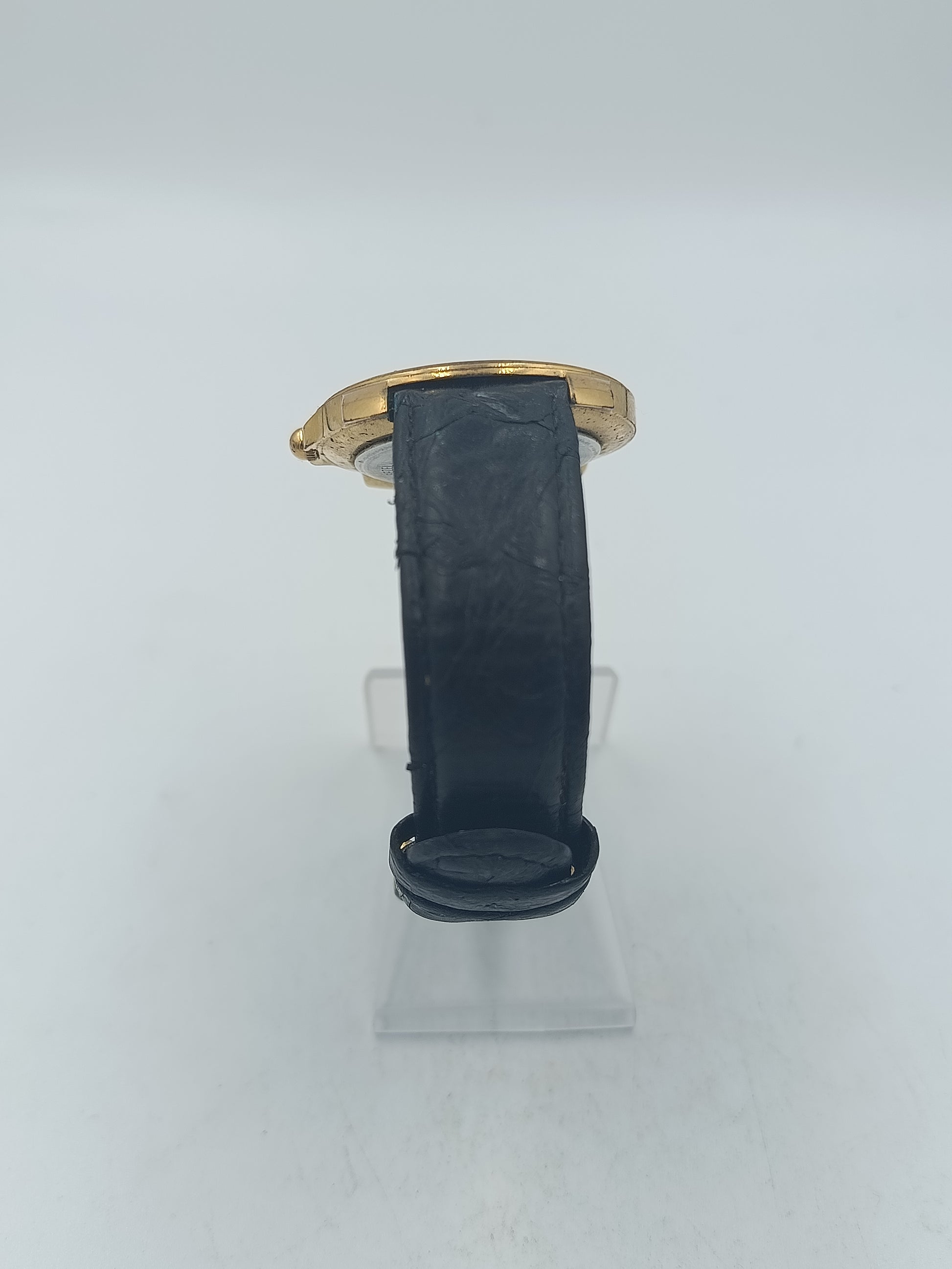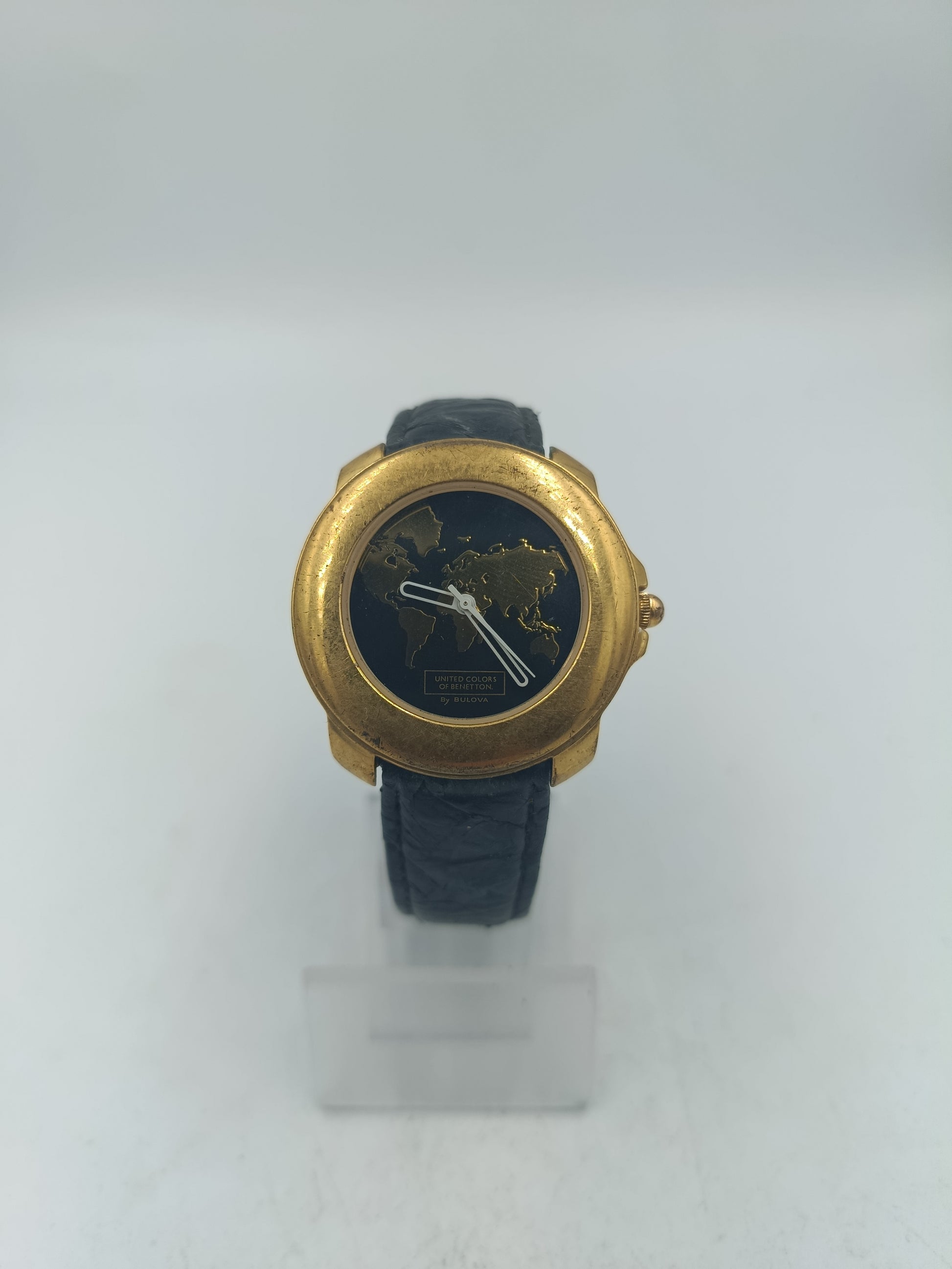 Goldfarbene Benetton Armbanduhr mit Weltkarte Zifferblatt Lederarmband