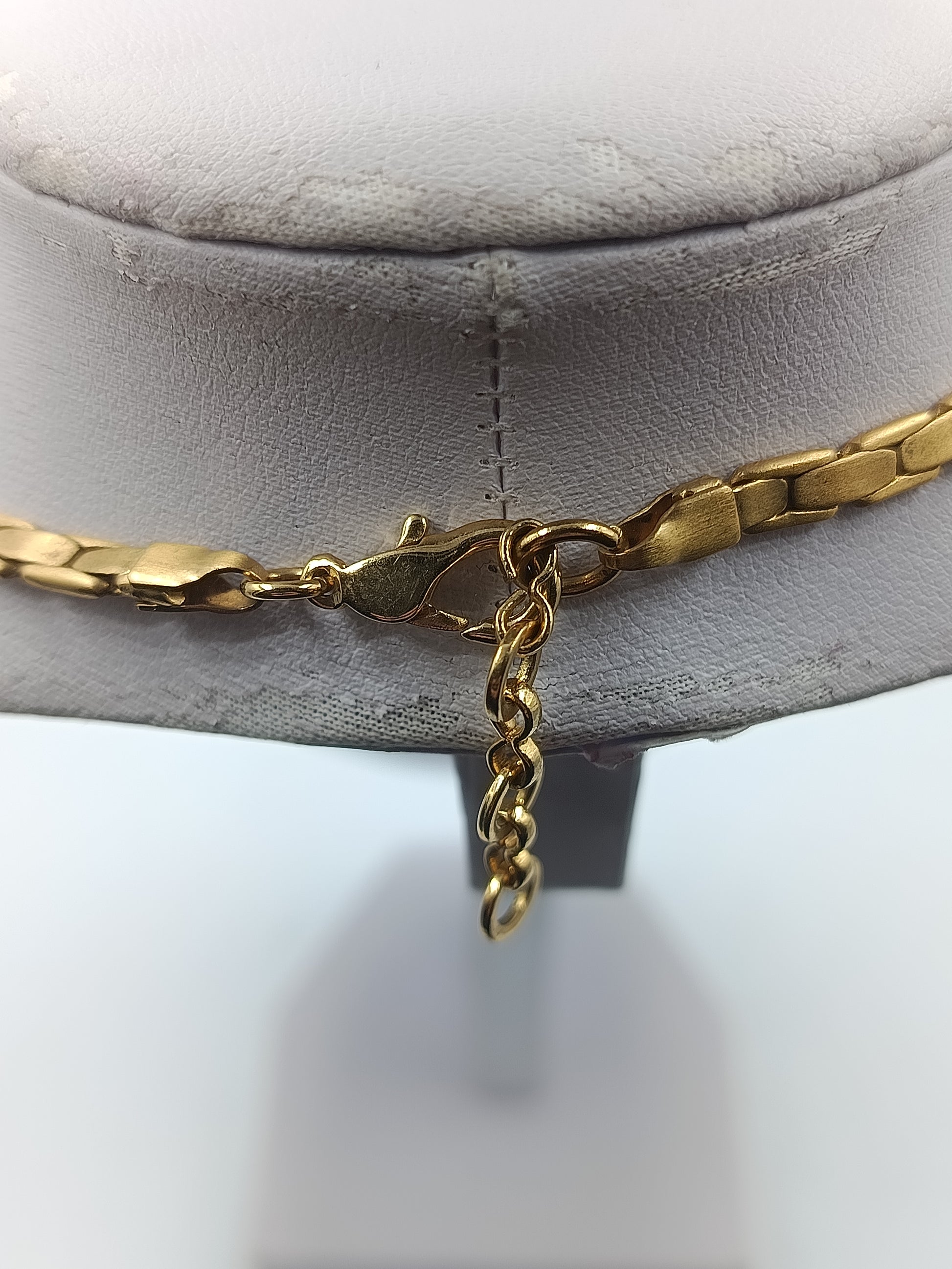 Diese stilvolle Halskette überzeugt durch ihre flache gleichmäßige Gliederstruktur und eine warme goldfarbene Optik. Sie liegt angenehm am Hals an und eignet sich ideal für den täglichen Gebrauch sowie für besondere Anlässe. Das schlichte aber edle Design macht sie zu einem vielseitigen Schmuckstück das sich problemlos mit anderen Ketten oder Anhängern kombinieren lässt und jedem Outfit einen hochwertigen Akzent verleiht