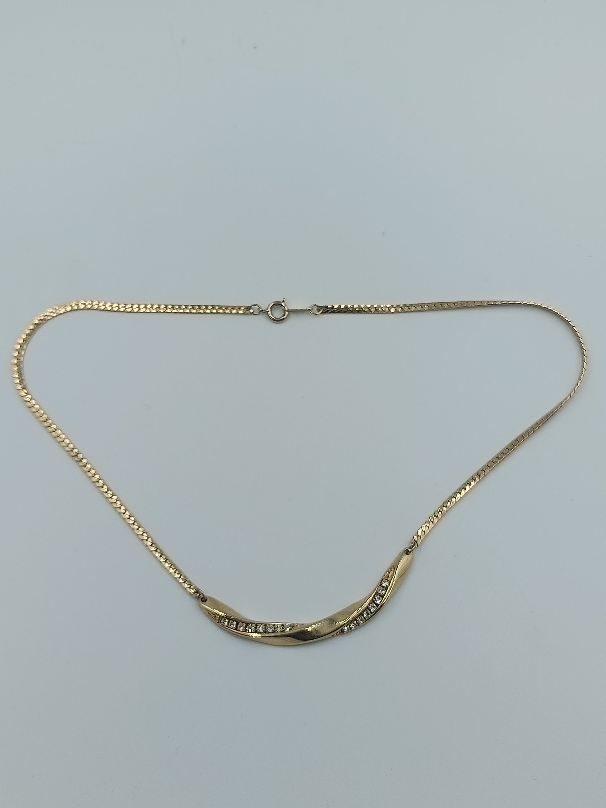 Diese elegante Halskette besticht durch ihr flaches, fein gearbeitetes Schlangenketten-Design und ein geschwungenes Mittelstück, das mit funkelnden Strasssteinen besetzt ist. Sie verleiht jedem Outfit eine edle, feminine Note – perfekt für Abendveranstaltungen oder als dezenter Blickfang im Alltag.