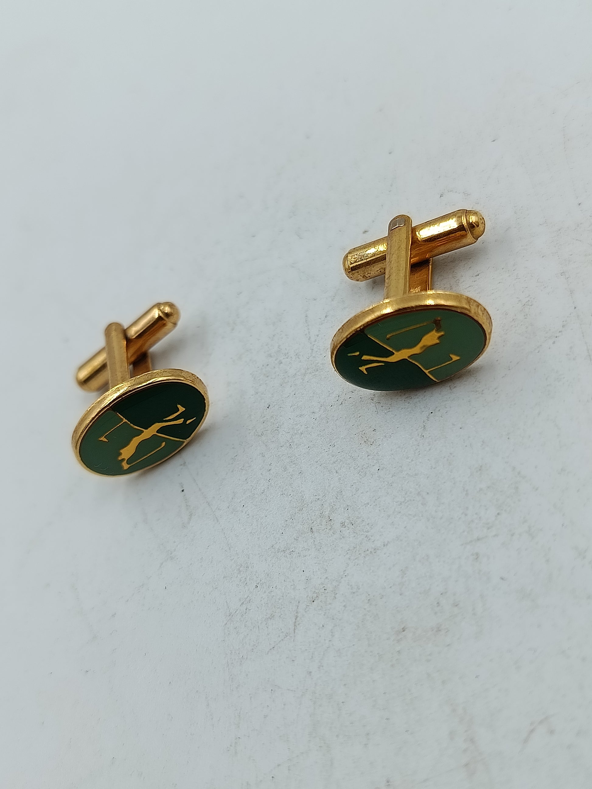 Goldfarbene Manschettenknöpfe mit grünem Emaille Motiv klassisches Design
