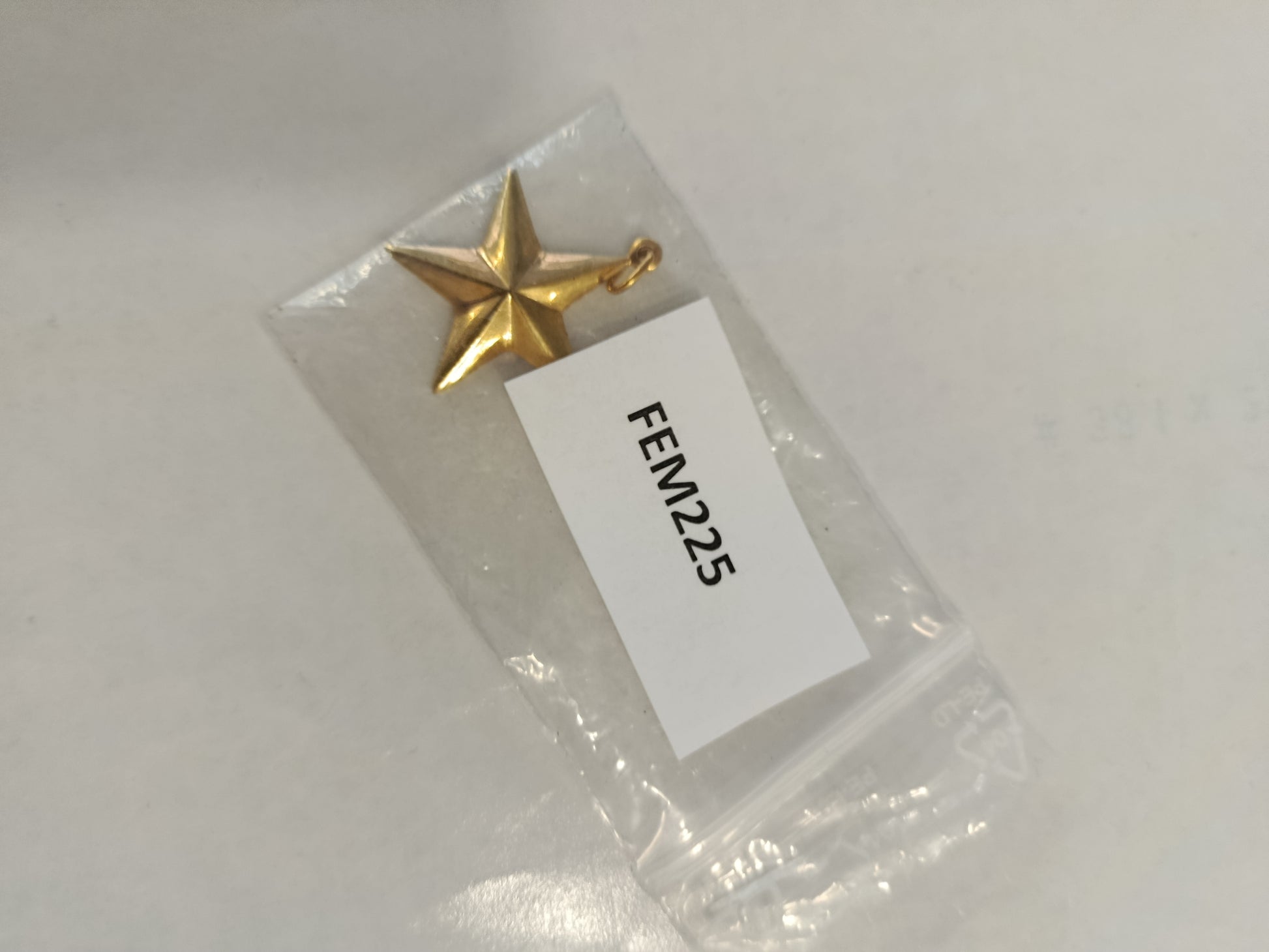Minimalistischer, goldfarbener Anhänger in Form eines fünfzackigen Sterns. Die plastische Gestaltung sorgt für schöne Lichtreflexe und macht den Anhänger zu einem schlichten, aber auffälligen Schmuckstück – ideal als Charm oder an einer feinen Kette.