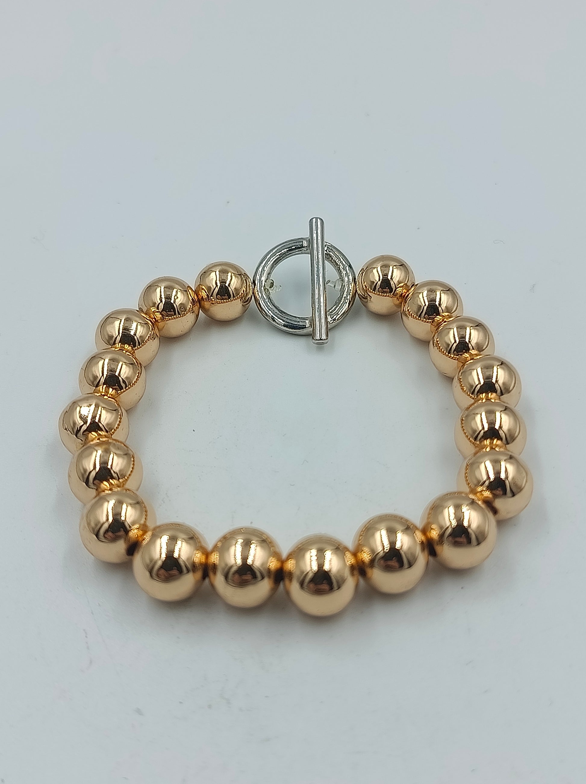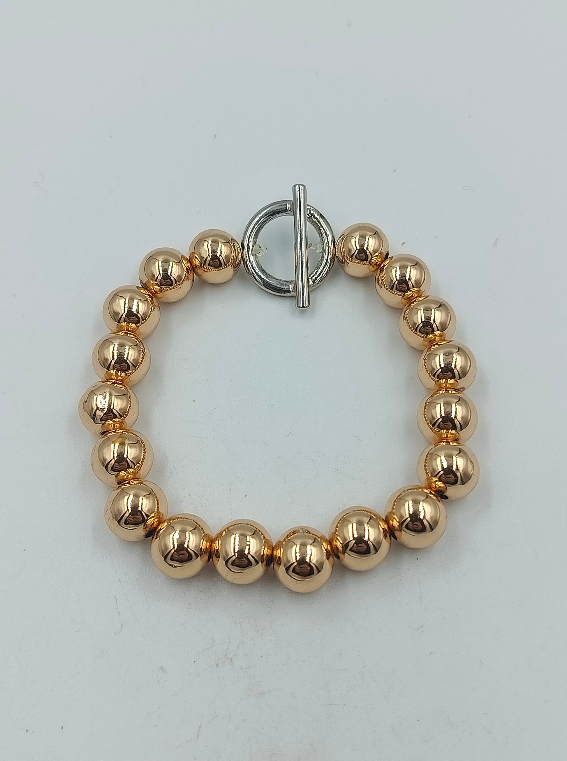 Goldfarbenes Kugelarmband mit silbernem Knebelverschluss