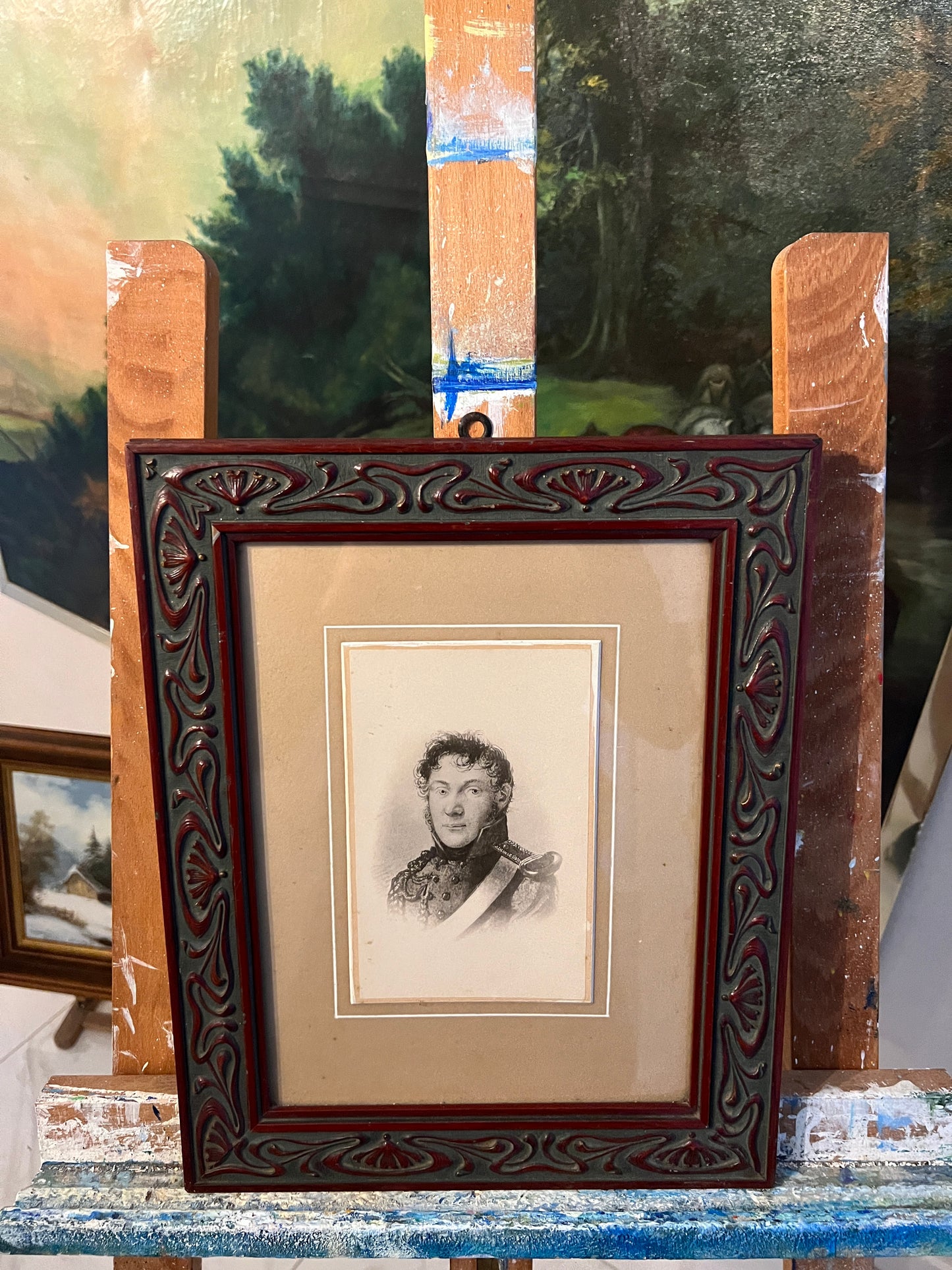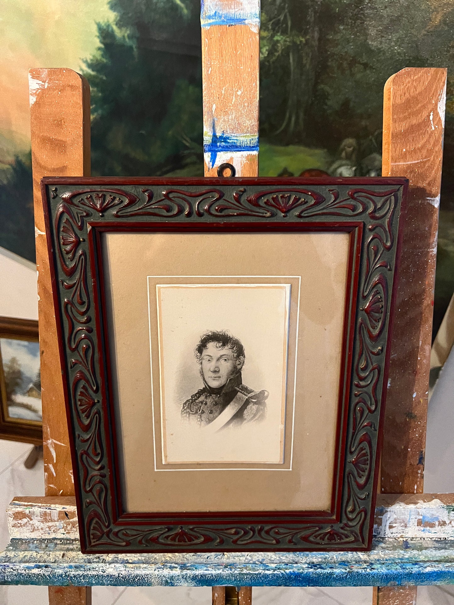 Beschreibung: Dieses antike Portrait, gefasst in einem wunderschönen Jugendstil Rahmen, stammt aus dem 19. Jahrhundert und bildet den Mann Gottlob Thümmel ab. Auf der Rückseite befindet sich ein Lebenslauf der Person. Mit Rahmen misst das Werk 40x30cm und ohne Rahmen 20x14cm. Der Zustand ist sehr gut, wie auf den beigefügten Fotos zu sehen ist.