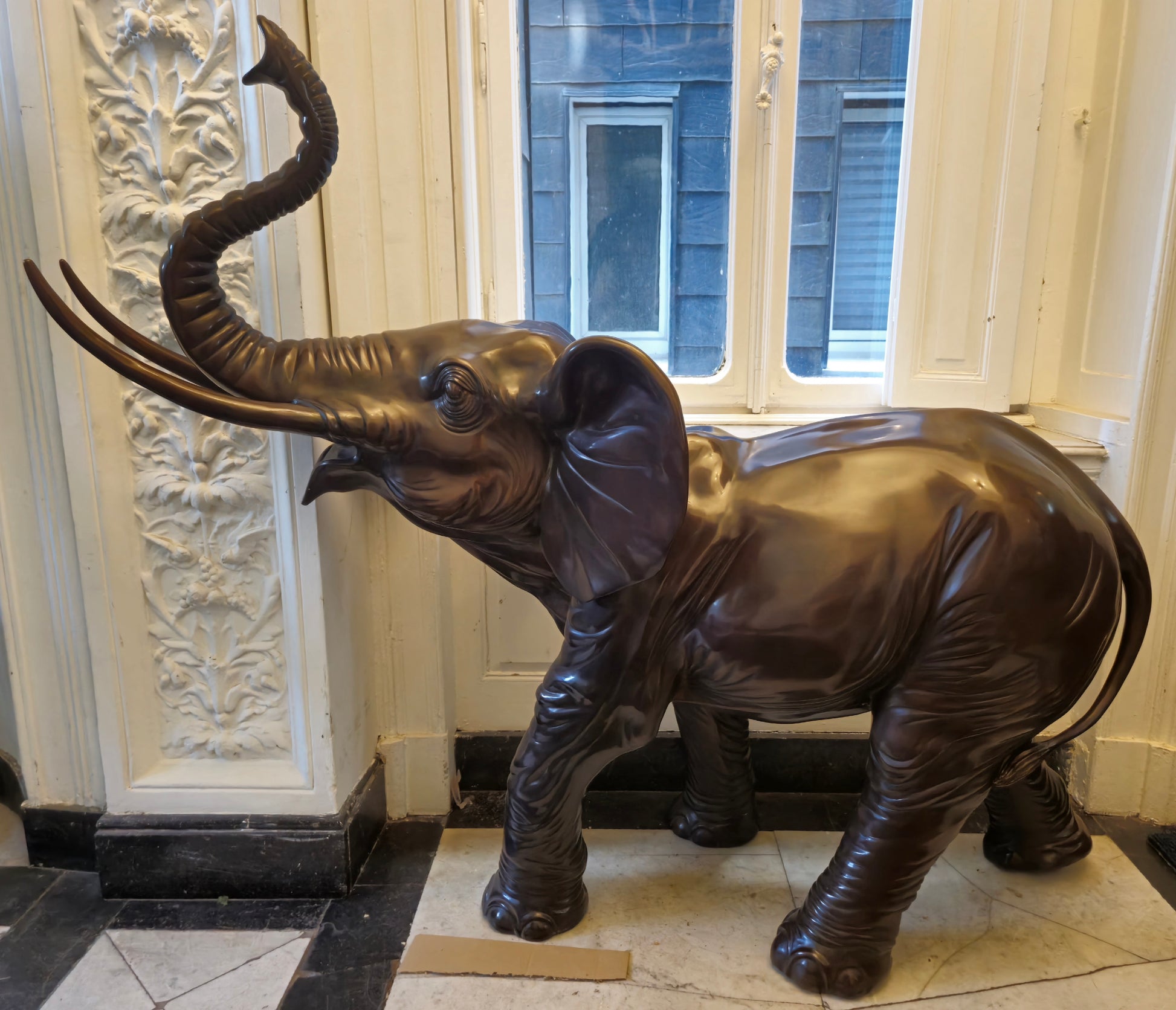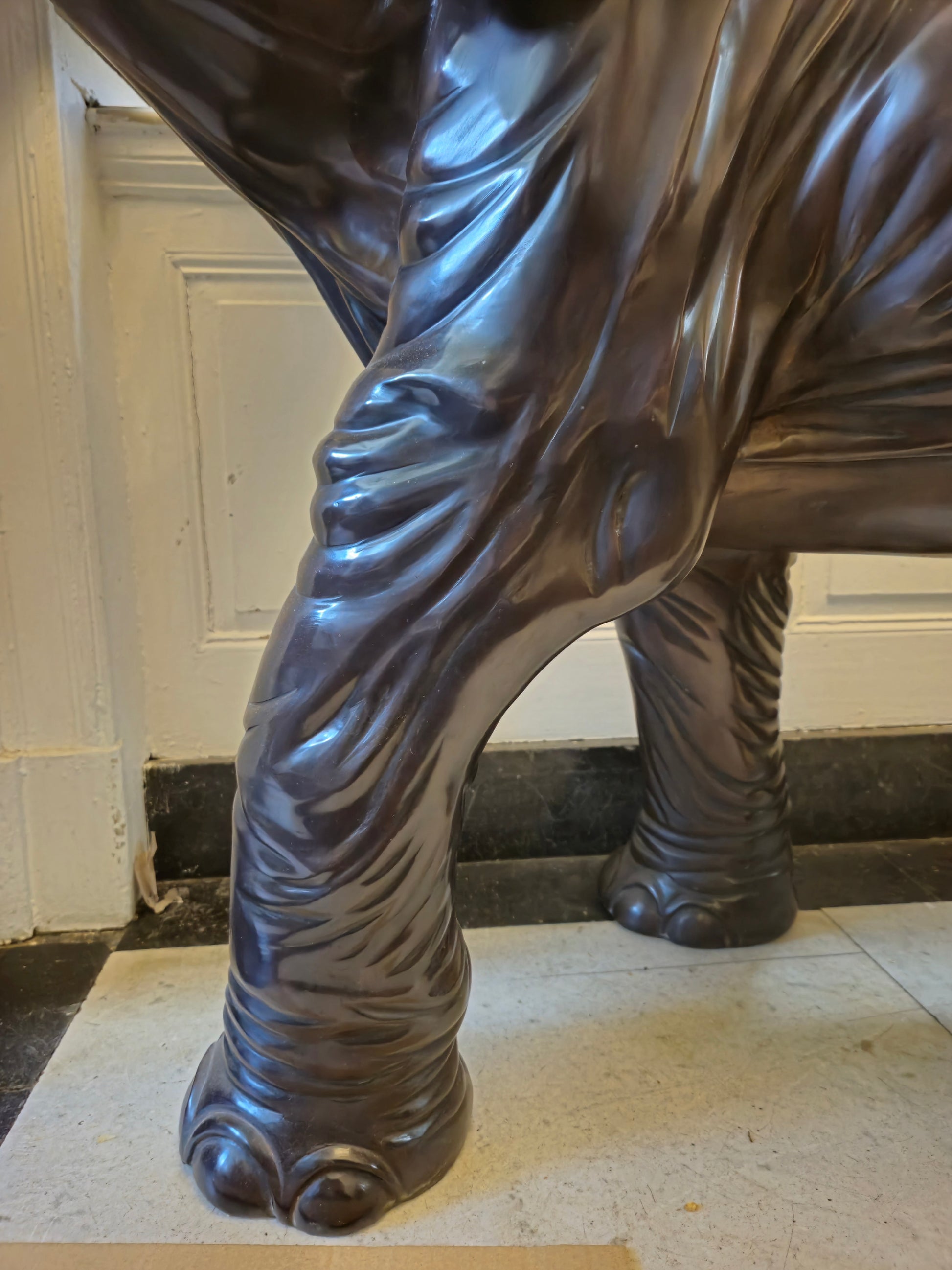 Große Schwere Fein gearbeitete Bronze Skulptur Elefant mit Stoßzähnen ca. 120kg